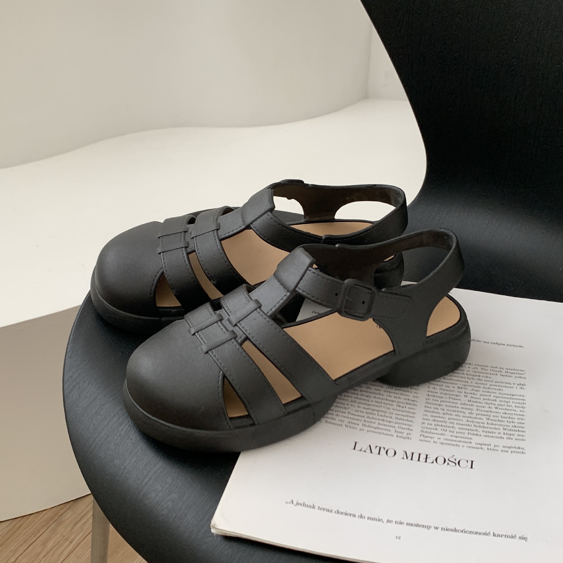 여성용 여름 로마 샌들 새로운 유행 두꺼운 밑창 중공 플랫 여성용 신발 캐주얼 아웃웨어 샌들