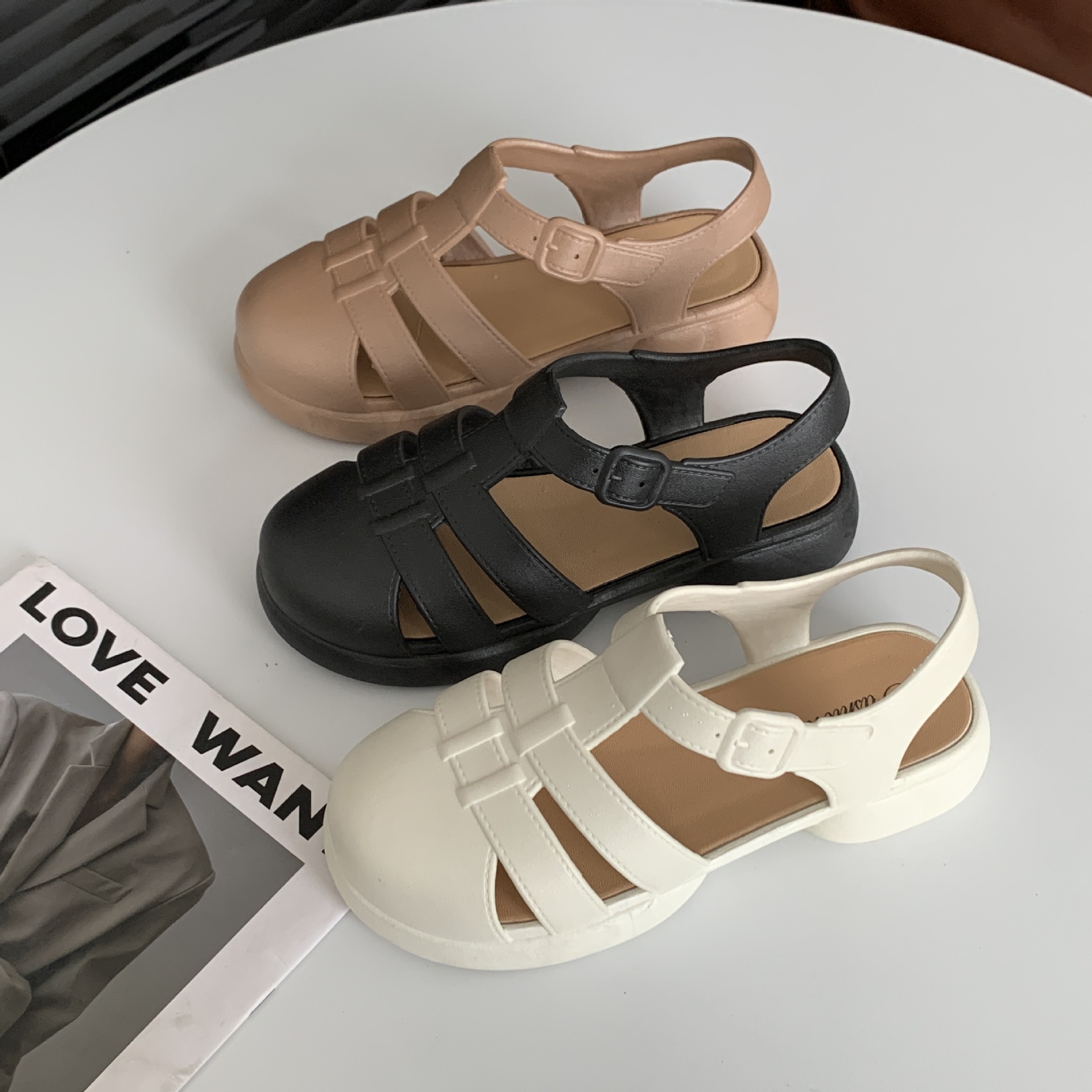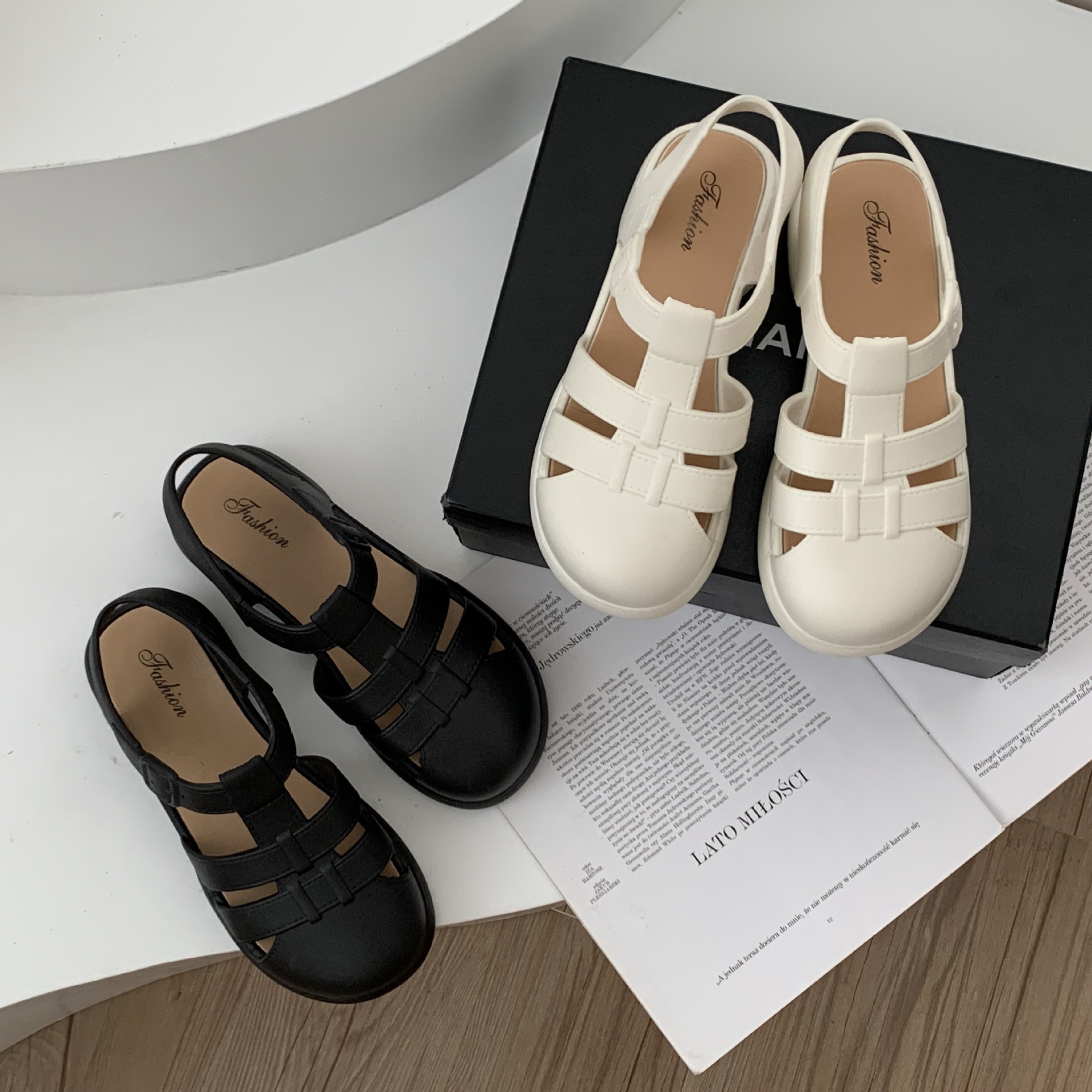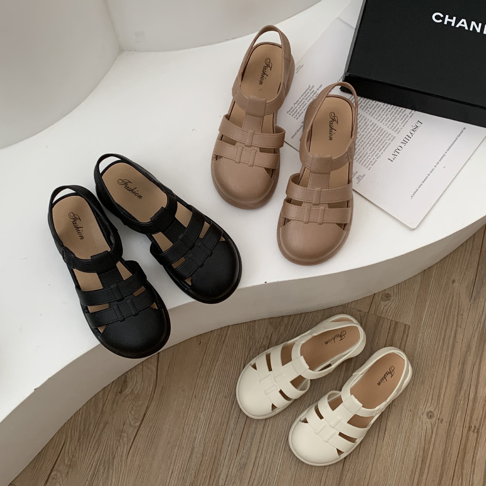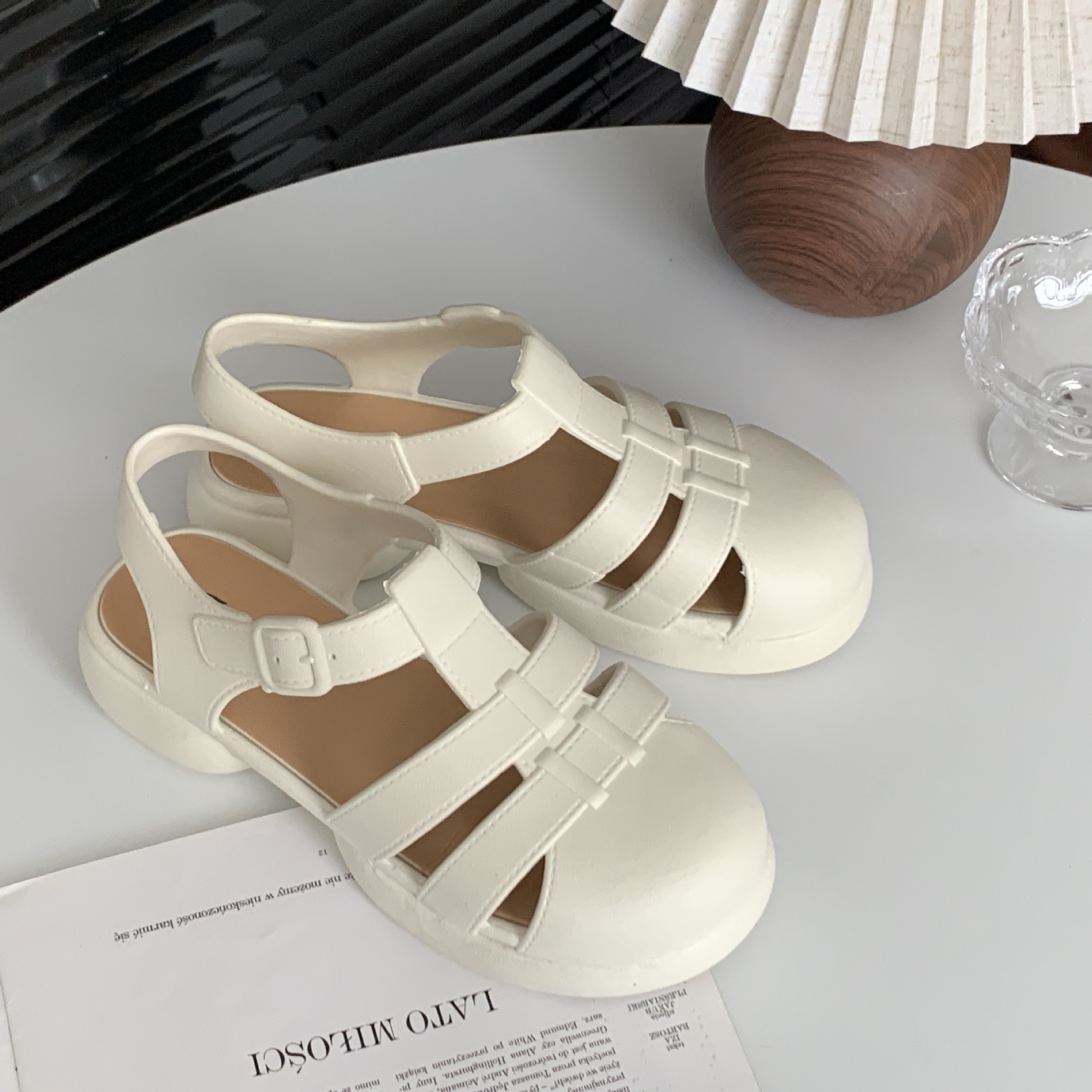 여성용 여름 로마 샌들 새로운 유행 두꺼운 밑창 중공 플랫 여성용 신발 캐주얼 아웃웨어 샌들스토어 가기