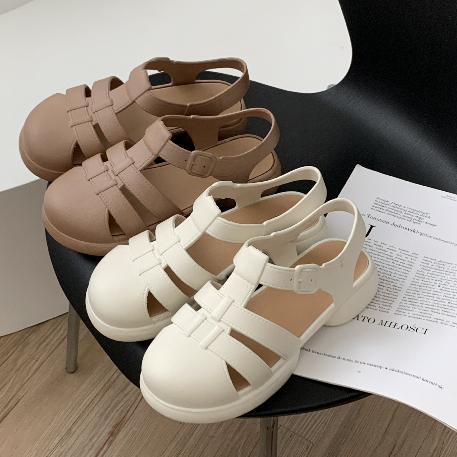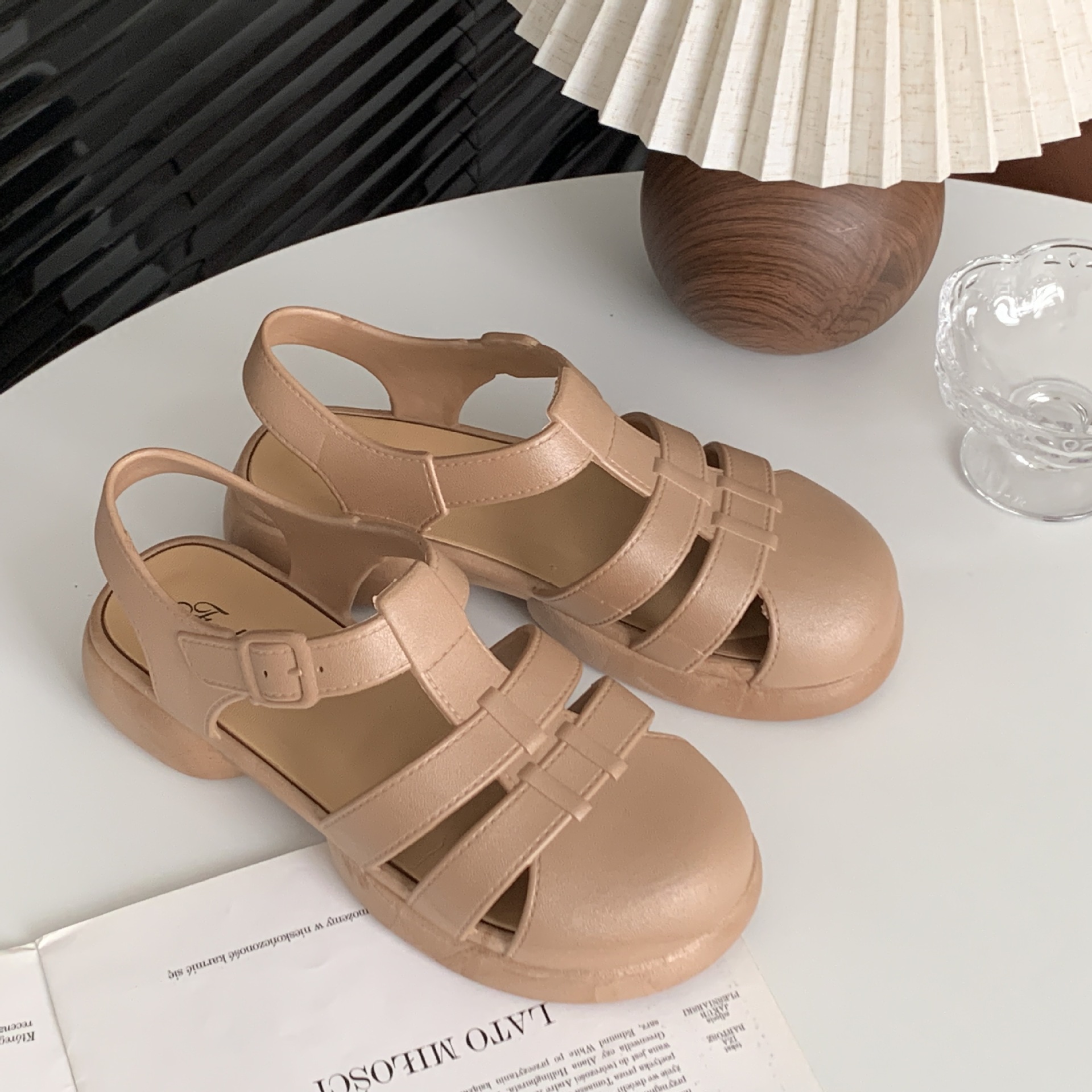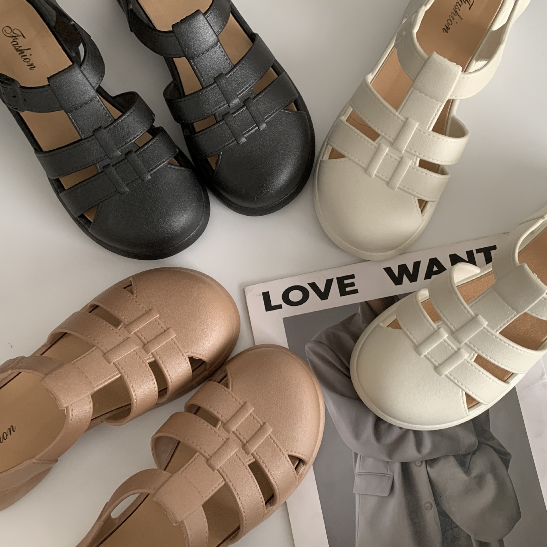 여성용 여름 로마 샌들 새로운 유행 두꺼운 밑창 중공 플랫 여성용 신발 캐주얼 아웃웨어 샌들스토어 가기
