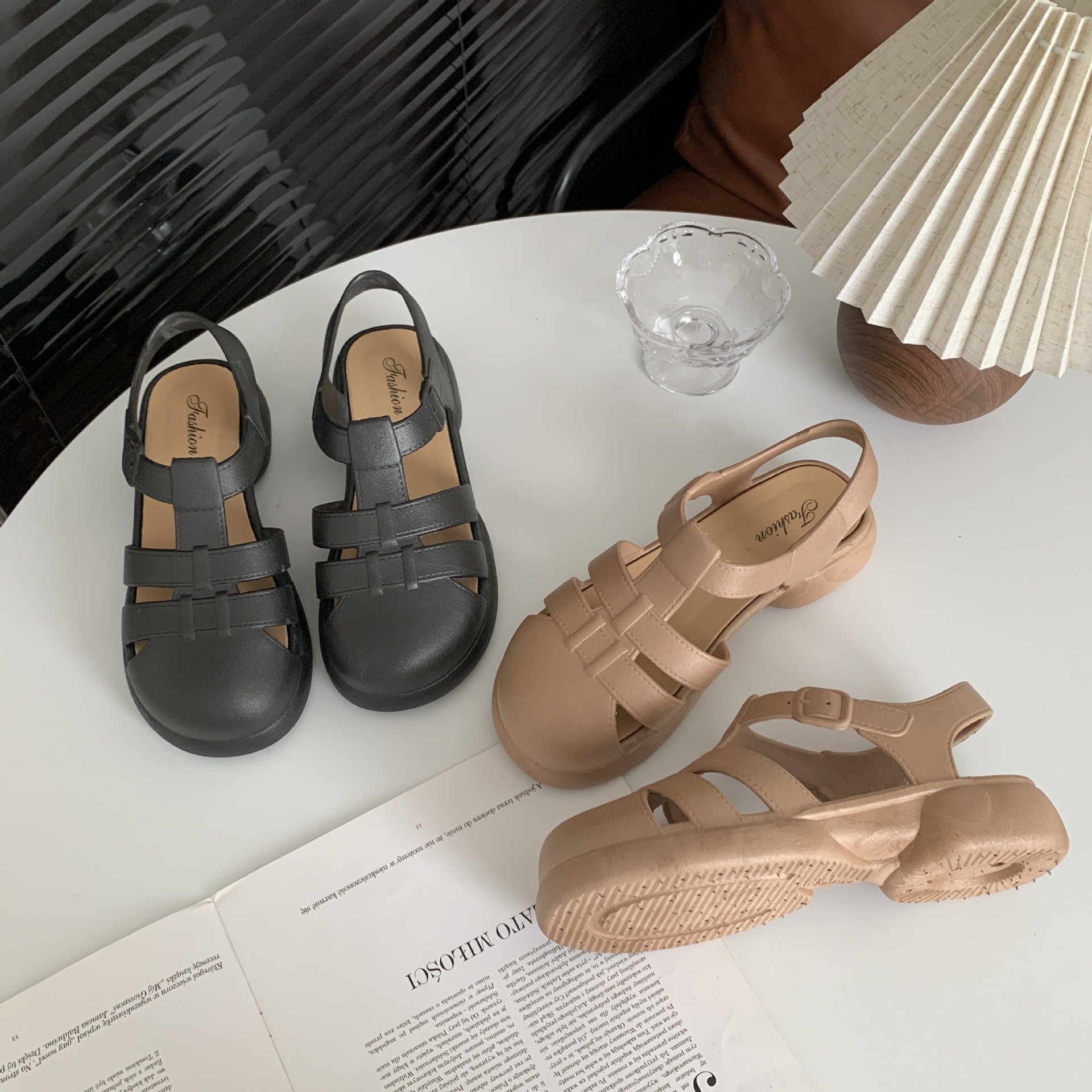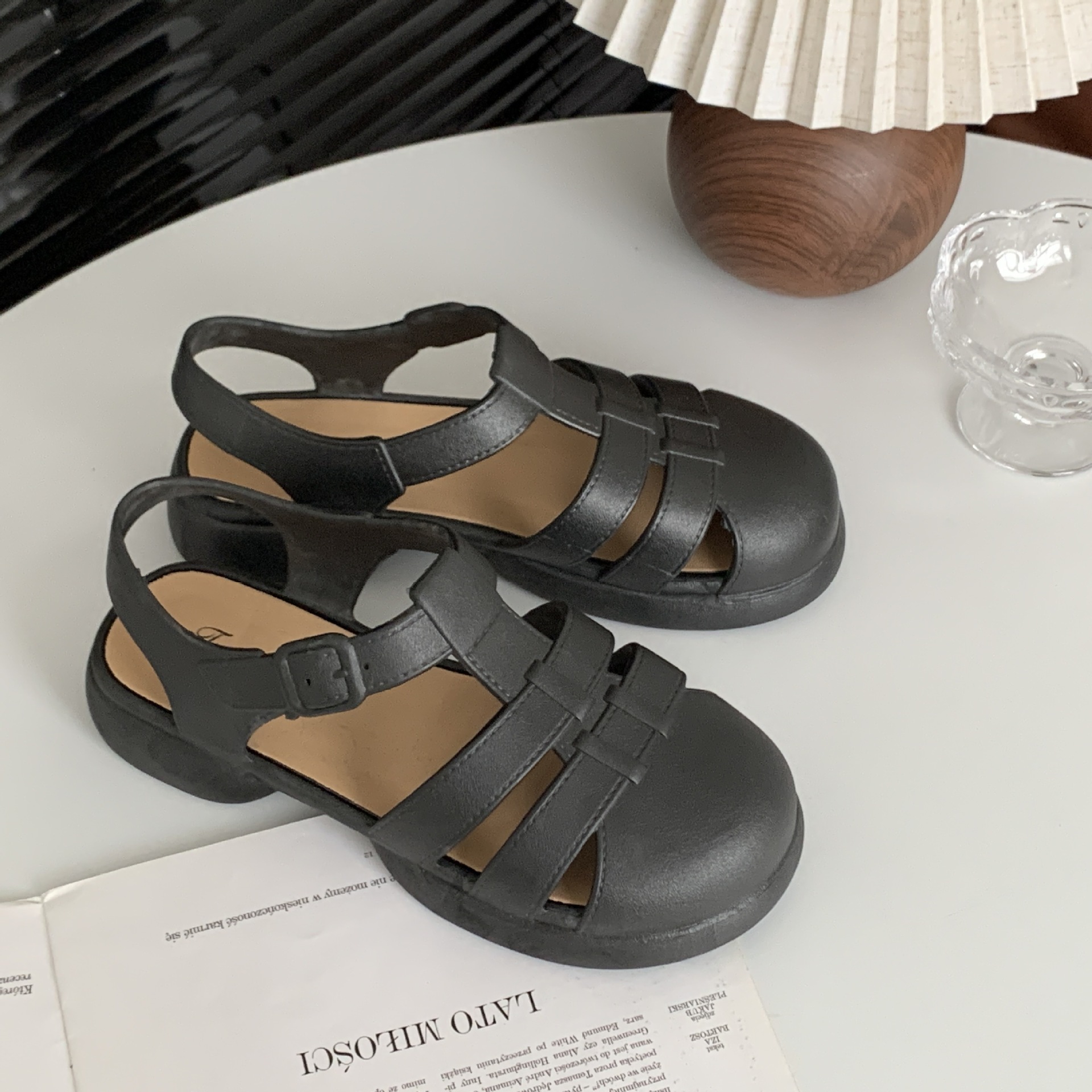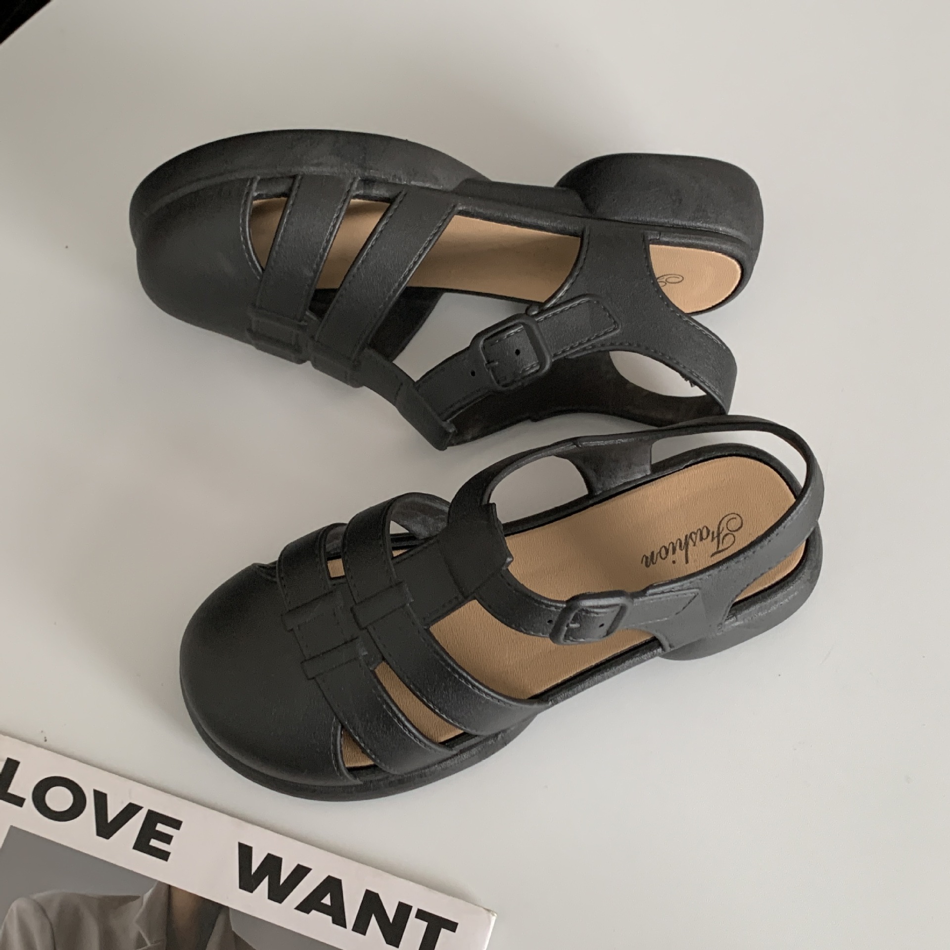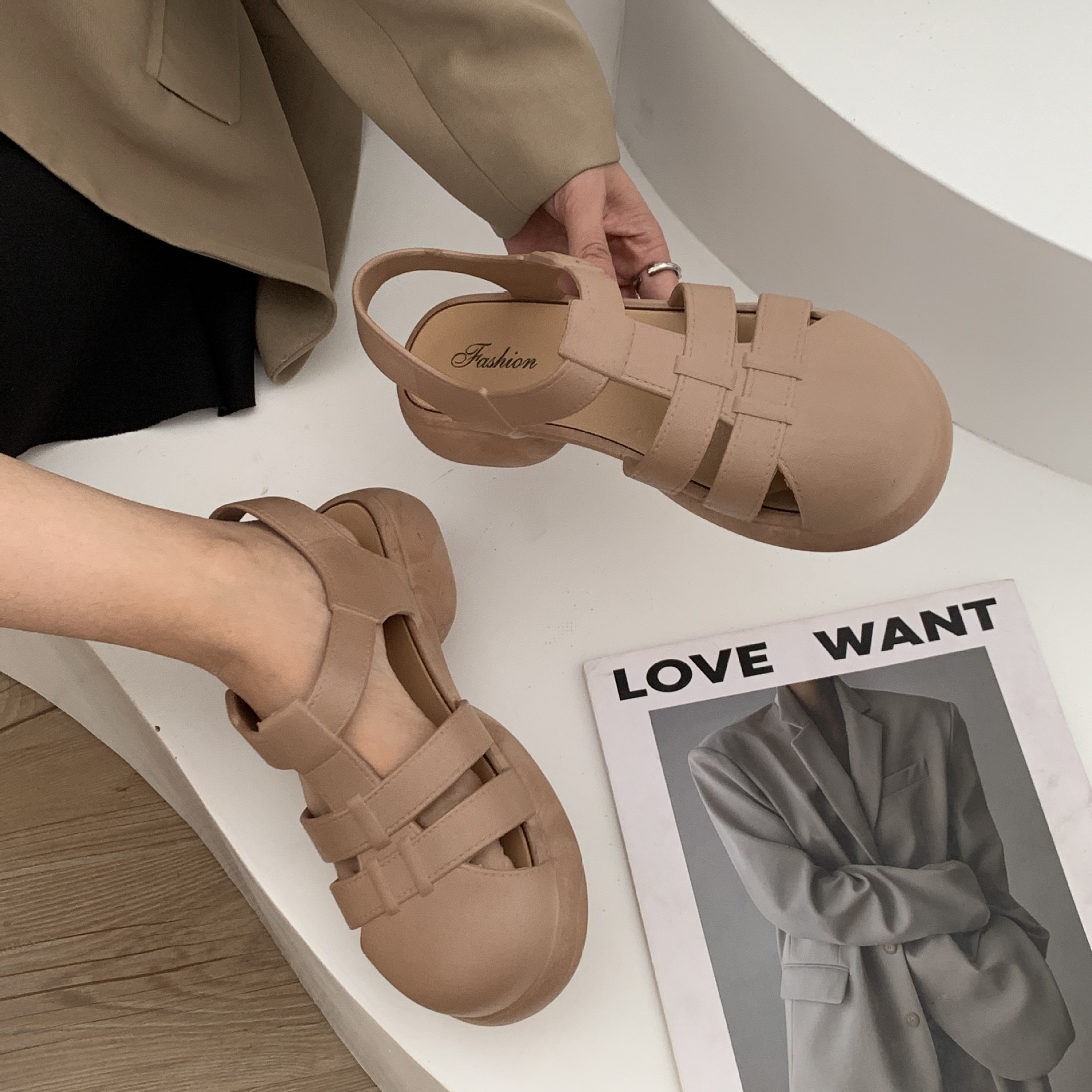 여성용 여름 로마 샌들 새로운 유행 두꺼운 밑창 중공 플랫 여성용 신발 캐주얼 아웃웨어 샌들스토어 가기