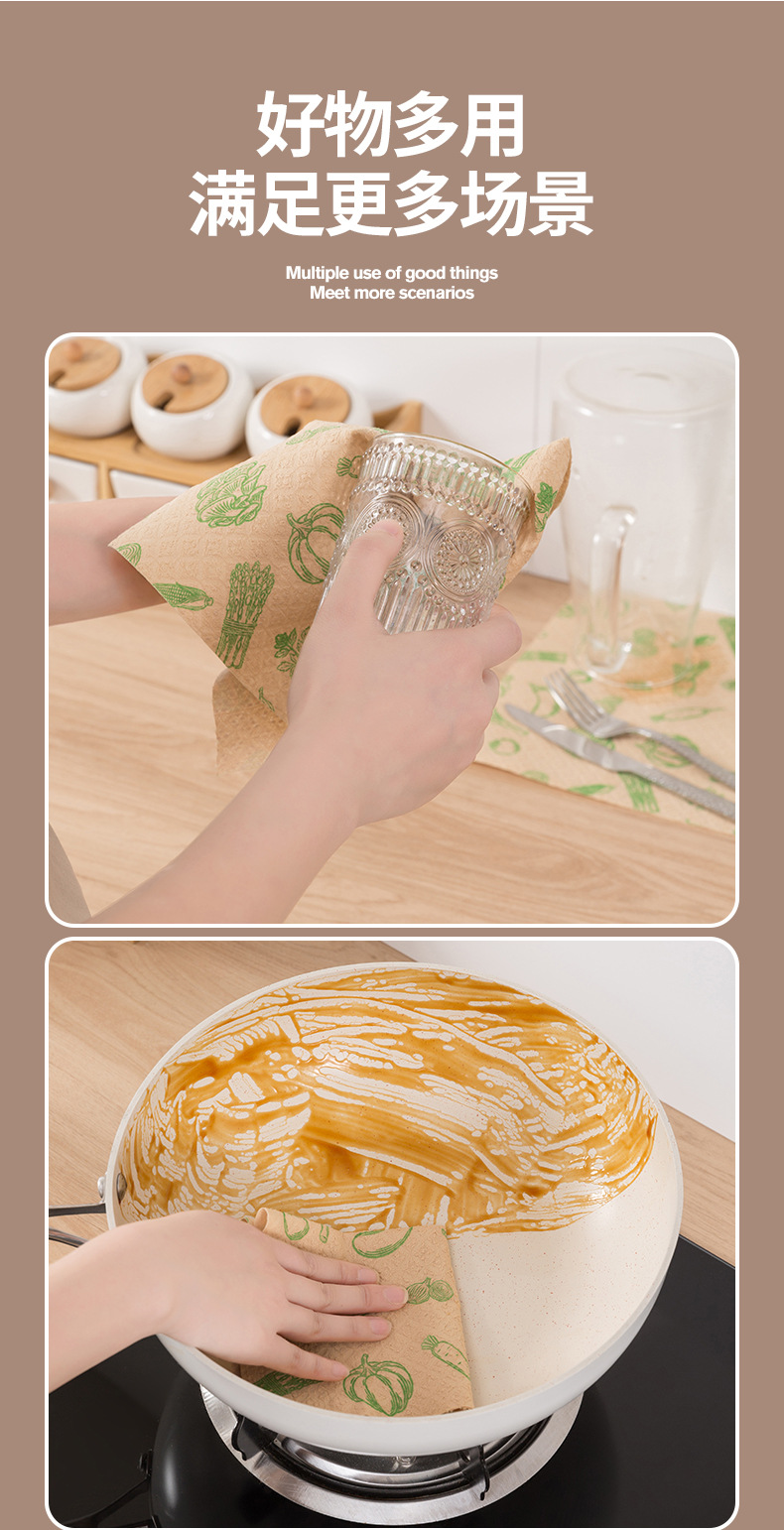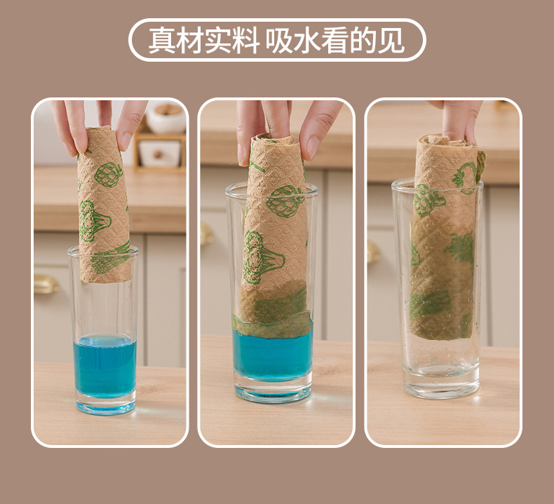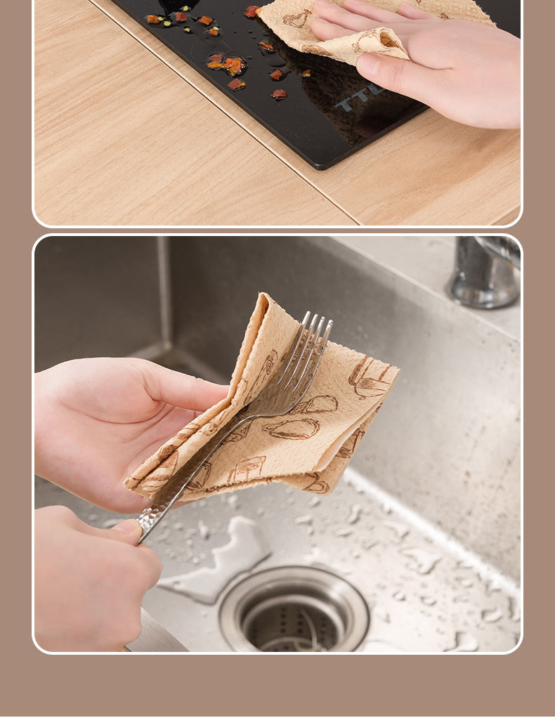 주방용 일회용 원색 목재 펄프 걸레, 보풀이 없고 기름을 흡수하지 않으며 세척이 용이하며 건식 및 습식 모두 사용 가능, 자연색 게으름뱅이 걸레