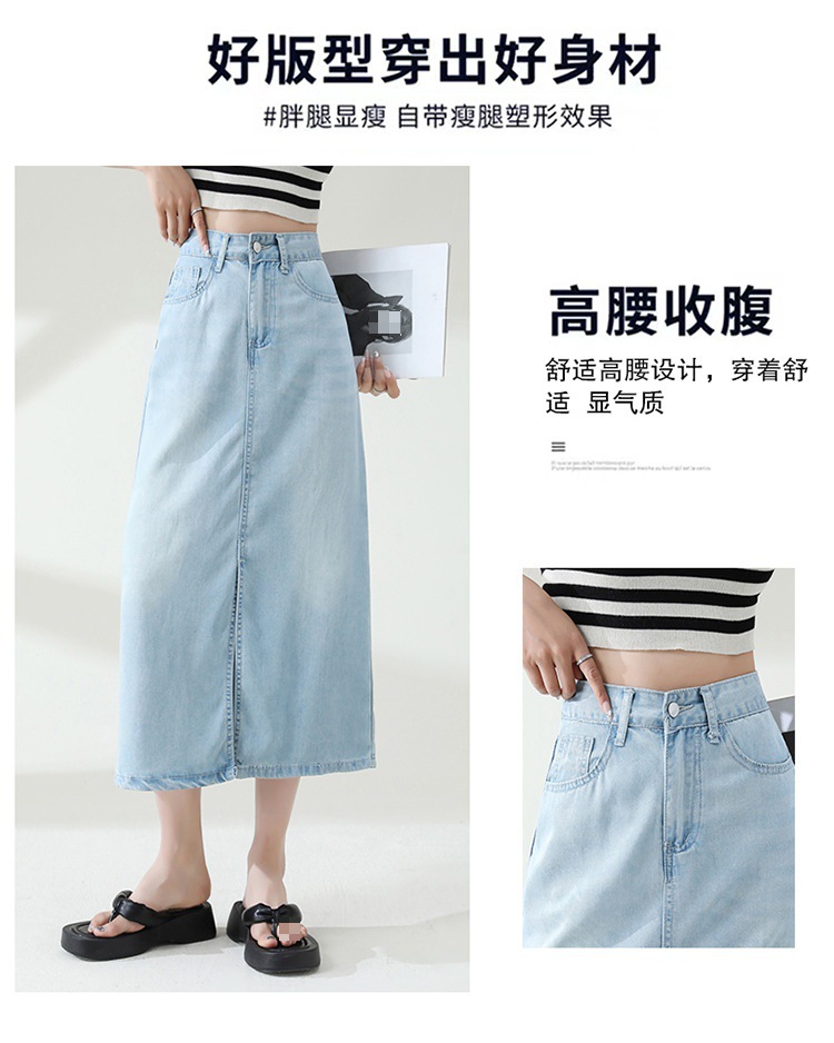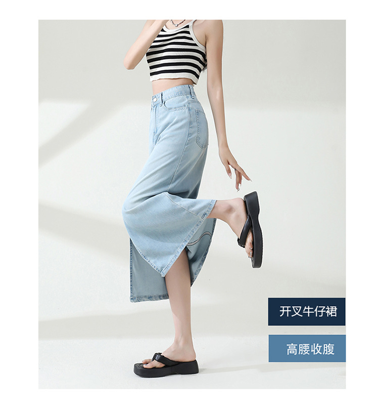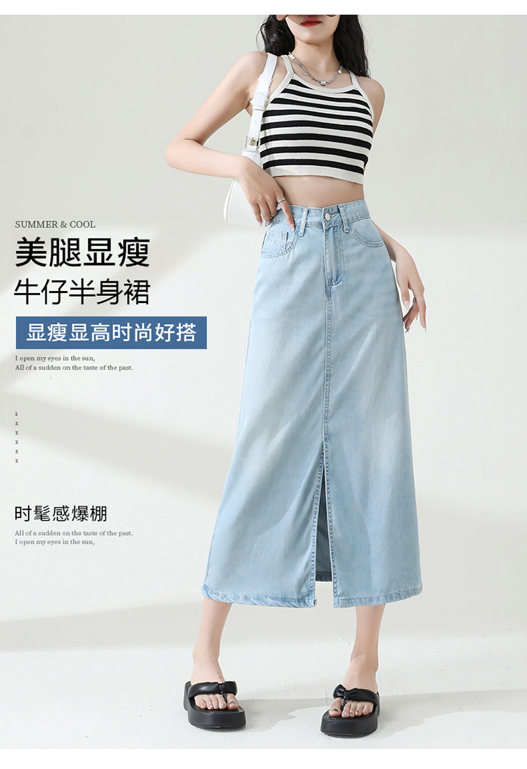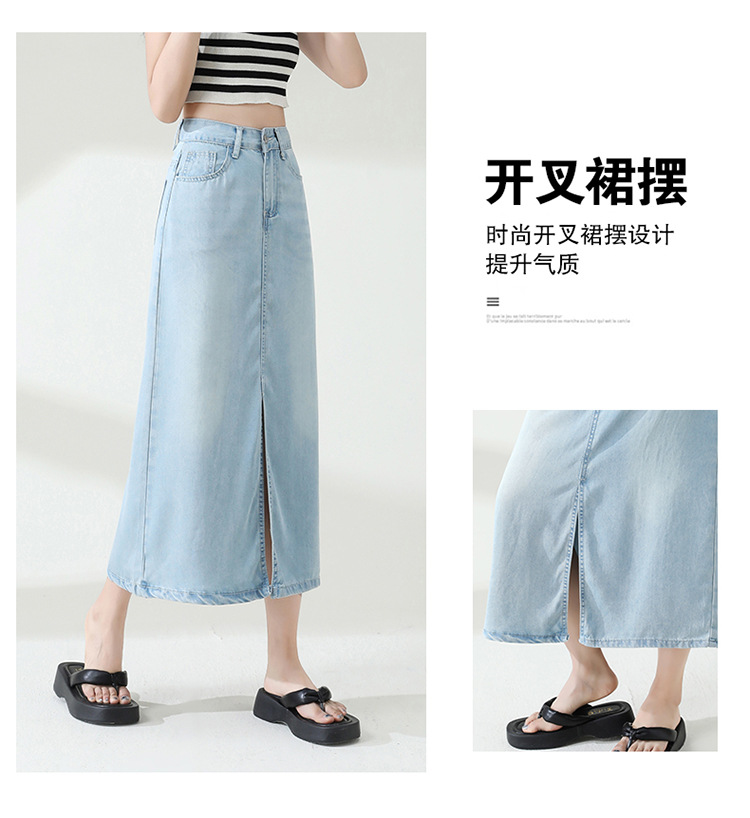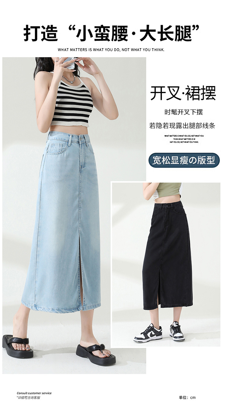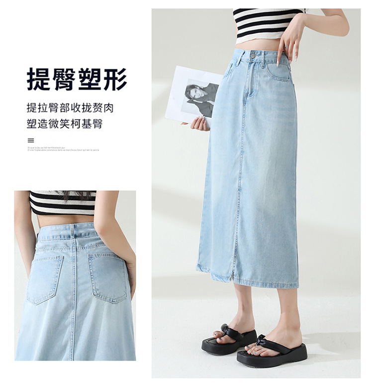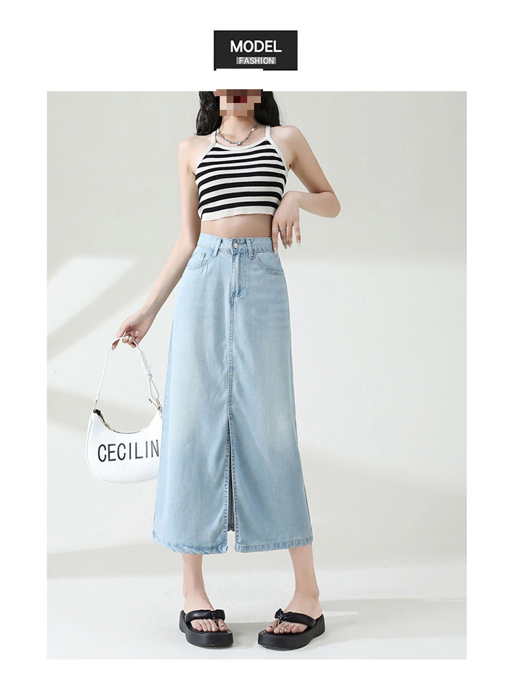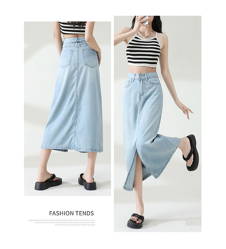 Lyocell Tencel 스플릿 데님 스커트 여자 여름 2024 새로운 높은 허리 슬리밍 아이스 실크 A-라인 힙합 스커트스토어 가기