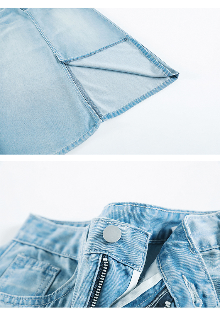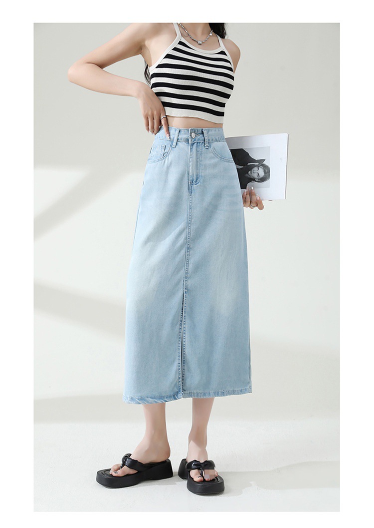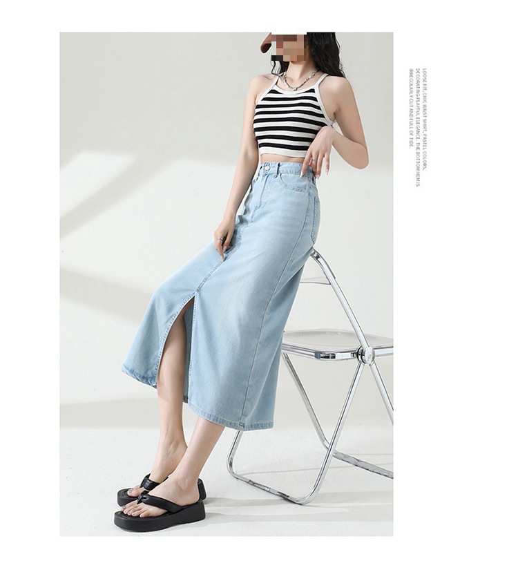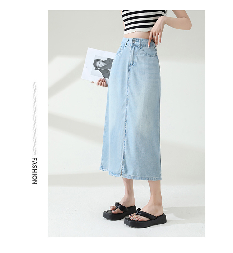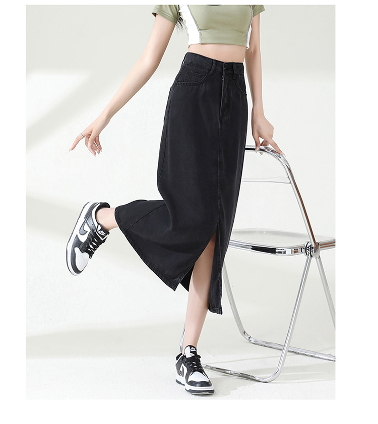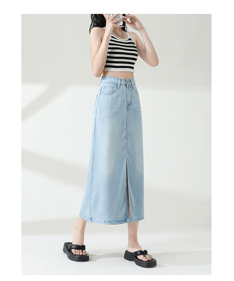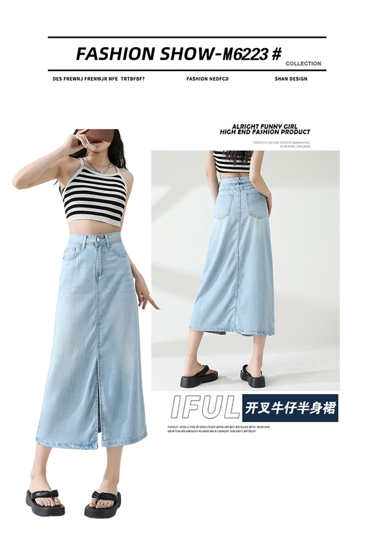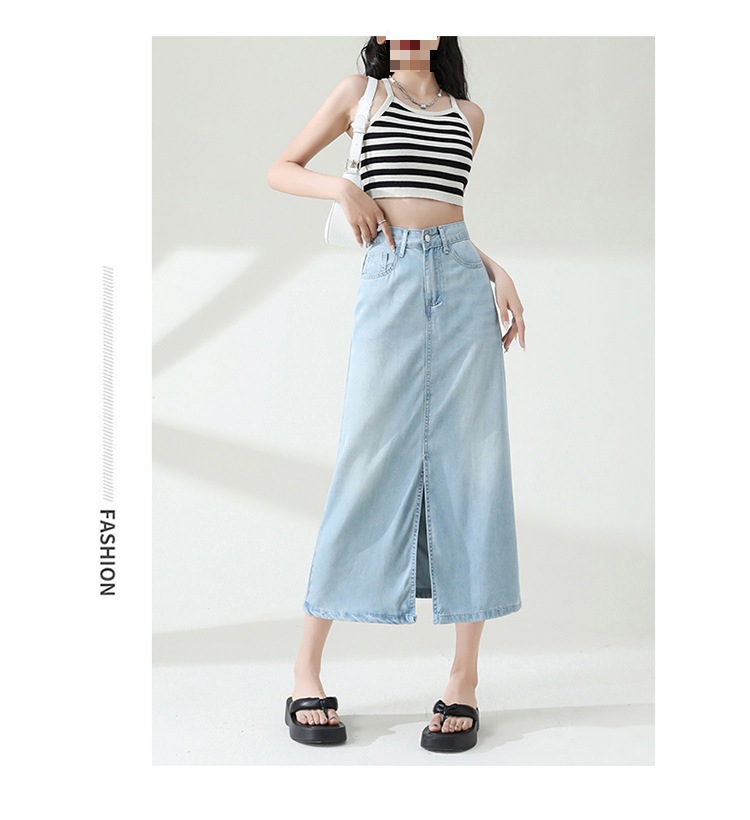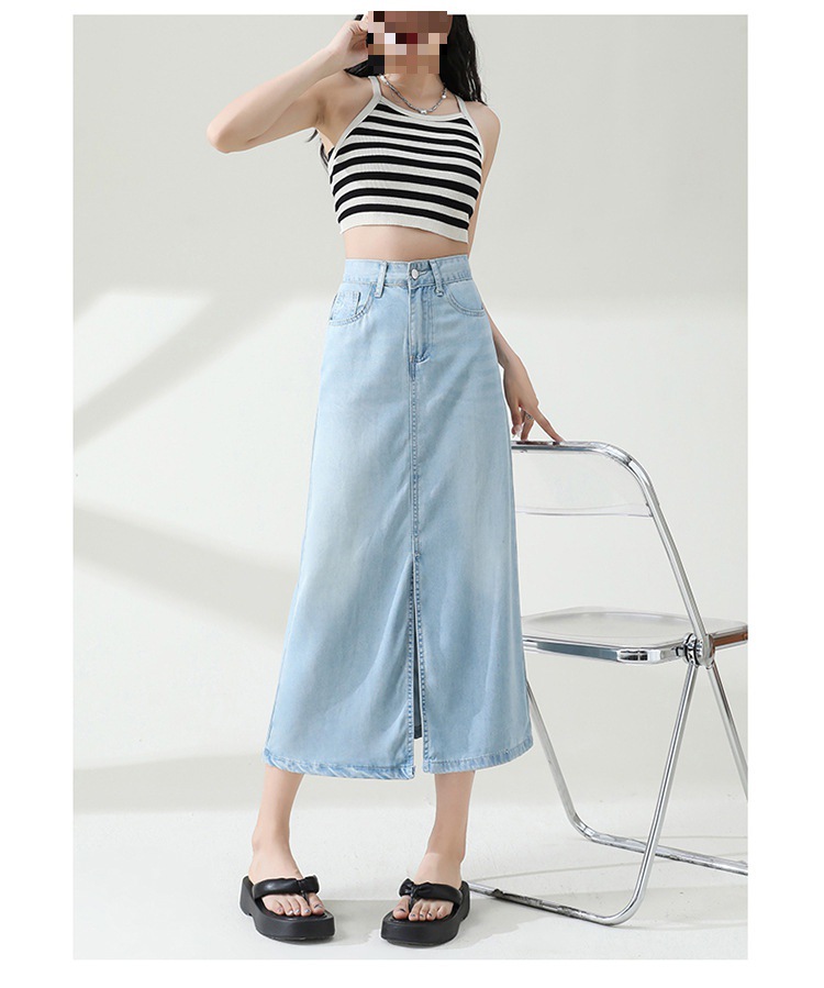 Lyocell Tencel 스플릿 데님 스커트 여자 여름 2024 새로운 높은 허리 슬리밍 아이스 실크 A-라인 힙합 스커트스토어 가기