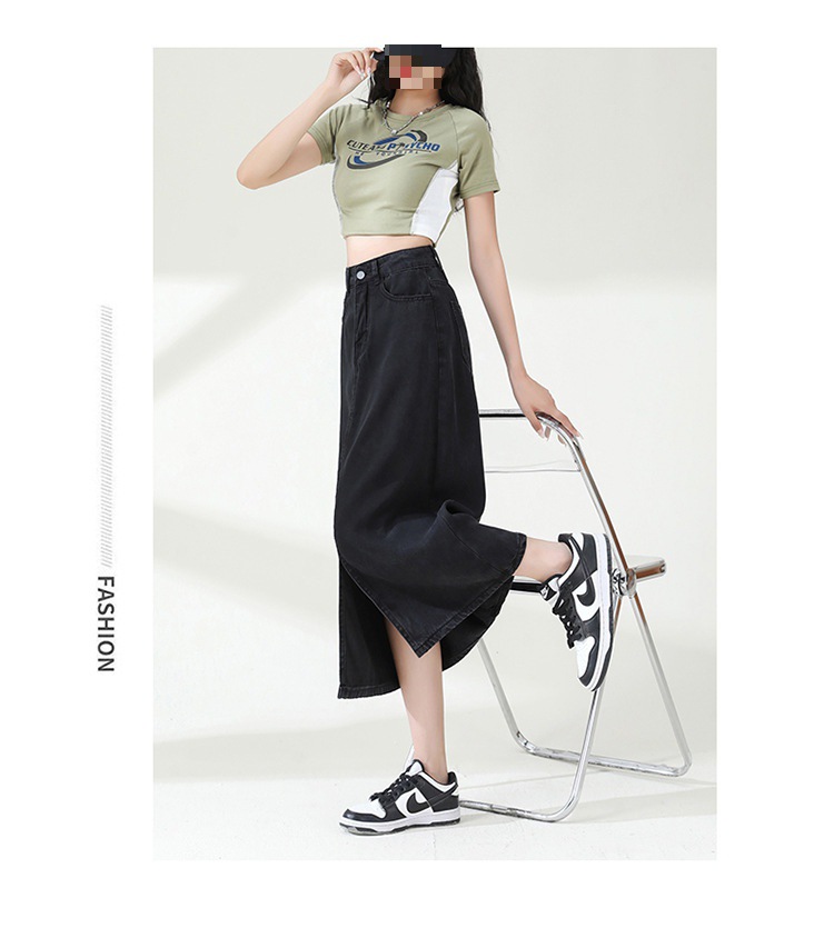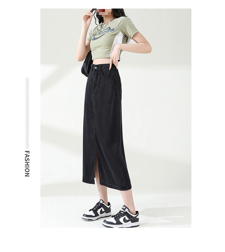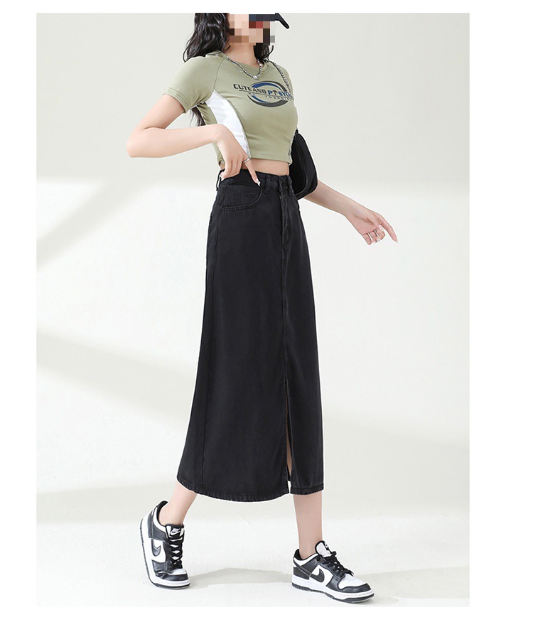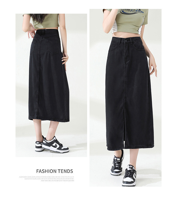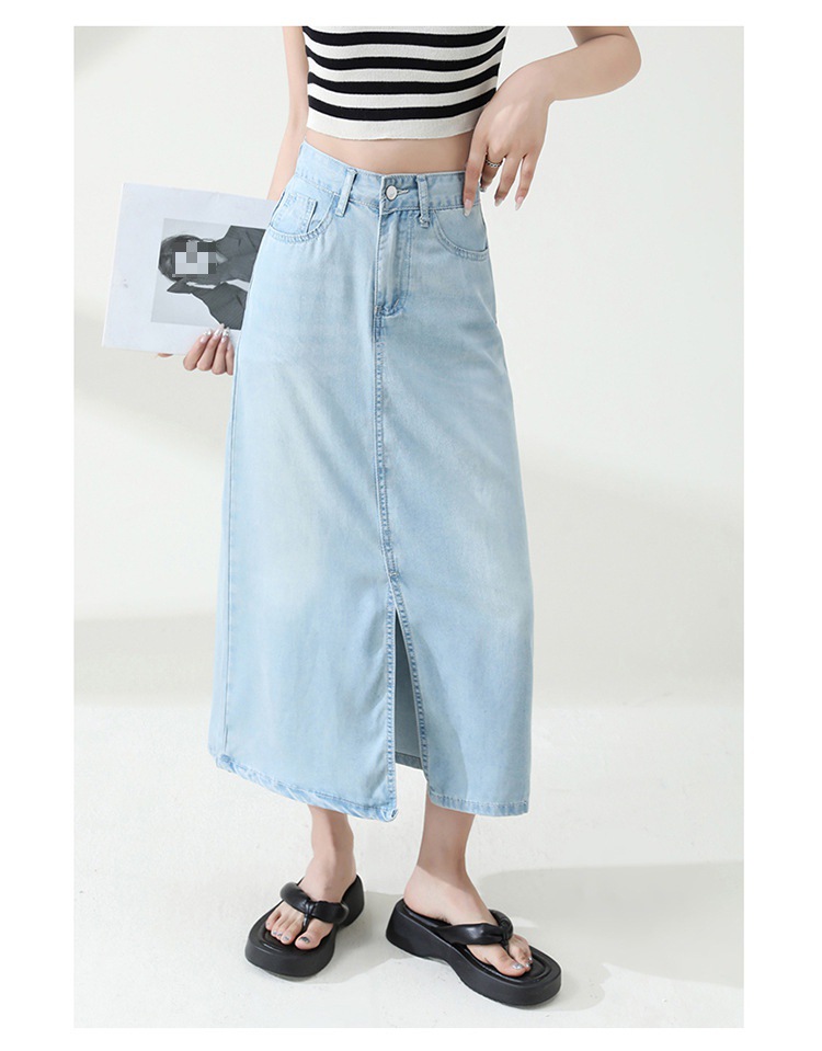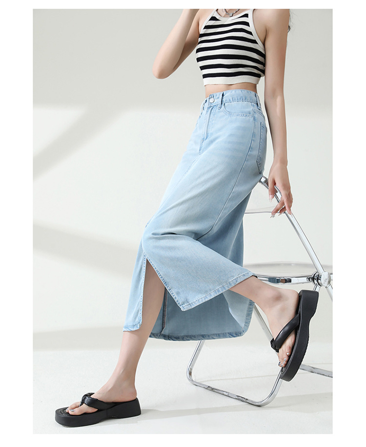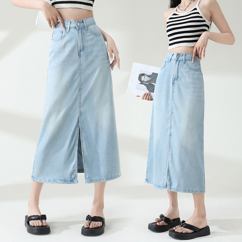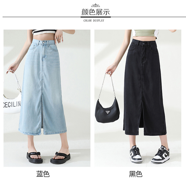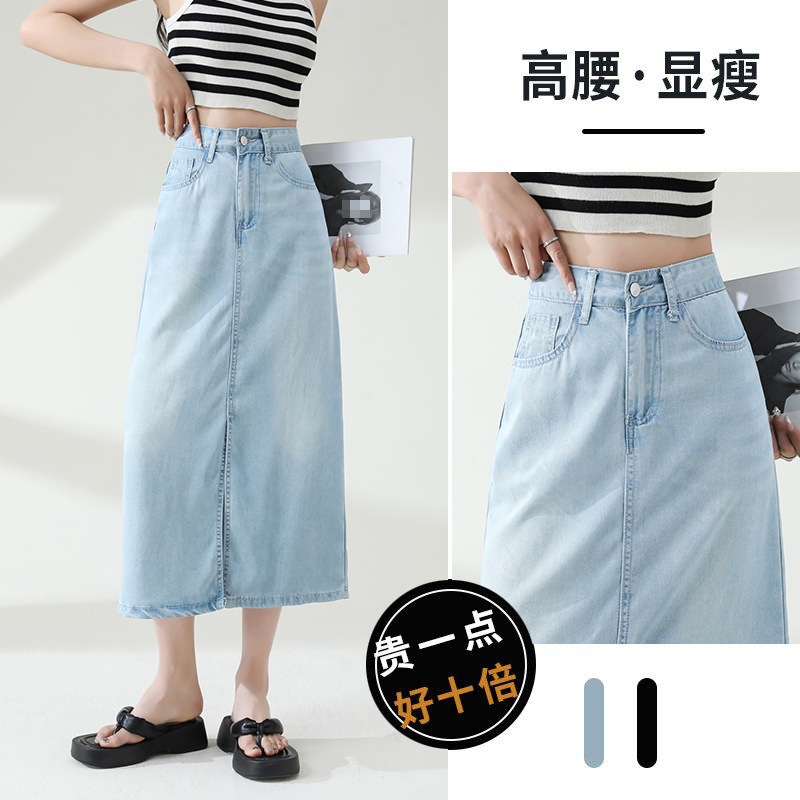 Lyocell Tencel 스플릿 데님 스커트 여자 여름 2024 새로운 높은 허리 슬리밍 아이스 실크 A-라인 힙합 스커트