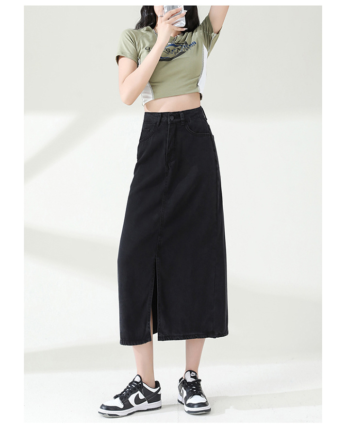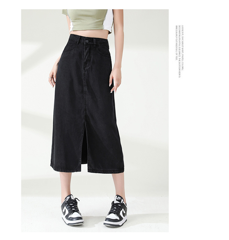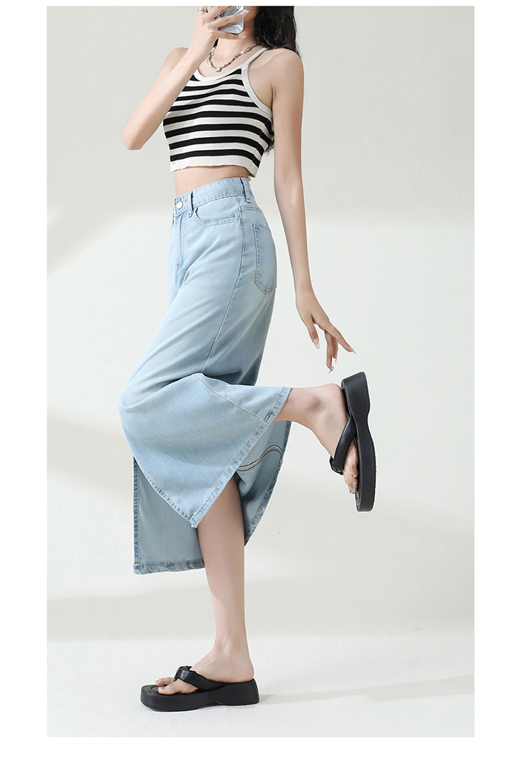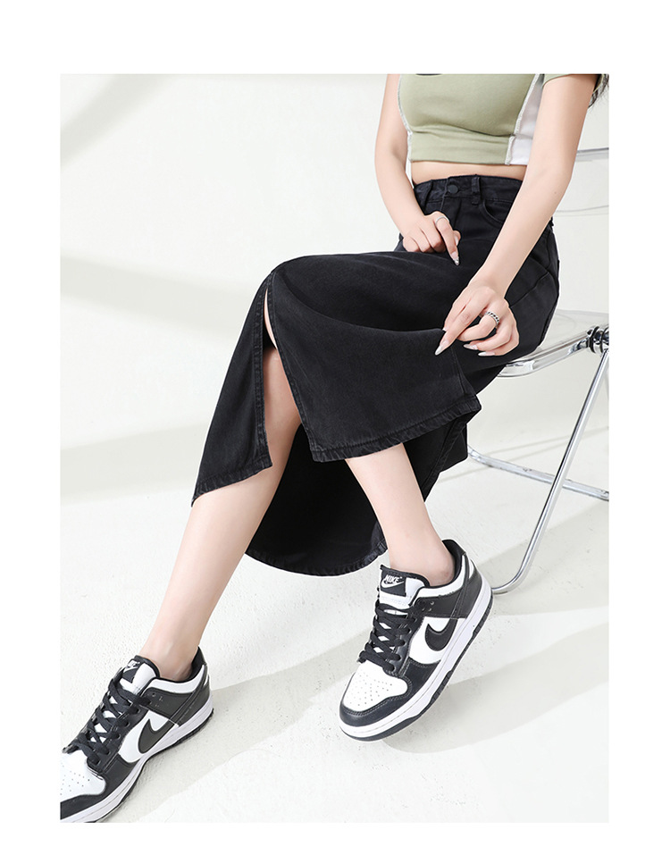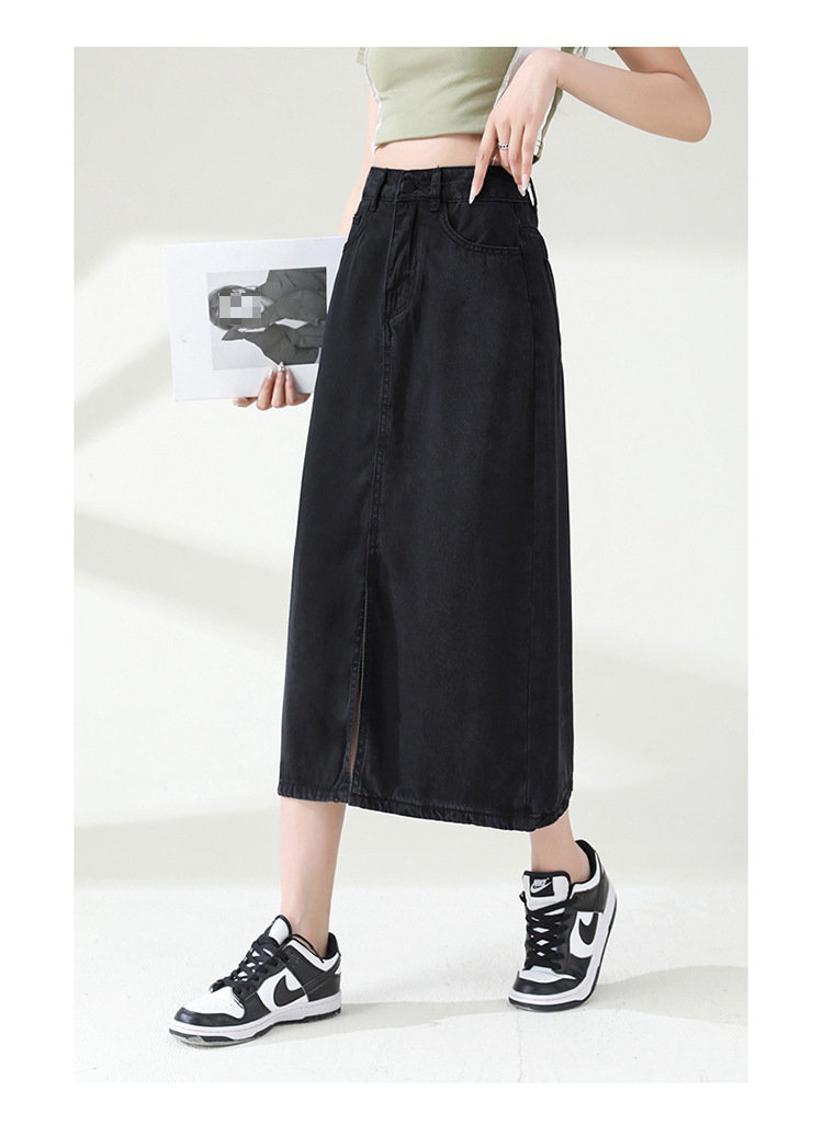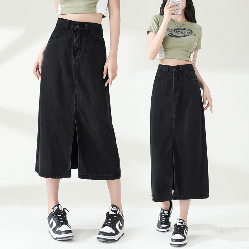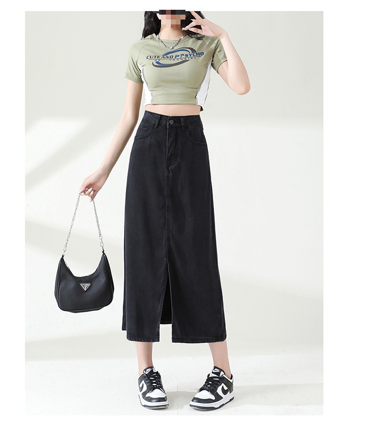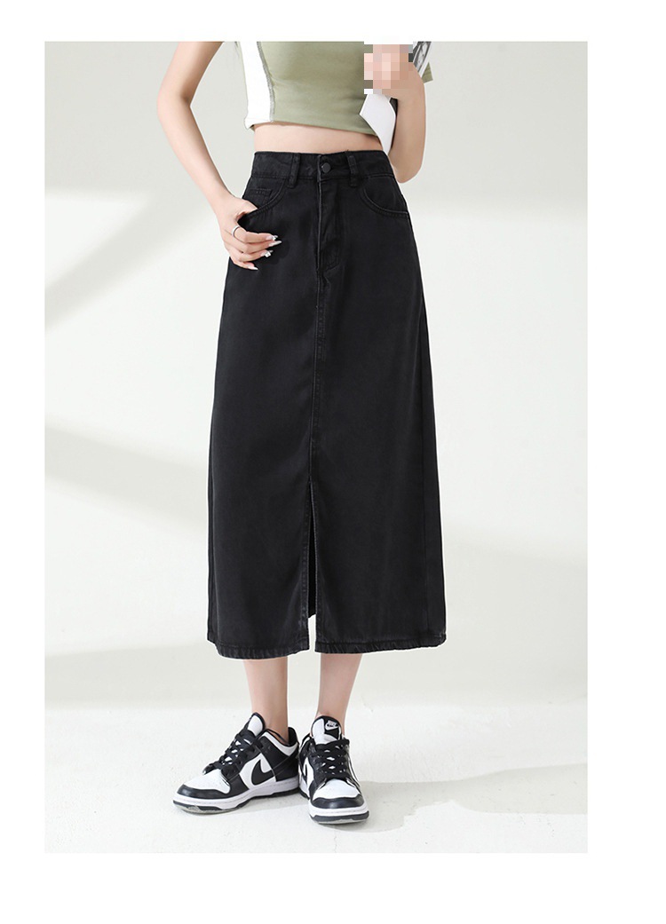 Lyocell Tencel 스플릿 데님 스커트 여자 여름 2024 새로운 높은 허리 슬리밍 아이스 실크 A-라인 힙합 스커트