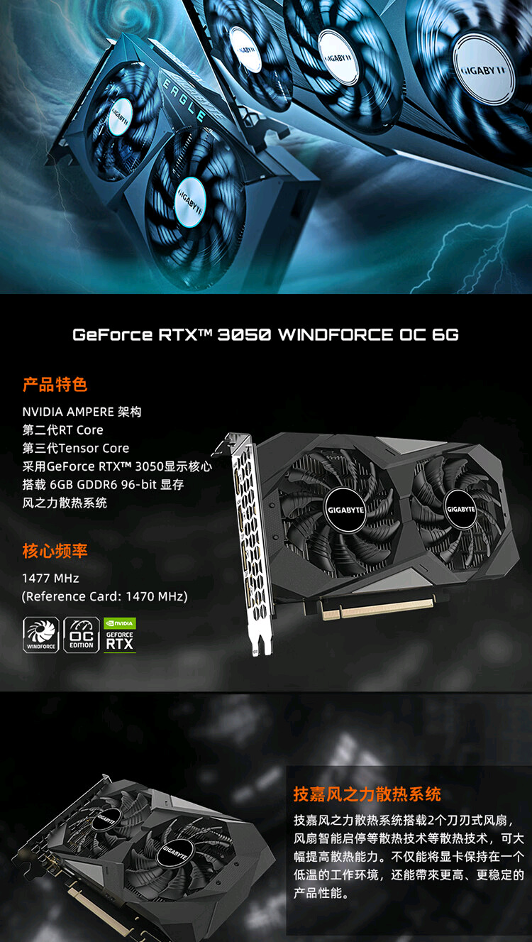 기가바이트 RTX3050 WINDFORCE OC V2 6G 윈드포스 OC V2 6G 게이밍 컴퓨터 그래픽 카드스토어 가기