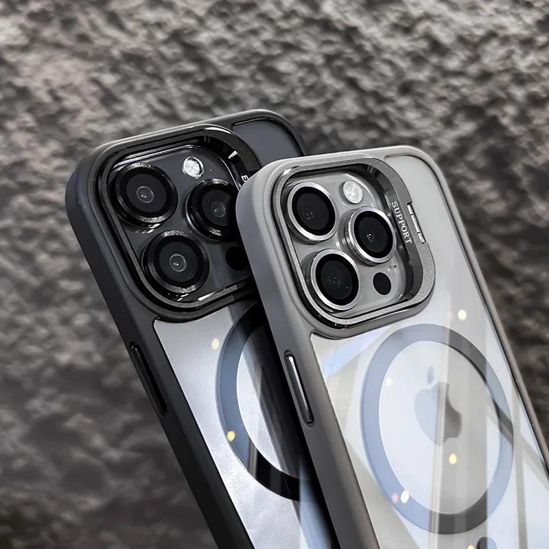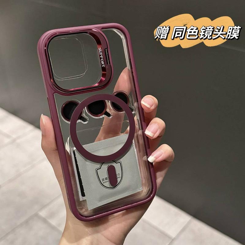 애플 17용 투명 스탠드 투명 휴대폰 케이스 자석식 iPhone15ProMax CD 패턴 렌즈 필름 포함
