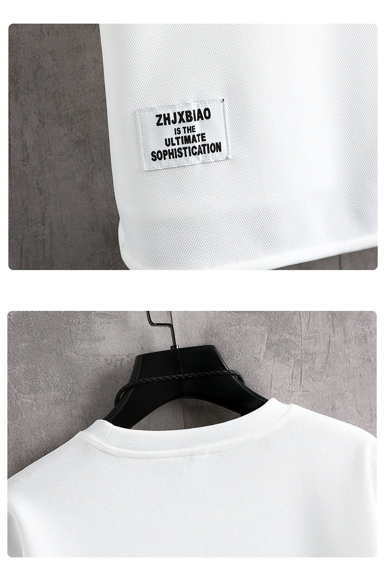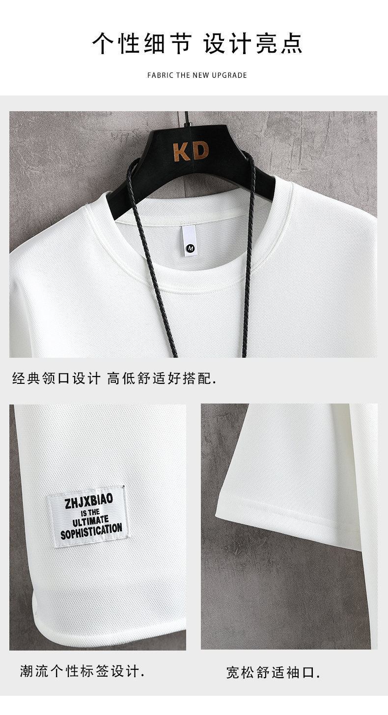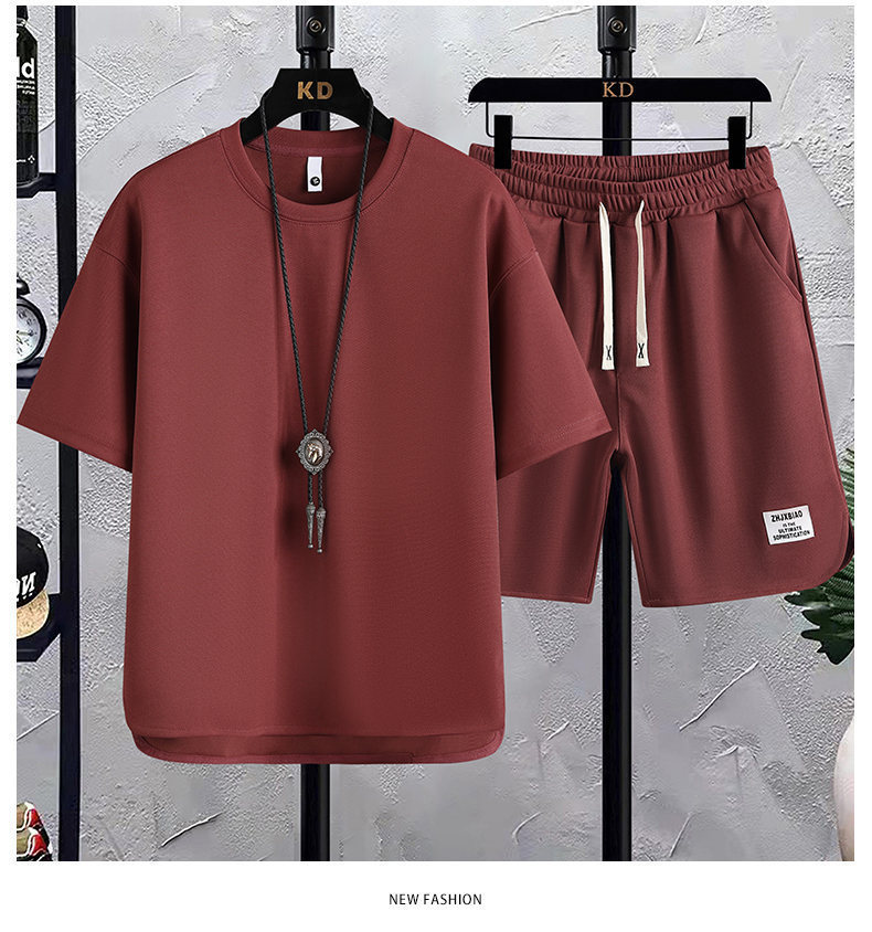 유행 세트 남성 와플 반팔 티셔츠 유행 브랜드 여름 새로운 느슨한 한국 유행 스포츠 캐주얼 투피스 세트