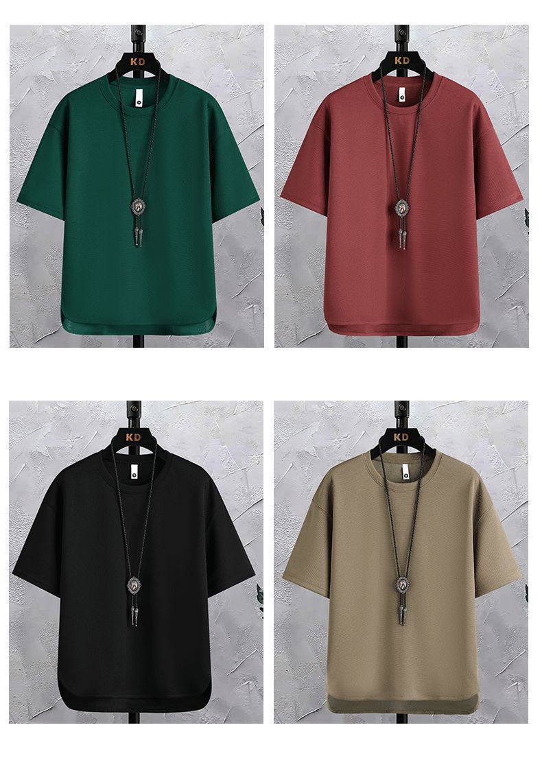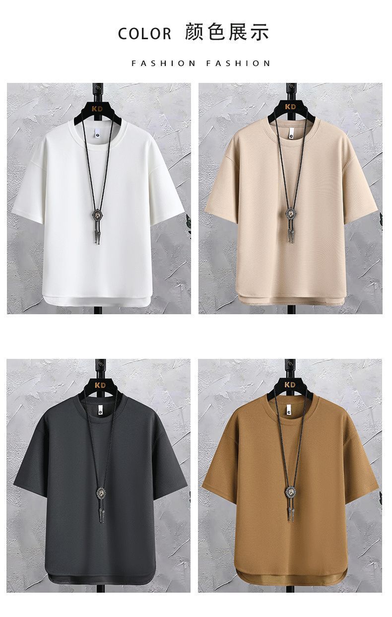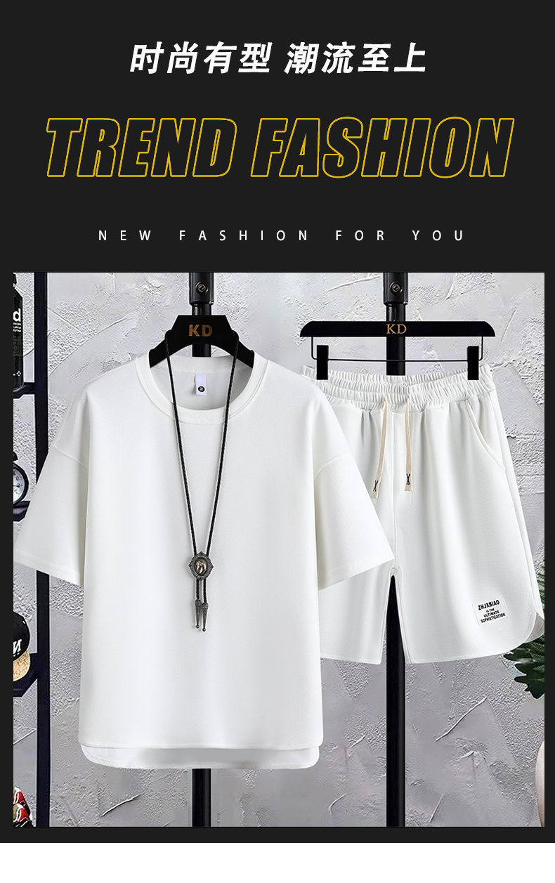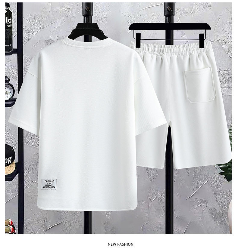유행 세트 남성 와플 반팔 티셔츠 유행 브랜드 여름 새로운 느슨한 한국 유행 스포츠 캐주얼 투피스 세트스토어 가기