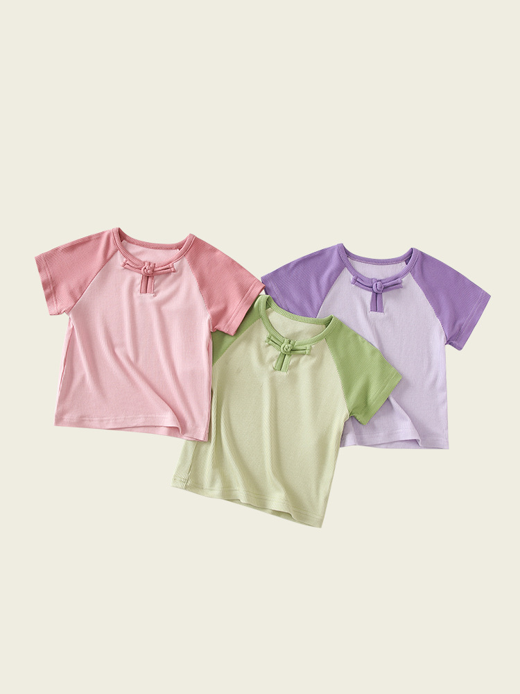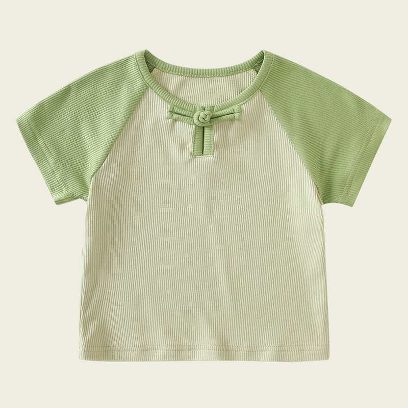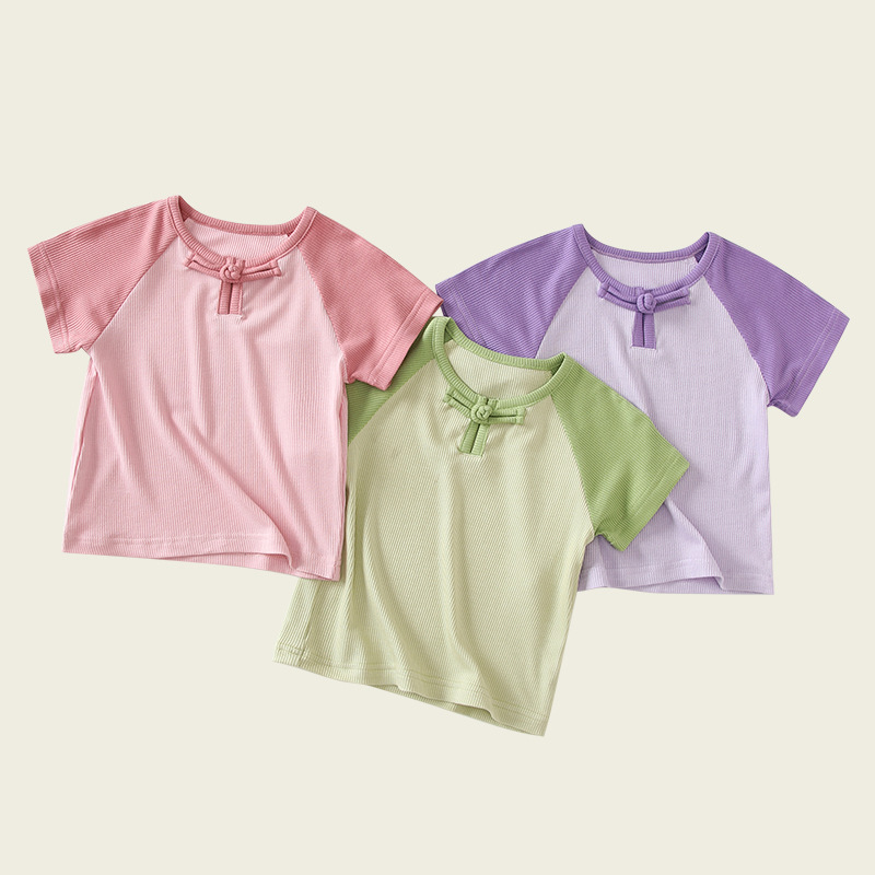 여자를위한 여름 새로운 아기 Guofeng 옷 1-2 세 얇은 반팔 달콤한 귀여운 아기 여름 탑