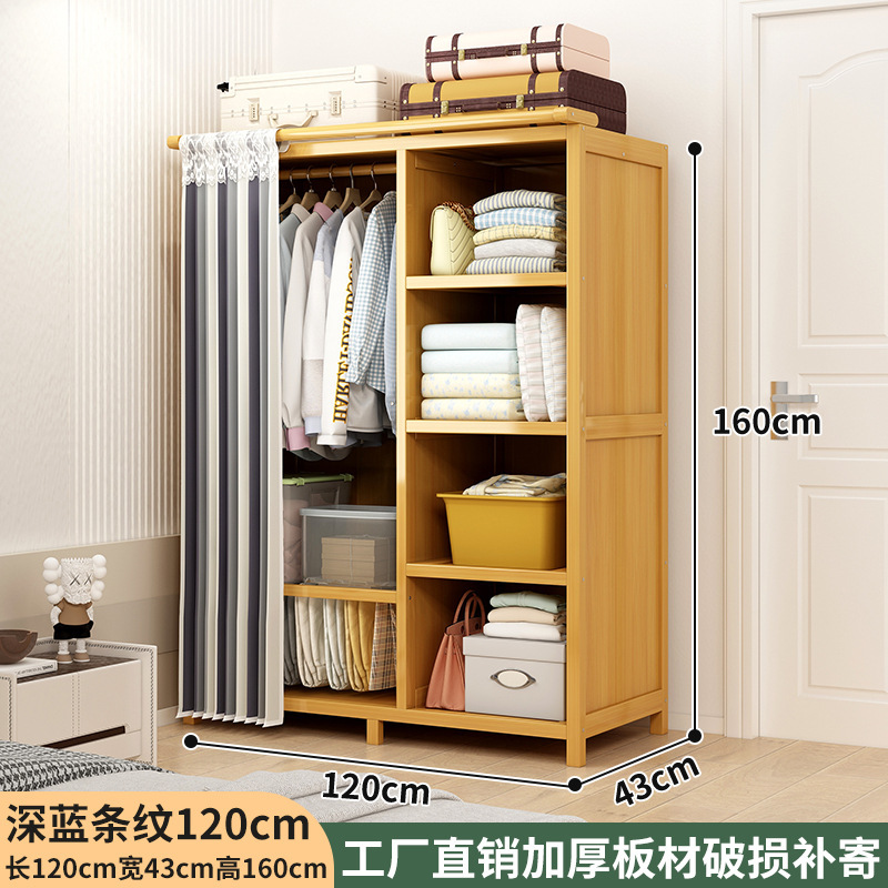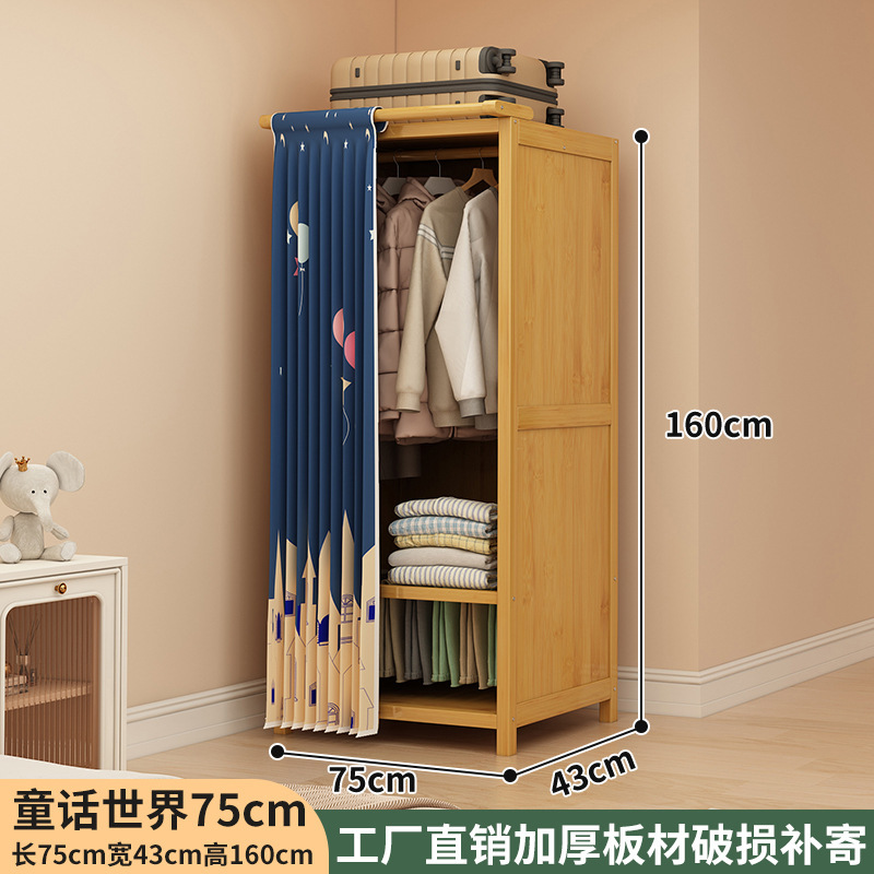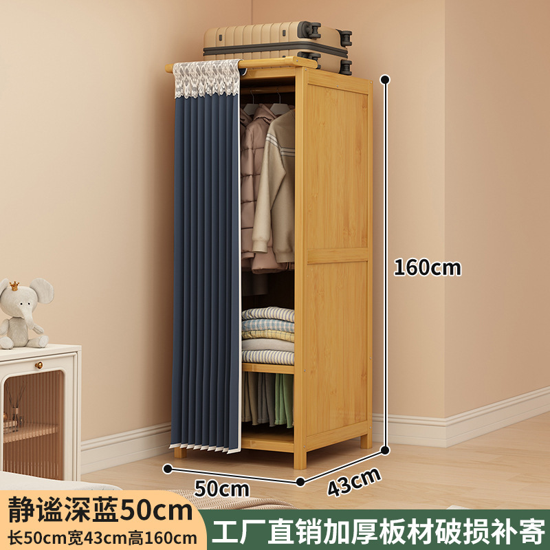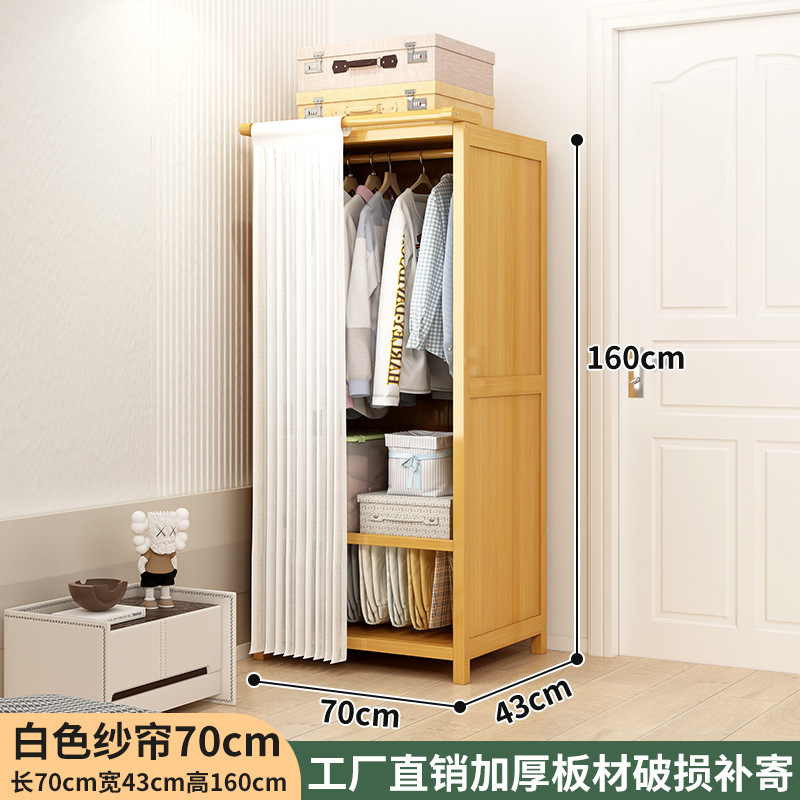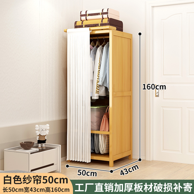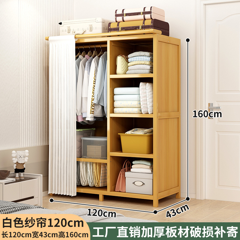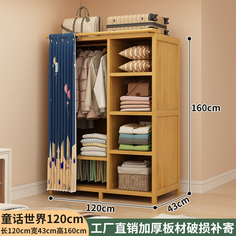 옷장 옷걸이 공간 다실용 가정용 간편 임대용 모던 심플 대나무 기숙사 옷장 문 커튼 방진 캐비닛