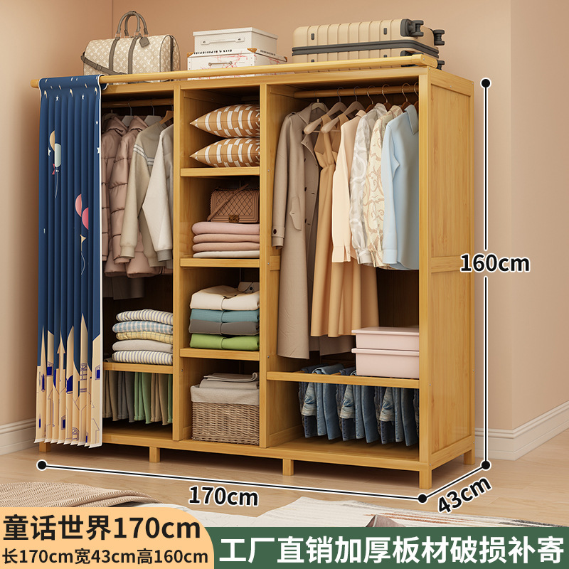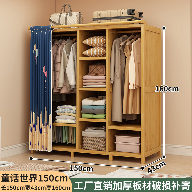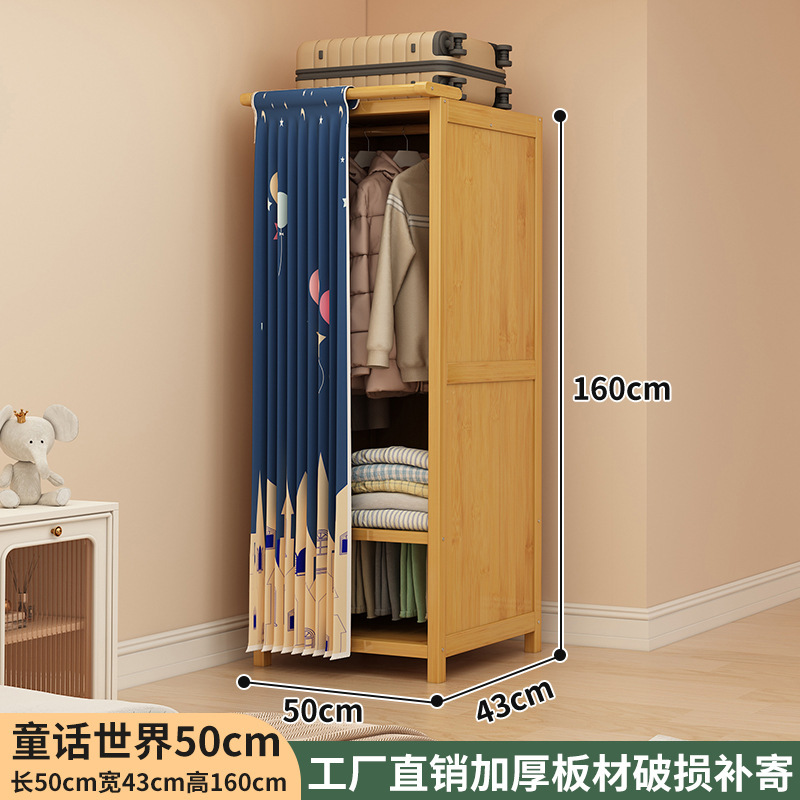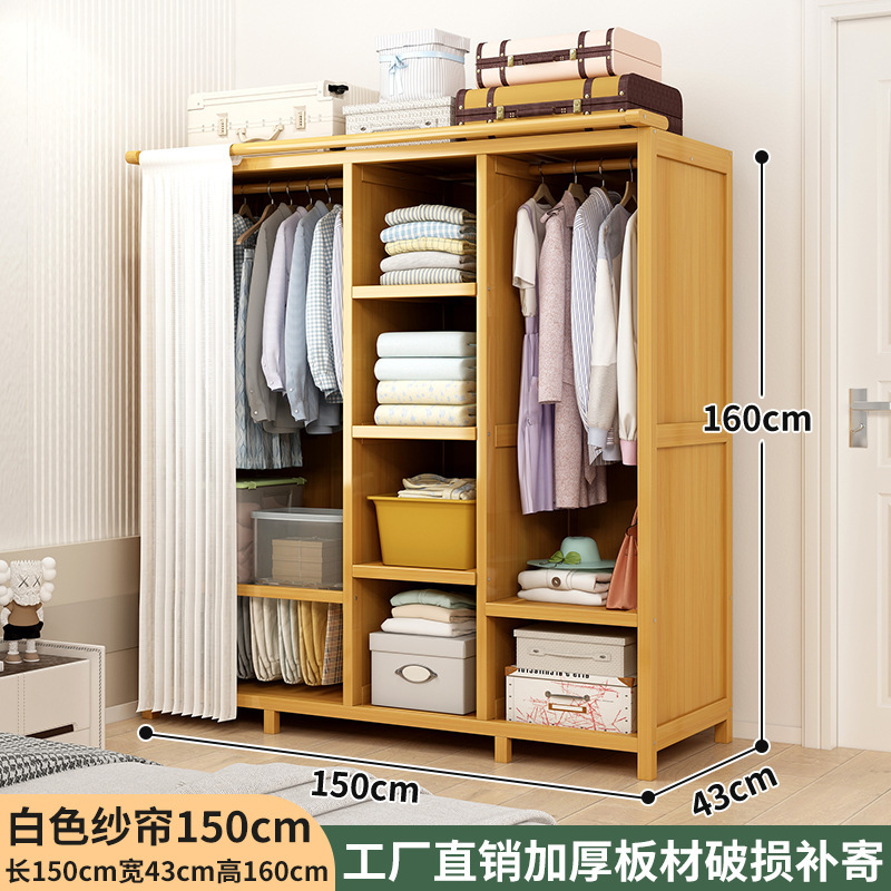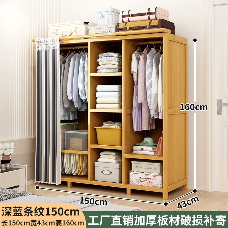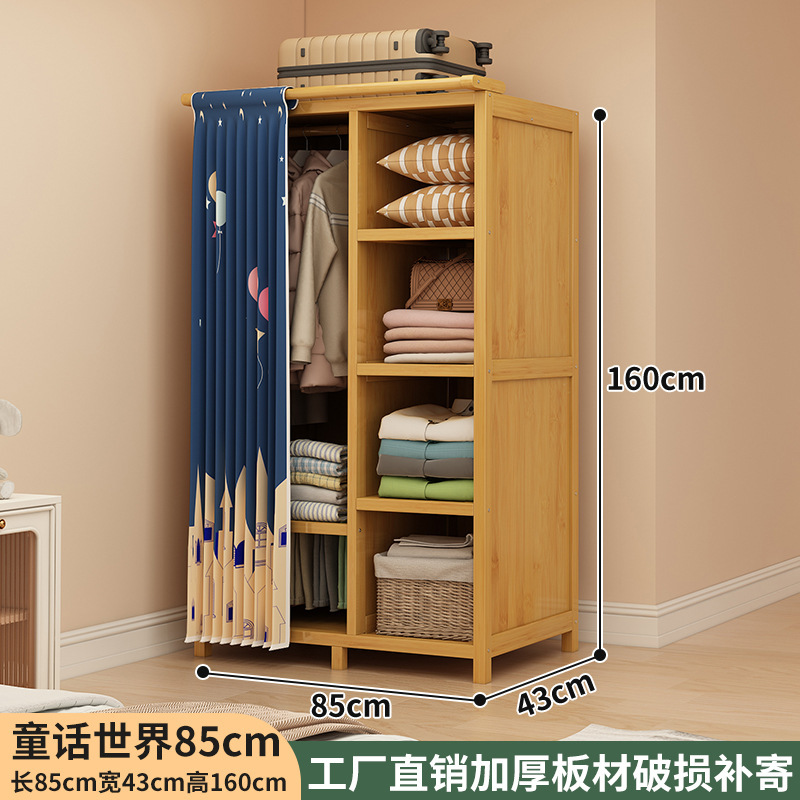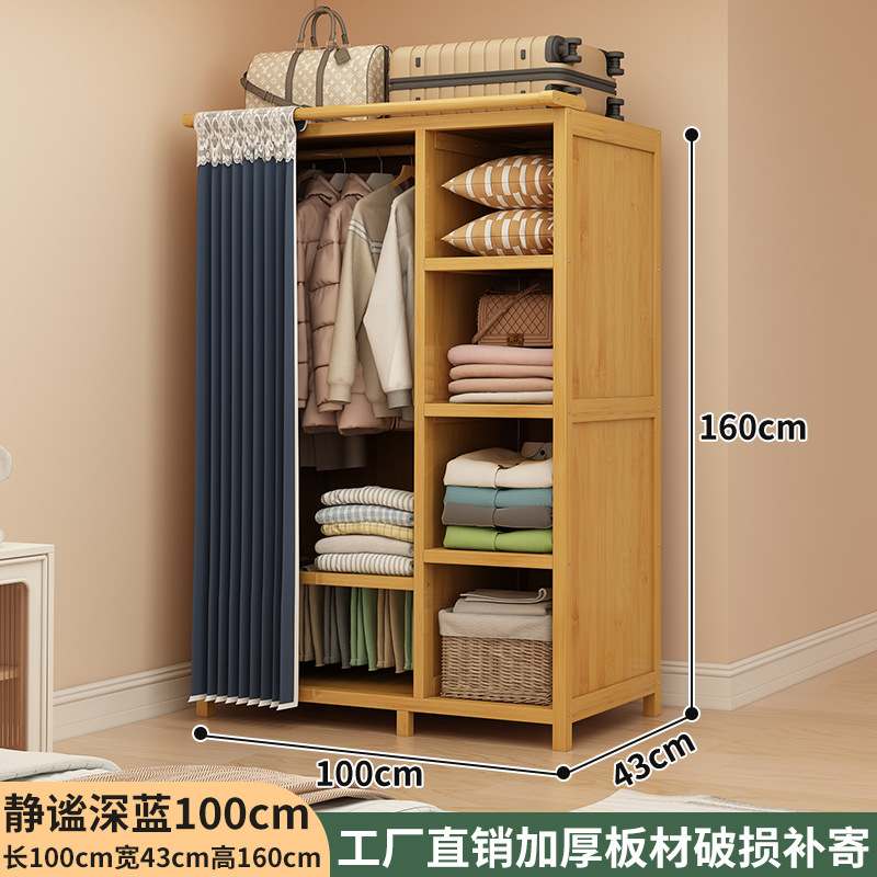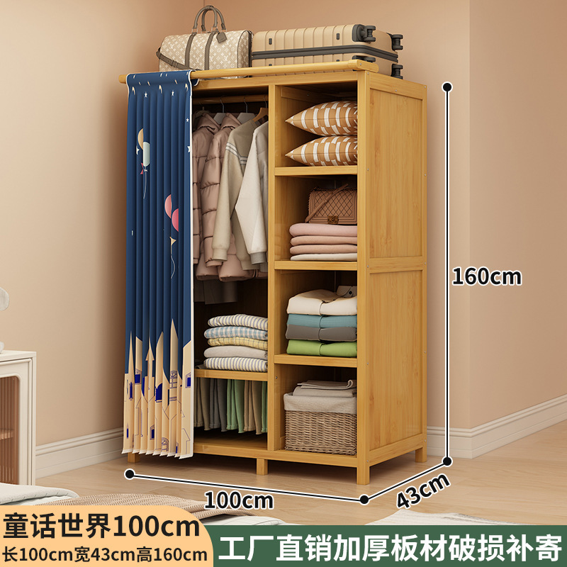 옷장 옷걸이 공간 다실용 가정용 간편 임대용 모던 심플 대나무 기숙사 옷장 문 커튼 방진 캐비닛