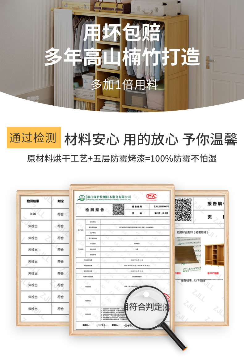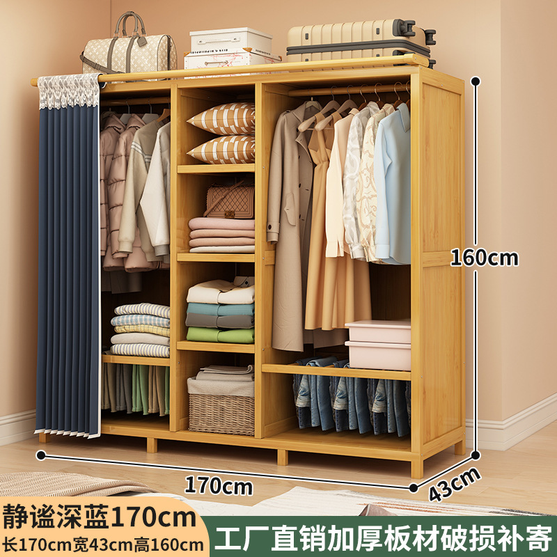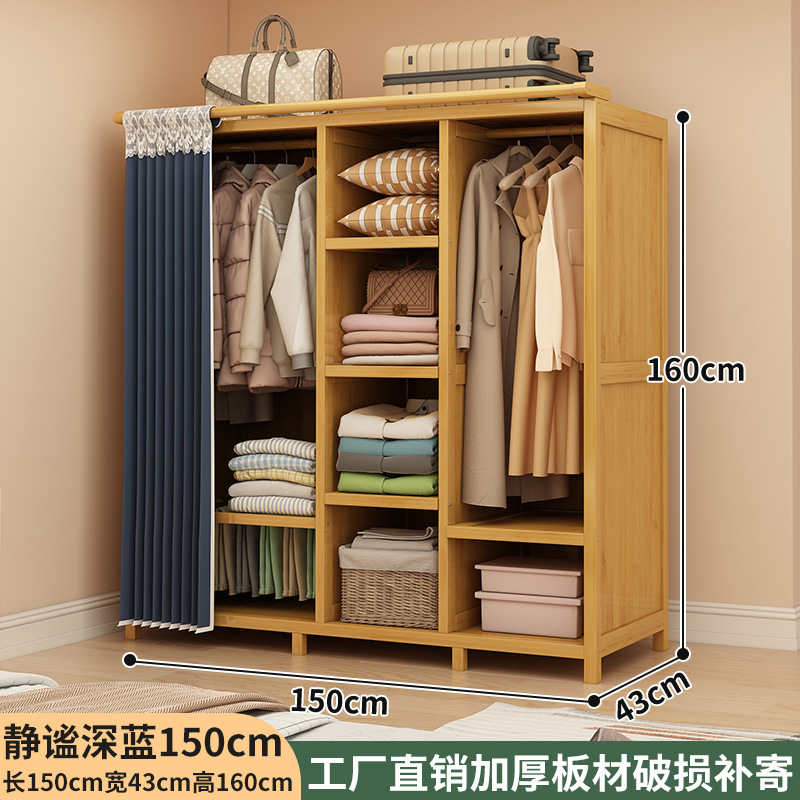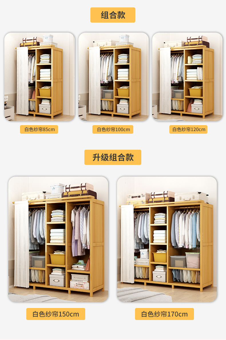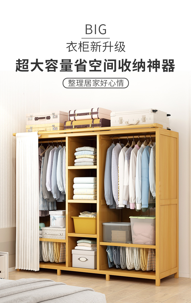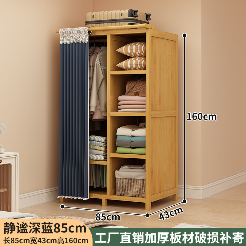옷장 옷걸이 공간 다실용 가정용 간편 임대용 모던 심플 대나무 기숙사 옷장 문 커튼 방진 캐비닛