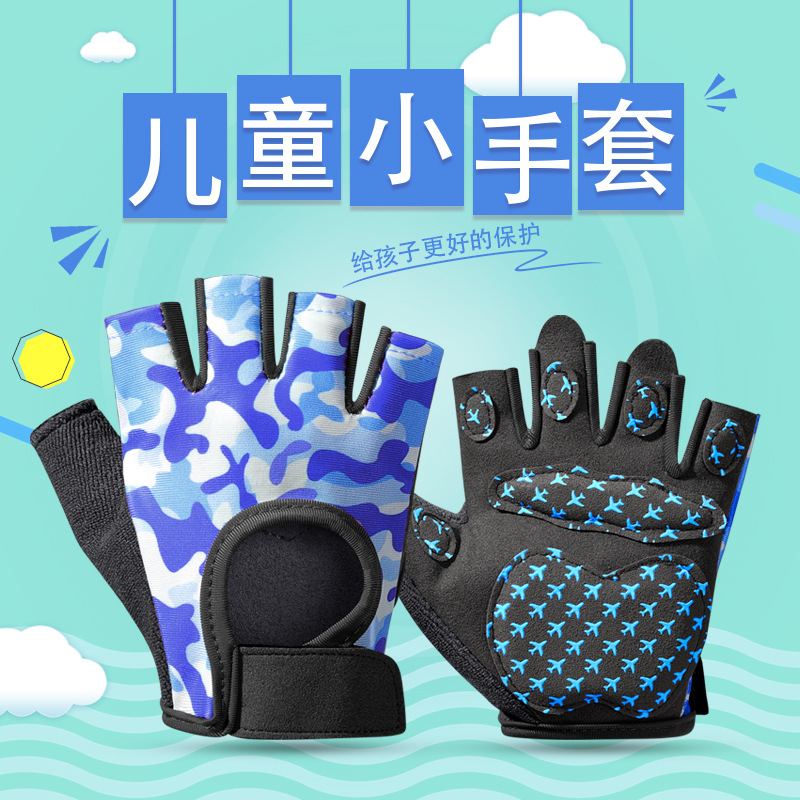얇은 손바닥 미끄럼 방지 통기성 산악 자전거 반 손가락 스포츠 장갑을 타고 어린이 균형 자전거