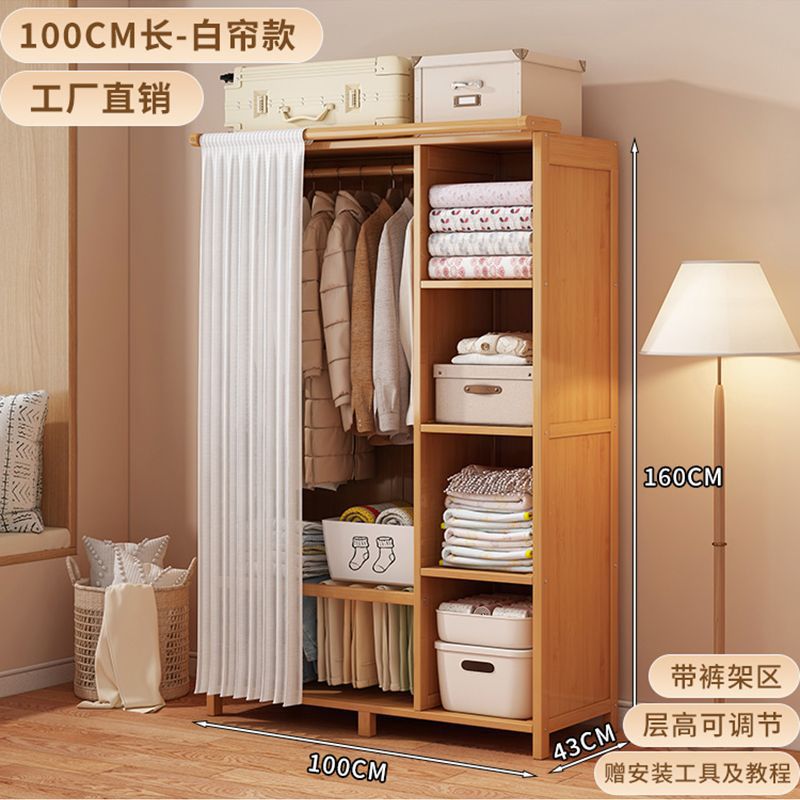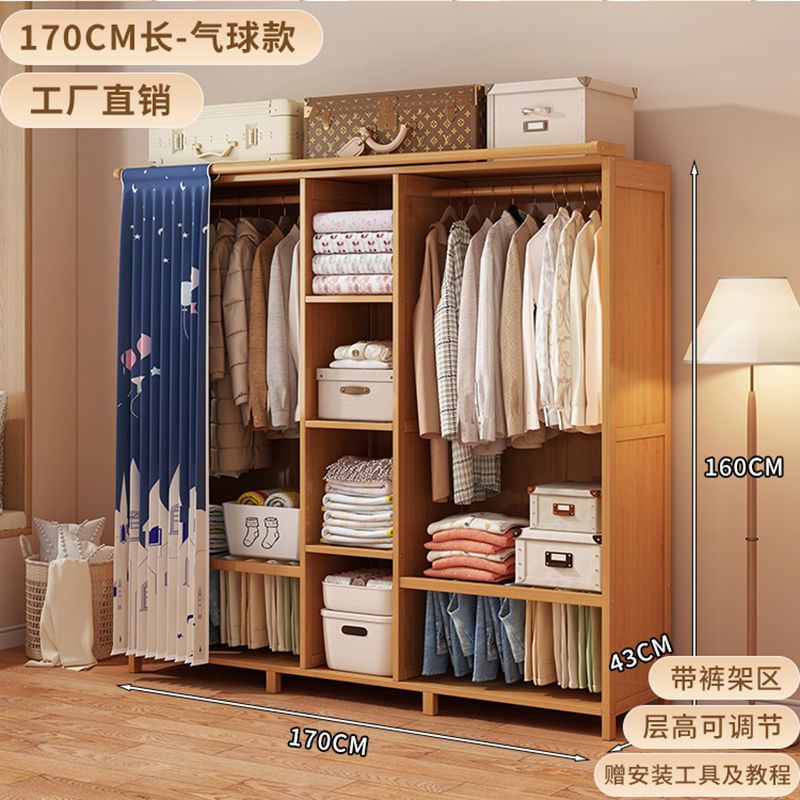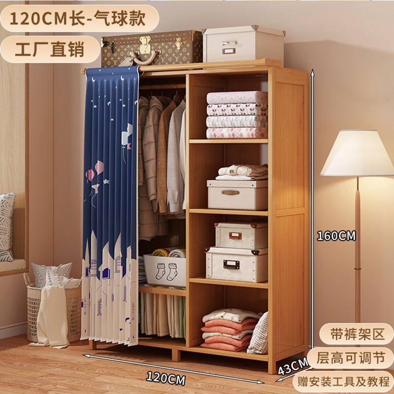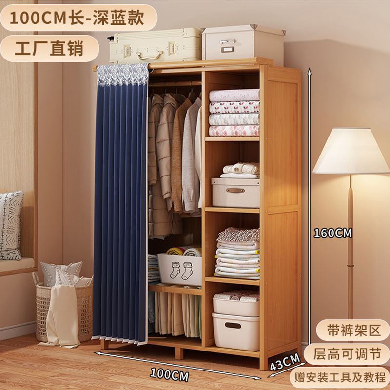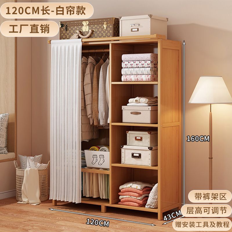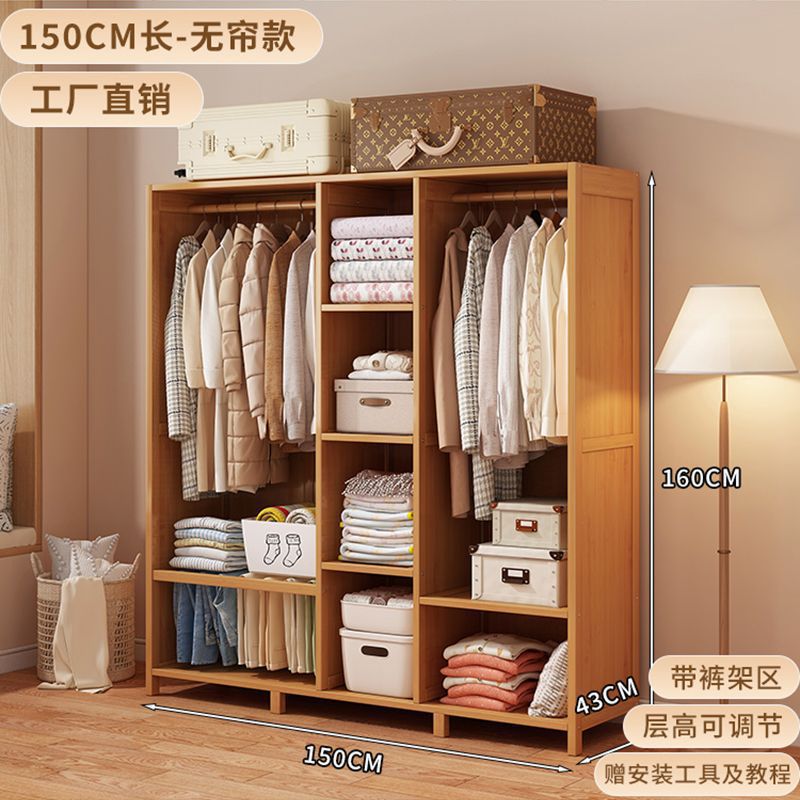 대나무 옷장 간단한 경제적 인 침실 방진 대여실 가정용 옷걸이 보관 랙 옷장스토어 가기