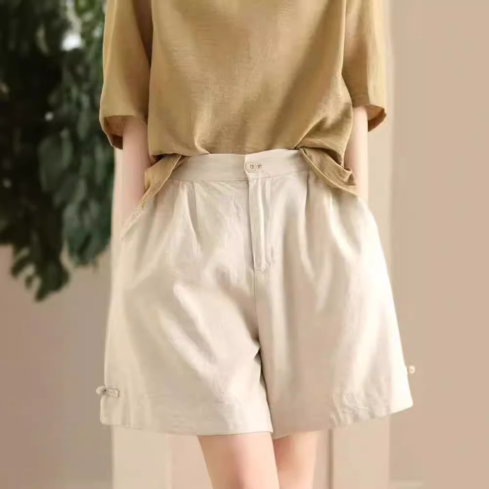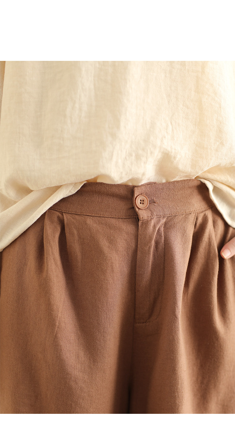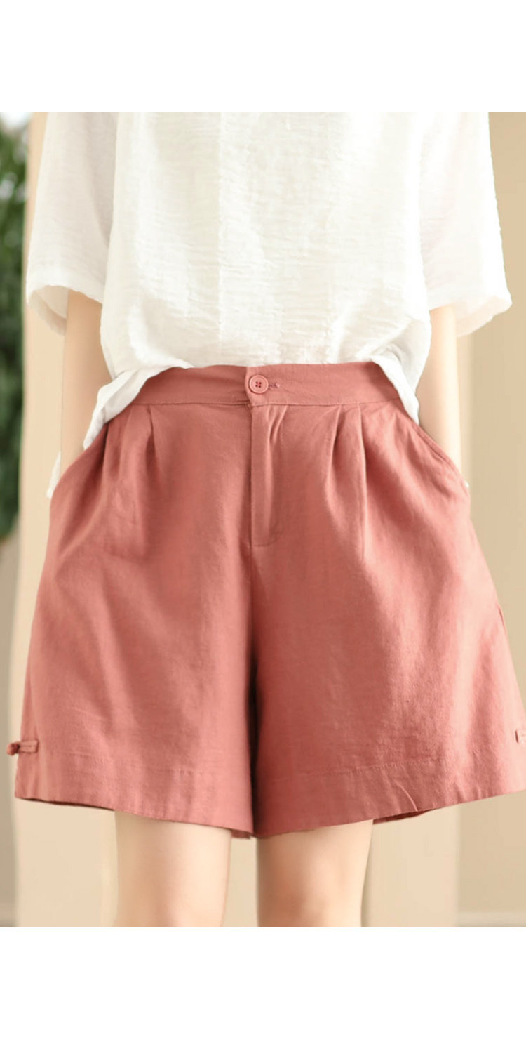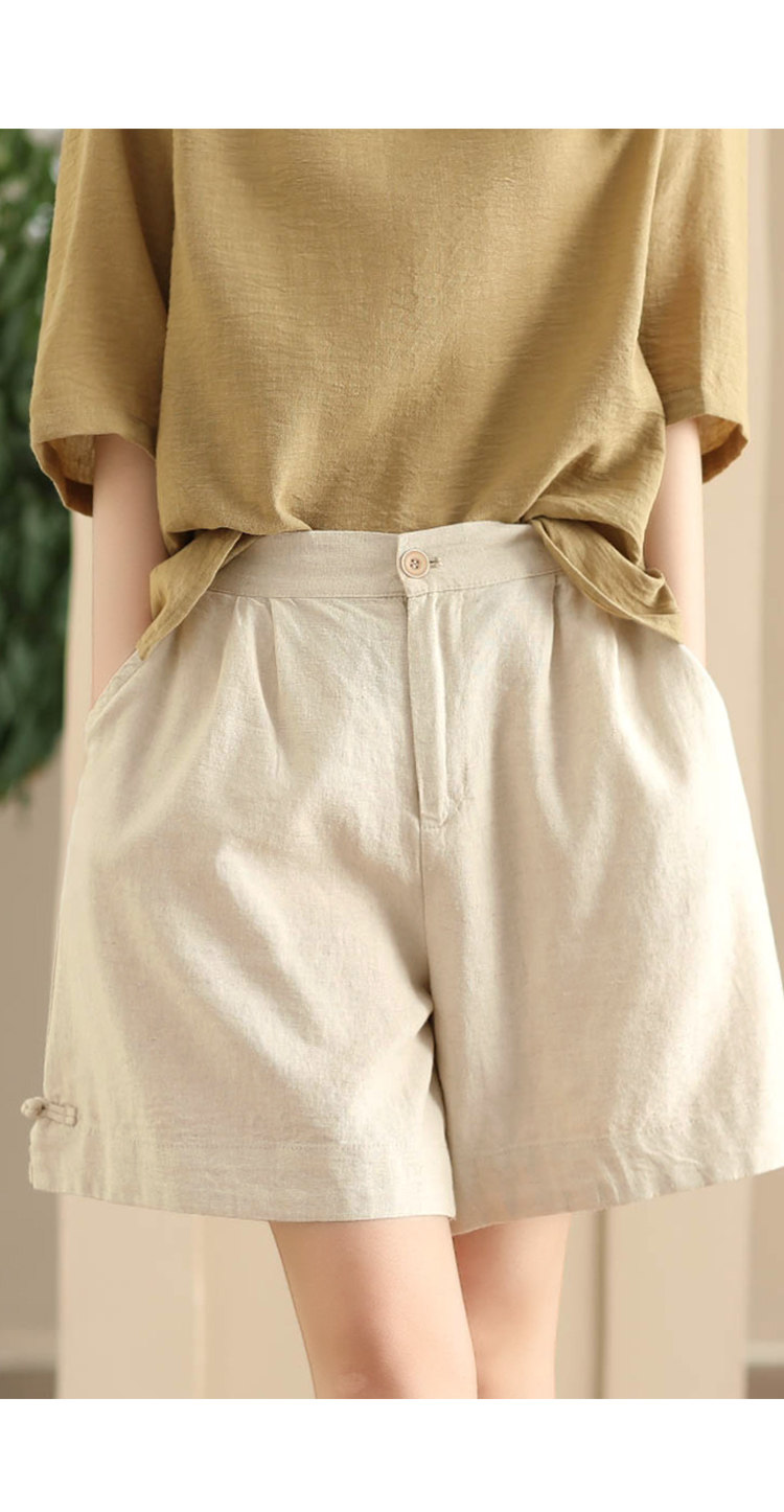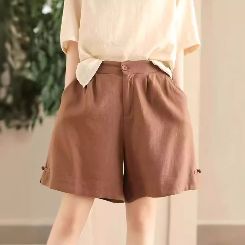 빈티지 샌드 워시 린넨 와이드 레그 바지 예술적 버튼 다운 반바지 슬리밍 느슨한 솔리드 컬러 리넨 바지 캐주얼 바지스토어 가기