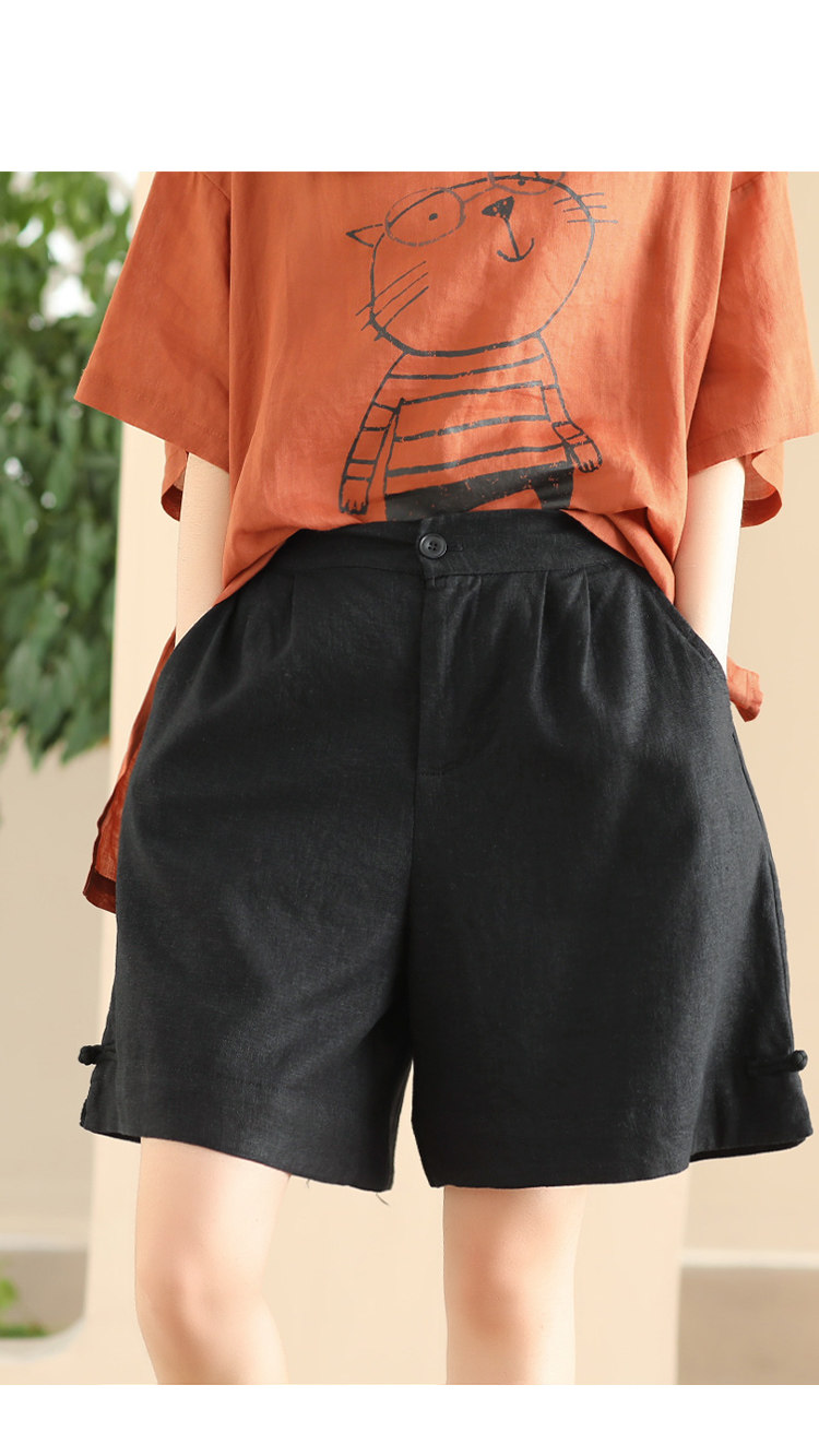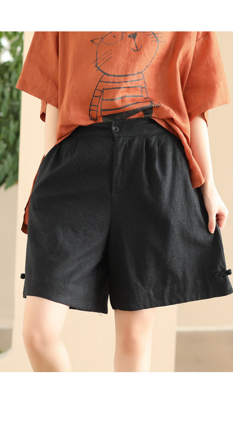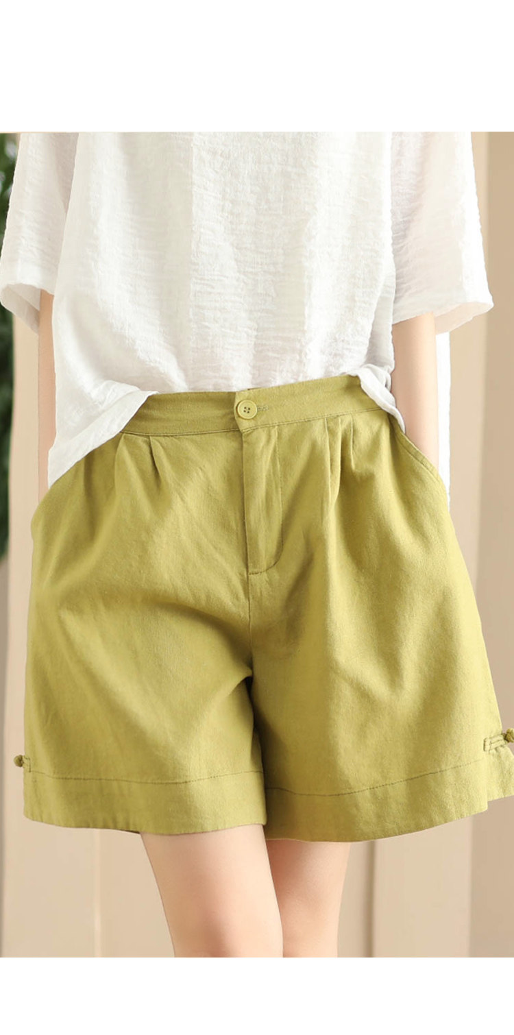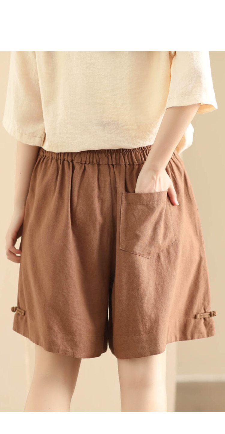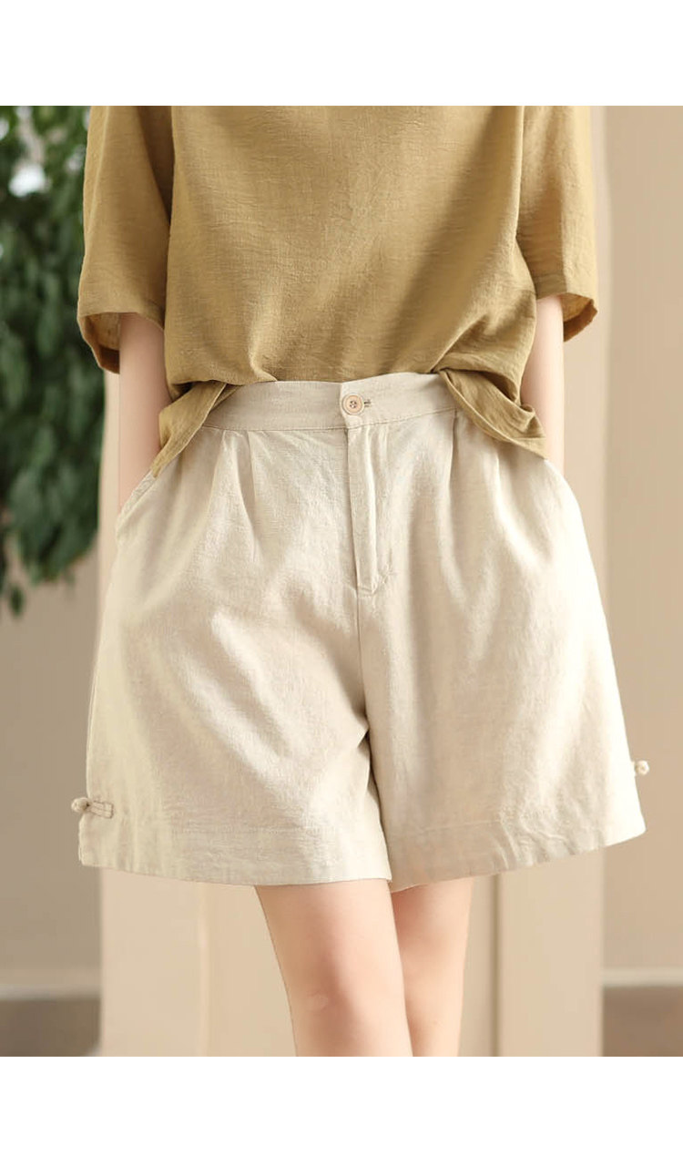 빈티지 샌드 워시 린넨 와이드 레그 바지 예술적 버튼 다운 반바지 슬리밍 느슨한 솔리드 컬러 리넨 바지 캐주얼 바지스토어 가기