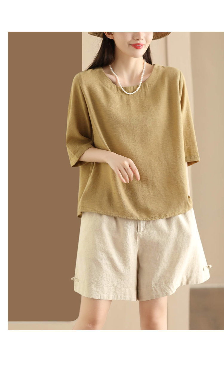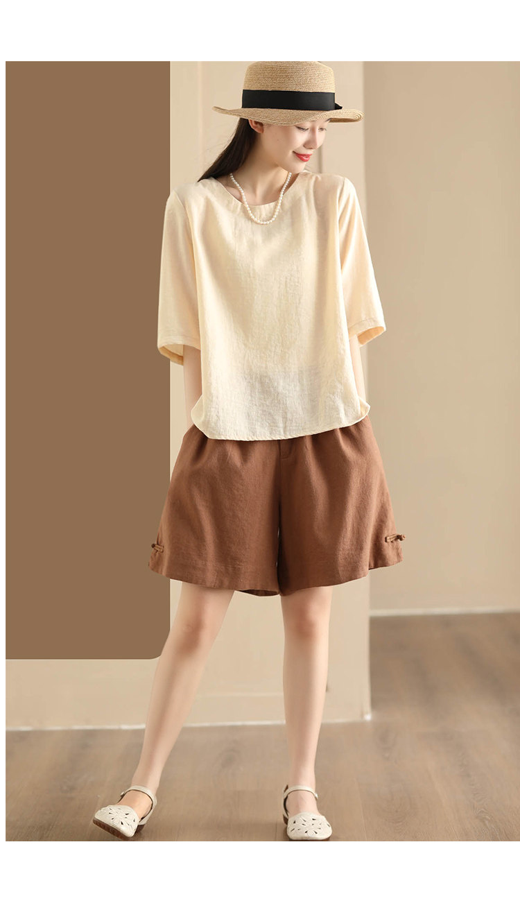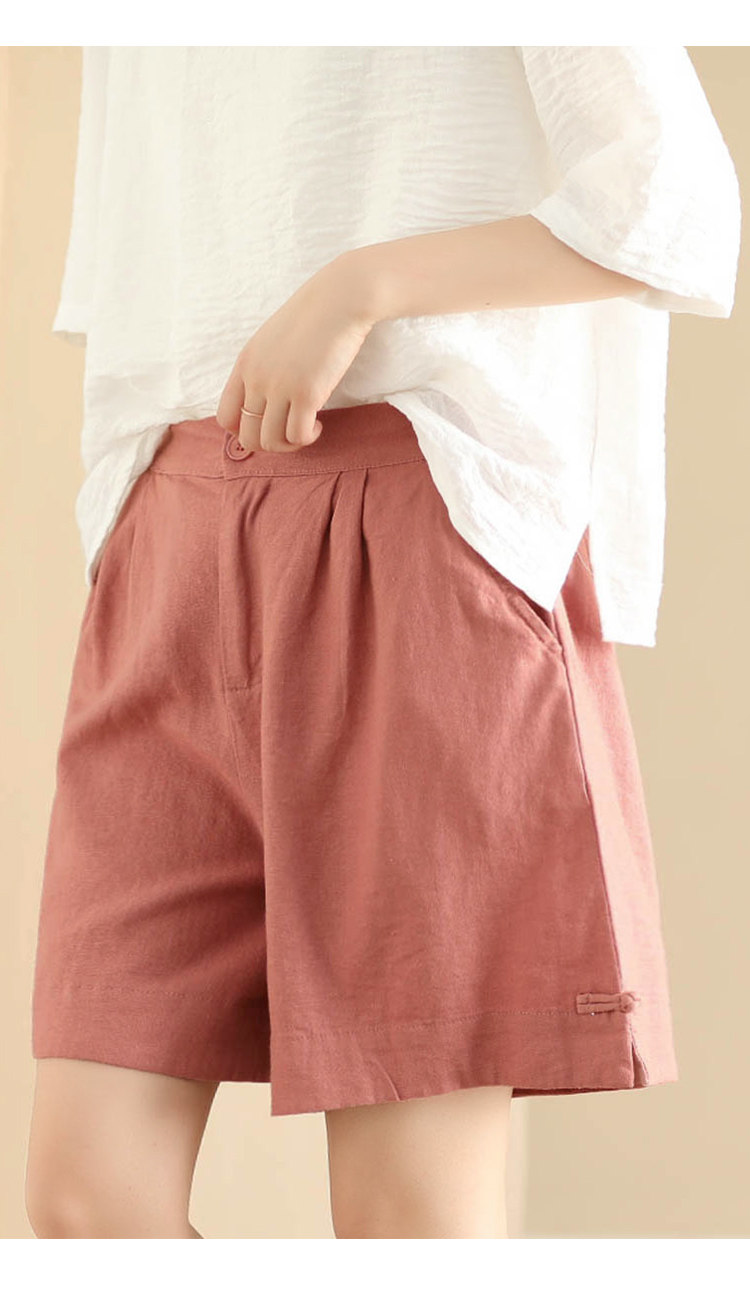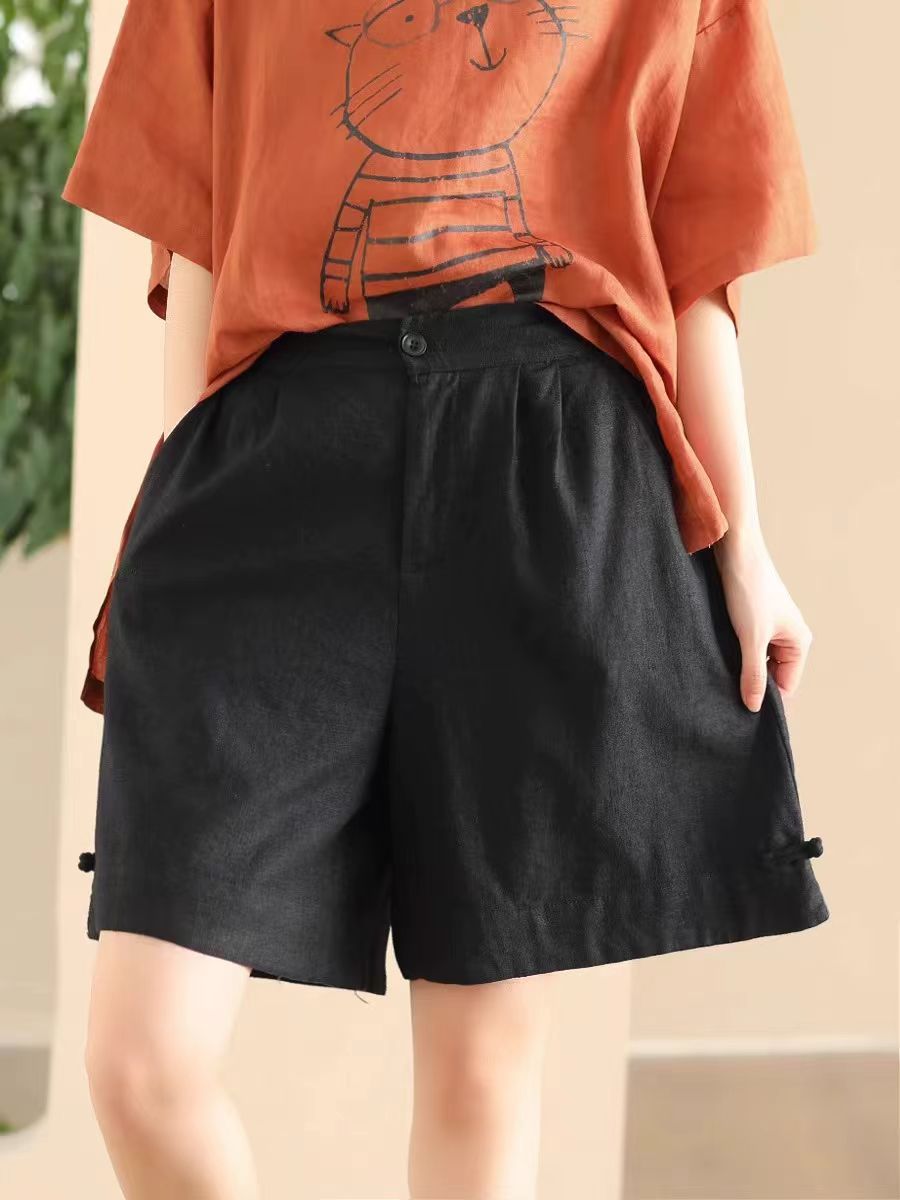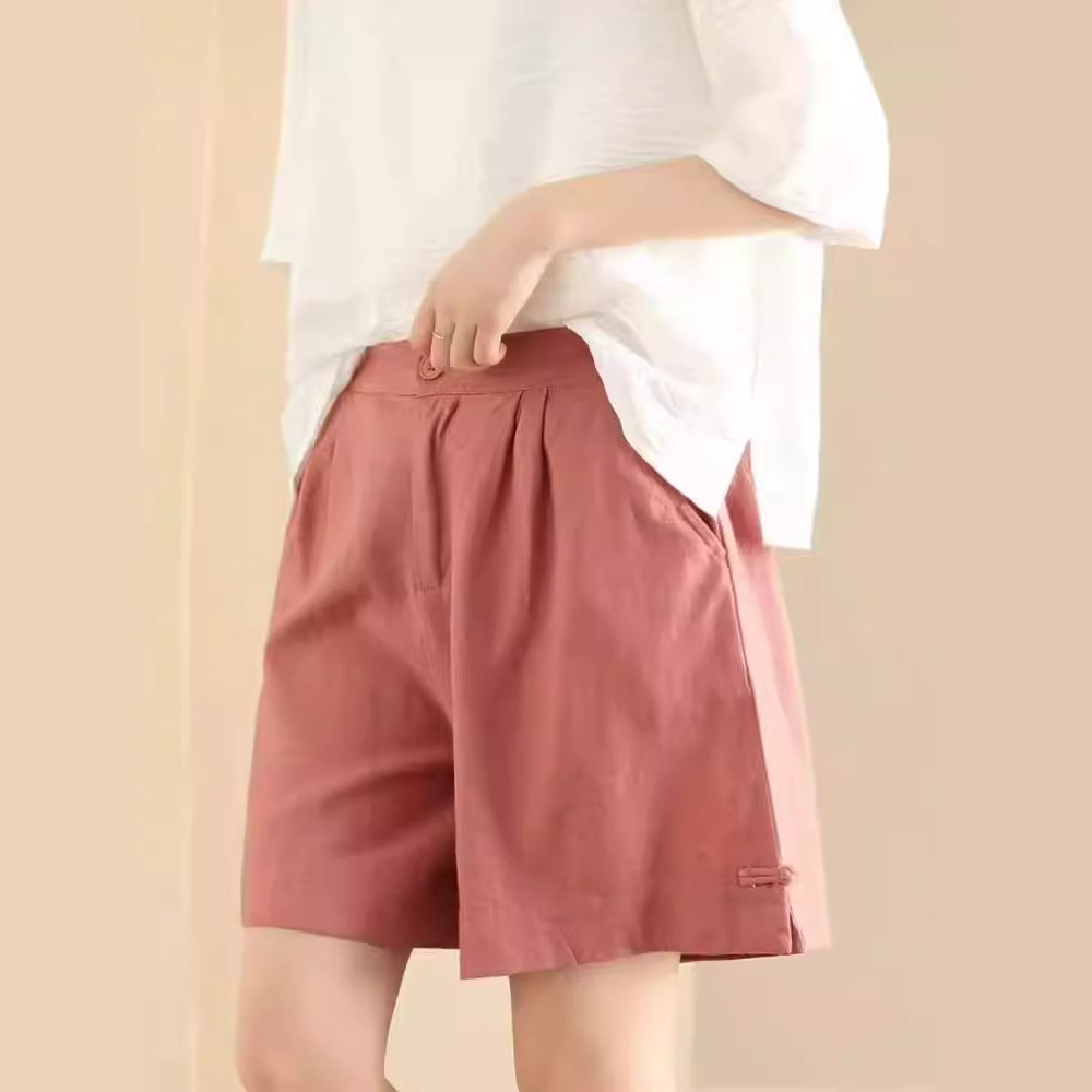 빈티지 샌드 워시 린넨 와이드 레그 바지 예술적 버튼 다운 반바지 슬리밍 느슨한 솔리드 컬러 리넨 바지 캐주얼 바지스토어 가기