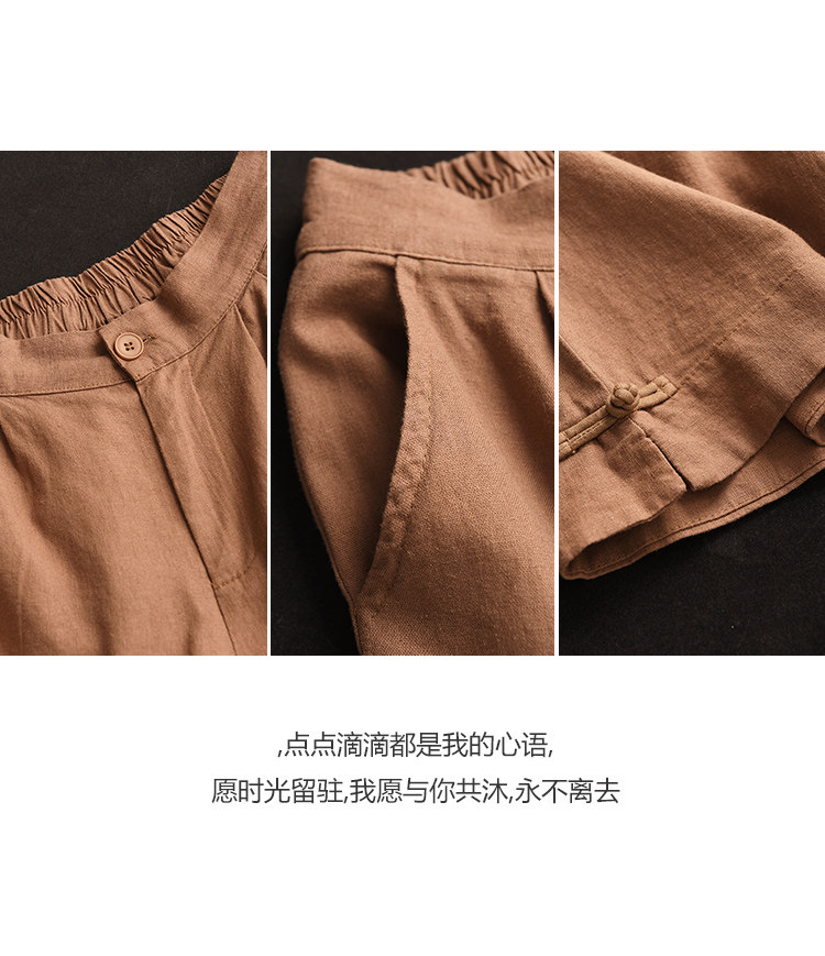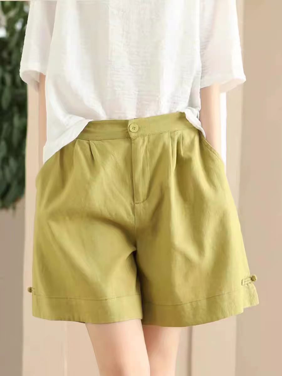 빈티지 샌드 워시 린넨 와이드 레그 바지 예술적 버튼 다운 반바지 슬리밍 느슨한 솔리드 컬러 리넨 바지 캐주얼 바지