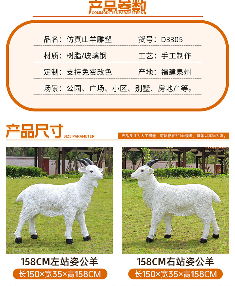 야외 시뮬레이션 염소 양 유리 섬유 강화 플라스틱 조각 판매 부서 커뮤니티 잔디 목장 농장 공원 숲 장식