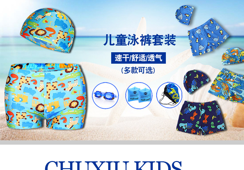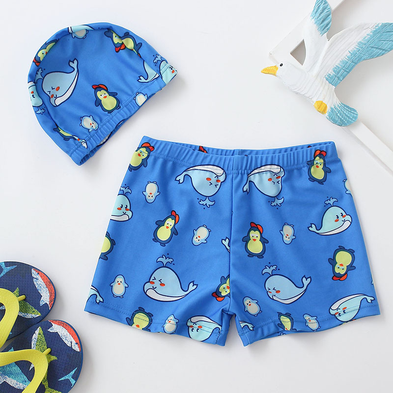 어린이 수영 트렁크 소년 헤어지는 아기 수영복 후드 귀여운 만화 중간 큰 아이 수영복 소년 수영 트렁크 세트