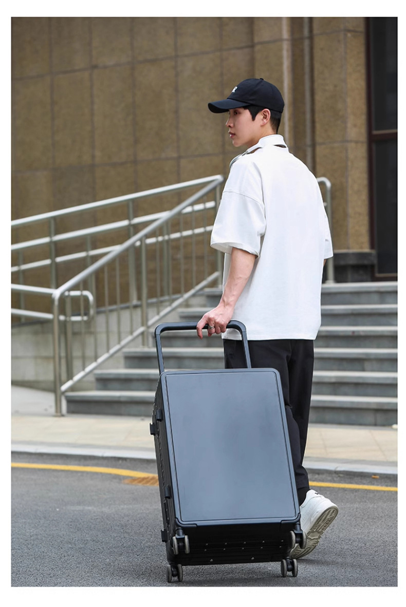 새로운 와이드 타이로드 수하물 알루미늄 프레임 음소거 유니버설 휠 가방 탑승 암호 잠금 가방 트롤리 케이스