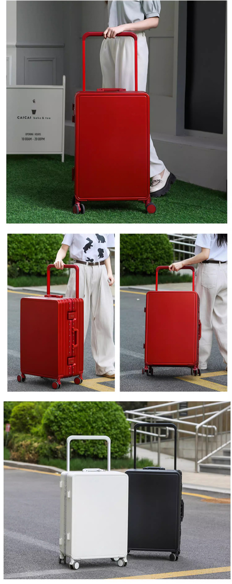 새로운 와이드 타이로드 수하물 알루미늄 프레임 음소거 유니버설 휠 가방 탑승 암호 잠금 가방 트롤리 케이스스토어 가기