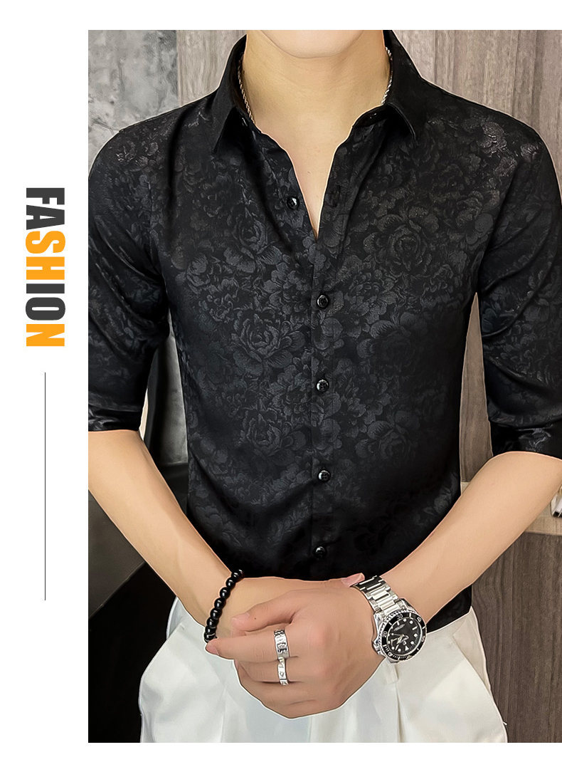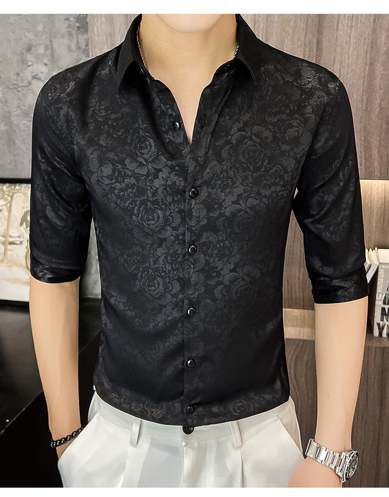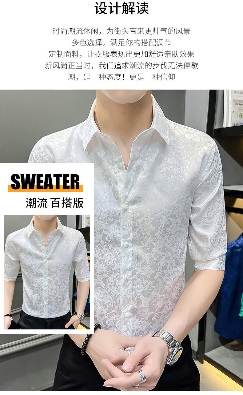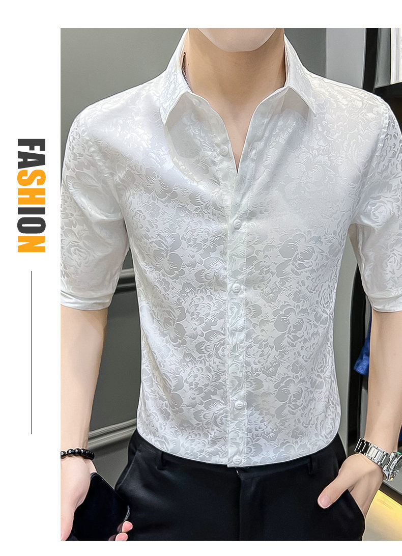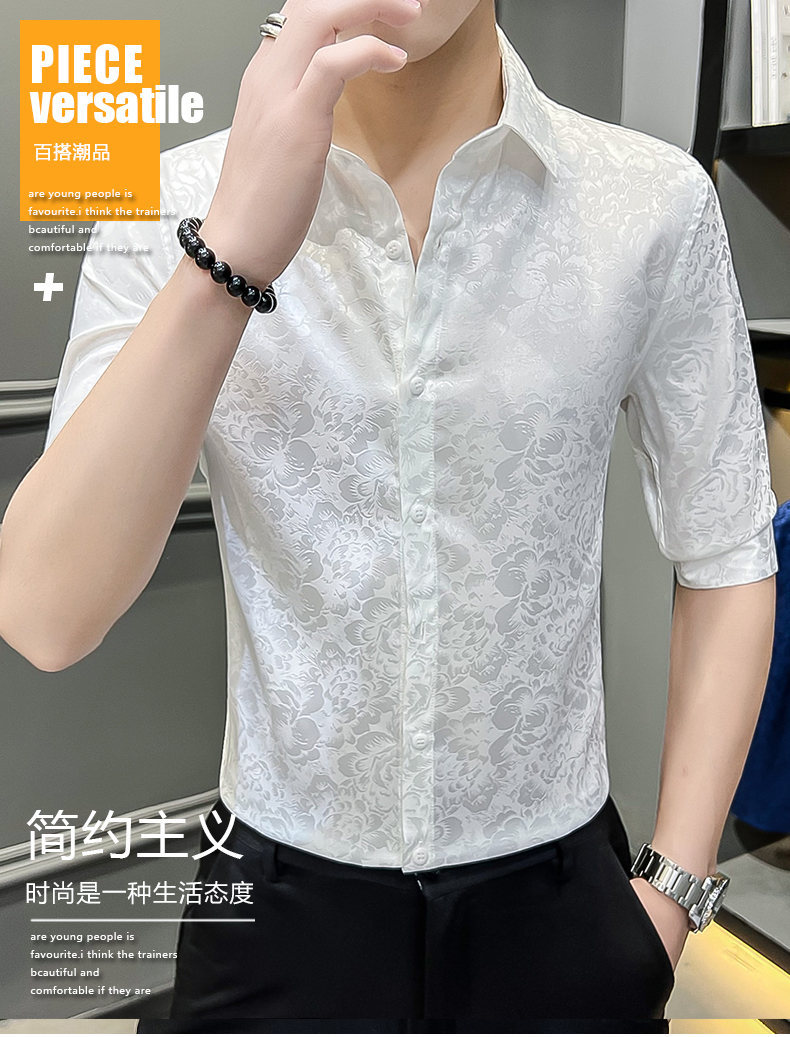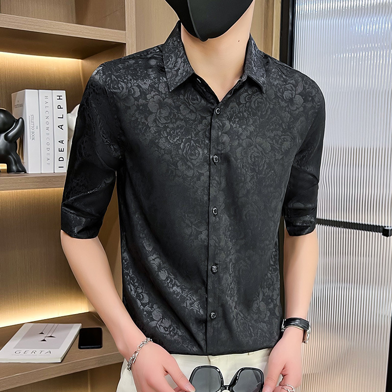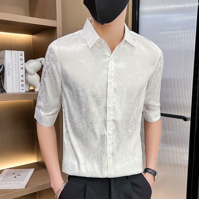 2024 년 여름 트렌디 브랜드 새로운 반팔 셔츠 고급 남성용 슬림핏 한국 아이스 스타일 중소매 트렌디 브랜드 탑