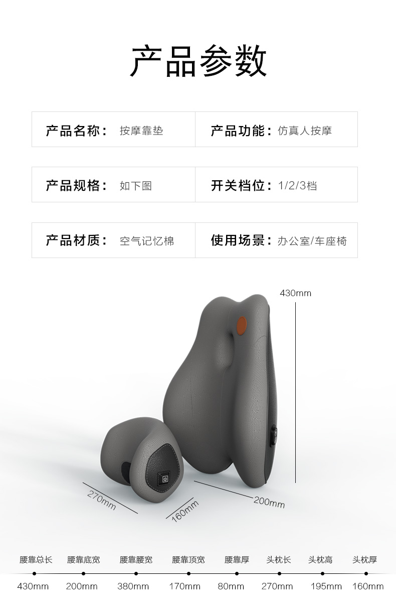 • 진동 마사지형 - 스페이스 그레이 [머리 받침 + 허리 받침]♜