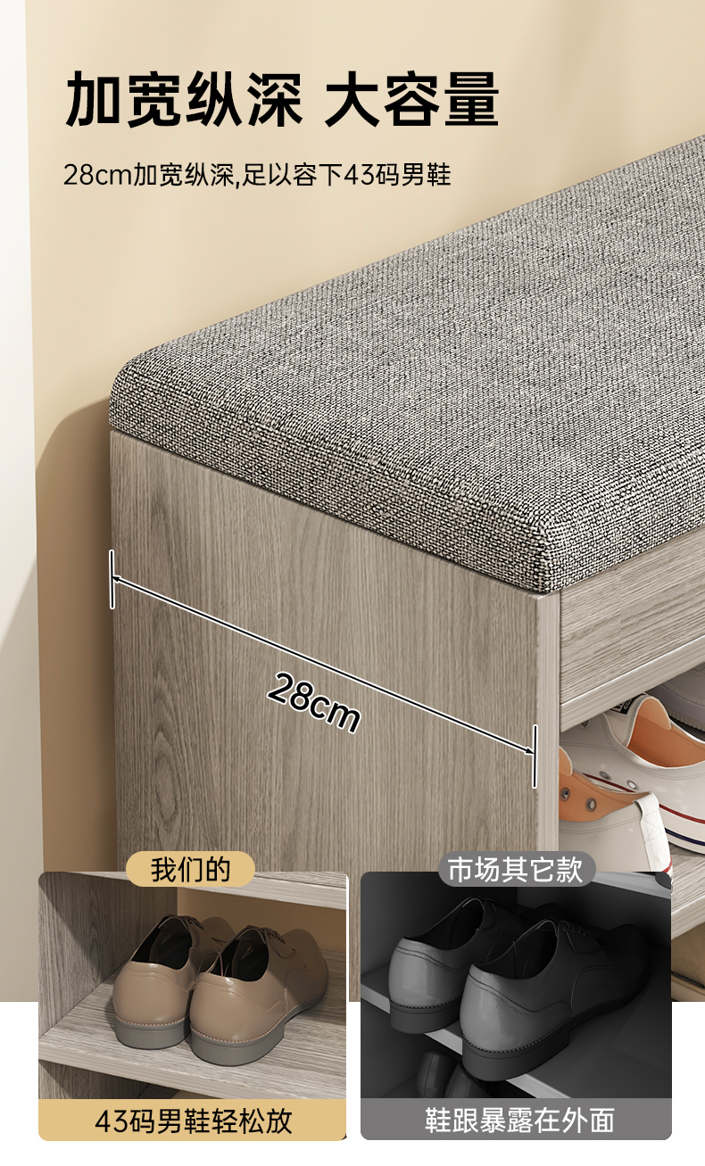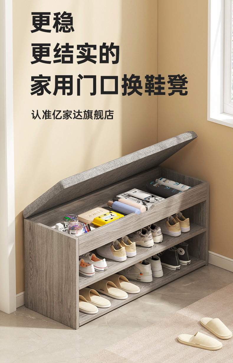 신발 변경 의자 가정용 도어 웨이 신발 랙 밀봉 가능한 신발 캐비닛 시트 스톨 통합 새로운 스토리지 솔리드 우드 스트립 착용 Shenheng