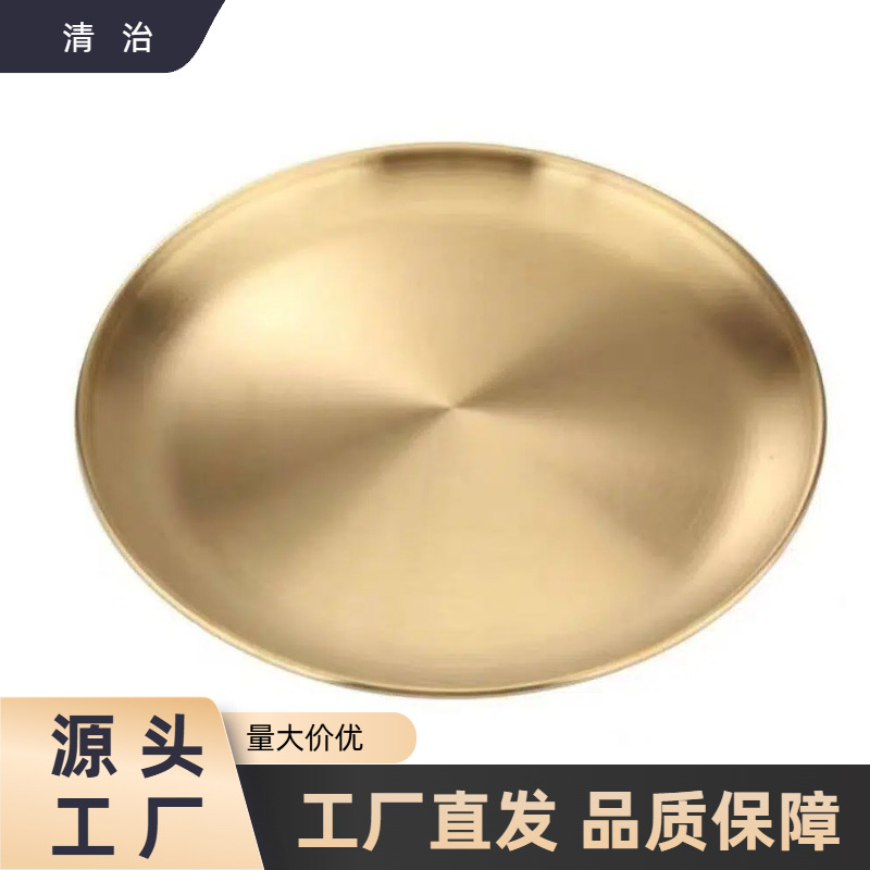 스테인레스 스틸 라운드 플레이트 가정용 한국식 얕은 플레이트 바베큐 고기 플레이트 과일 플레이트 접시 접시 식품 등급 초두께