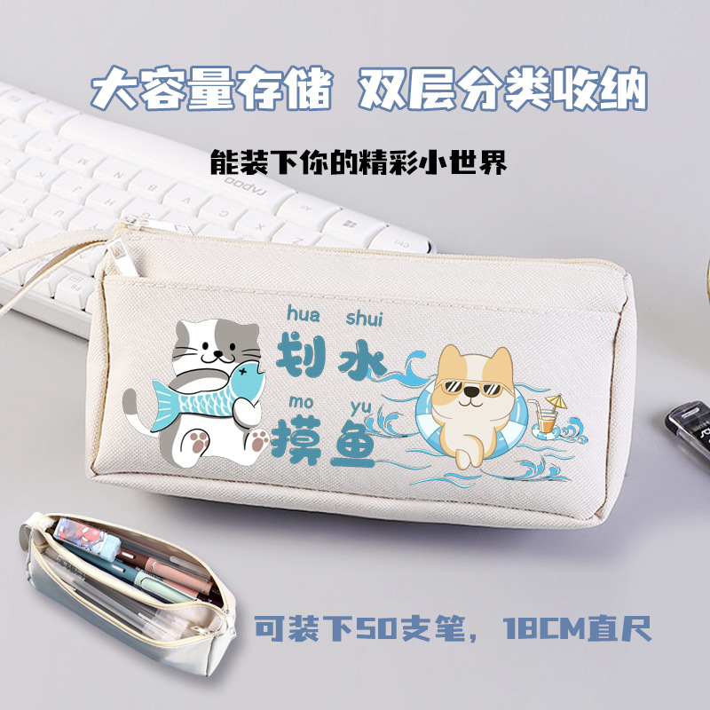 물고기 고양이 패들링 개 코기 재미 창조적 인 연필 가방 소년 대용량 소녀 연필 가방 2024 새로운 더러운스토어 가기