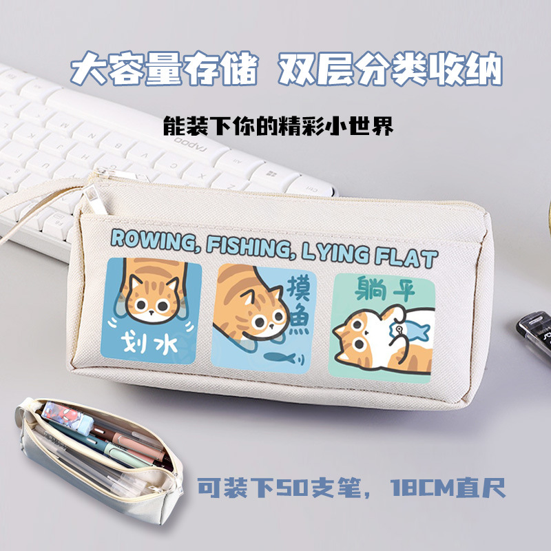 물고기 고양이 패들링 개 코기 재미 창조적 인 연필 가방 소년 대용량 소녀 연필 가방 2024 새로운 더러운