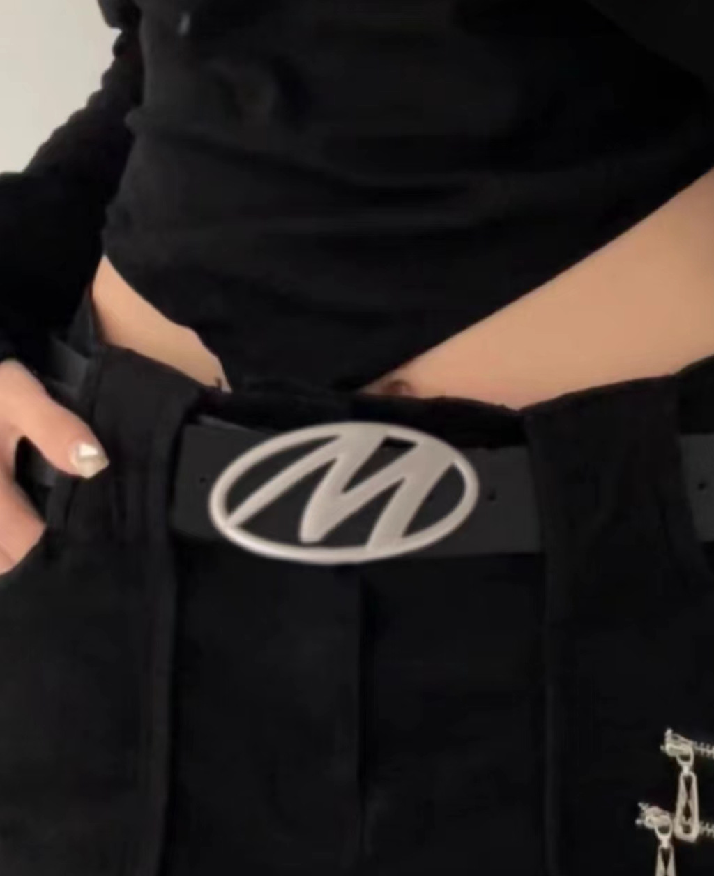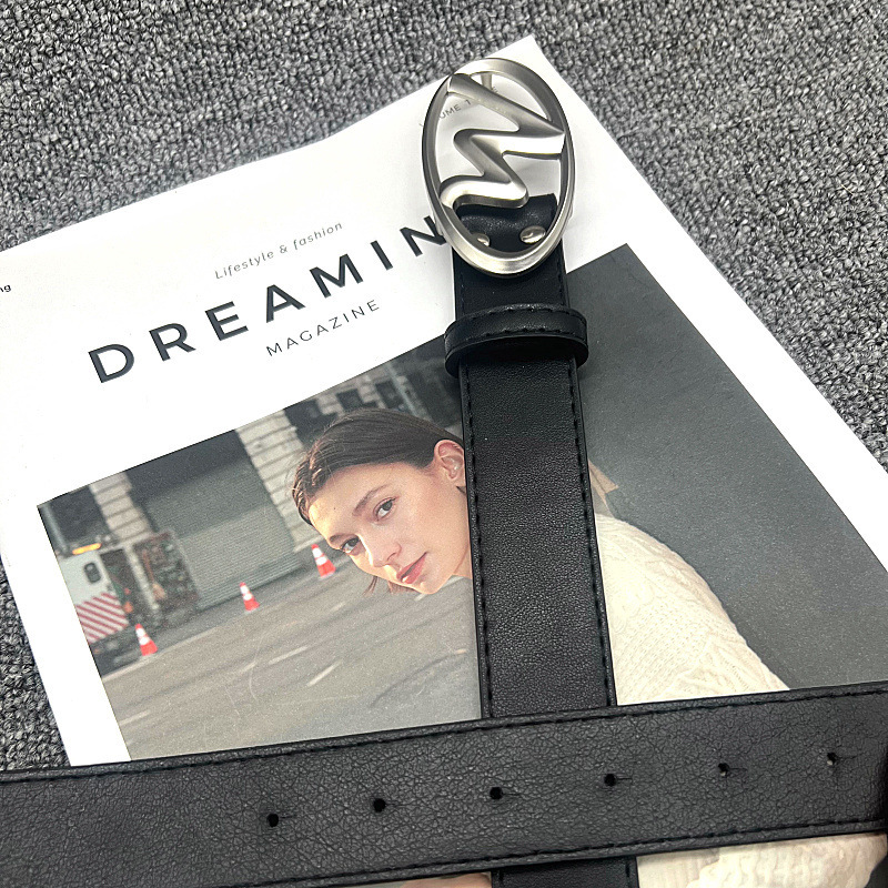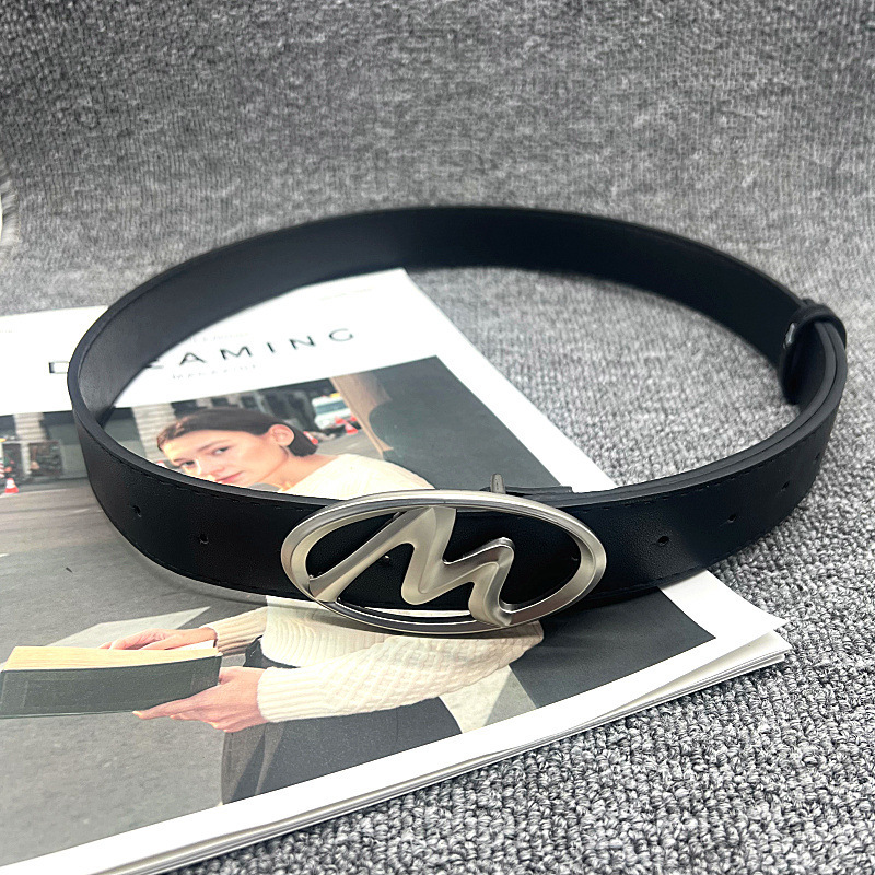 2024 새로운 경사 타원형 M-문자 버클 벨트 청바지 스커트 액세서리 맞춤형 올 매치 남녀 벨트