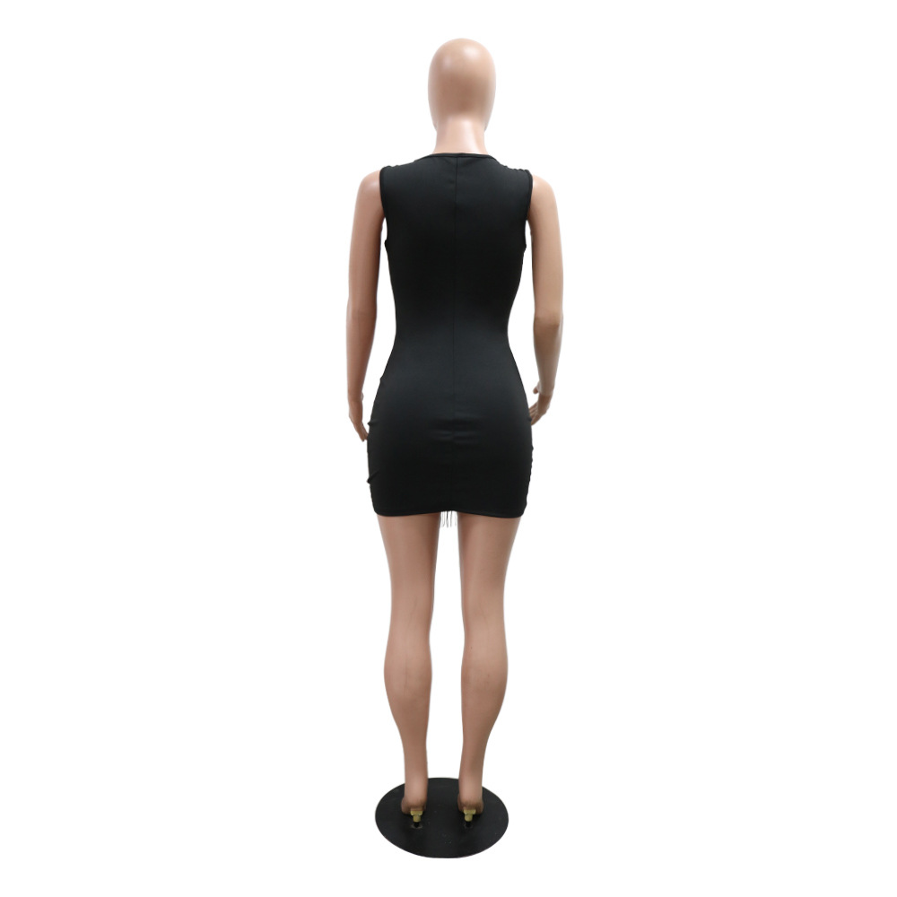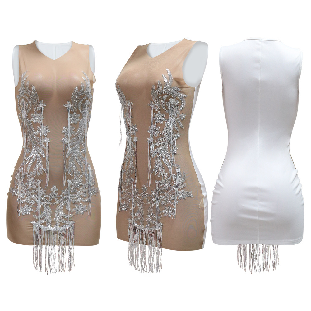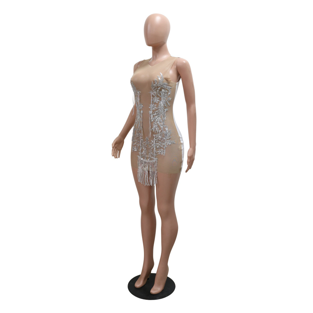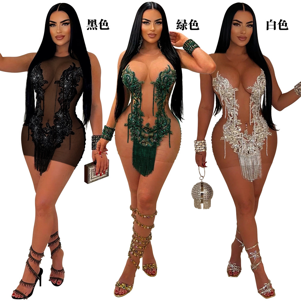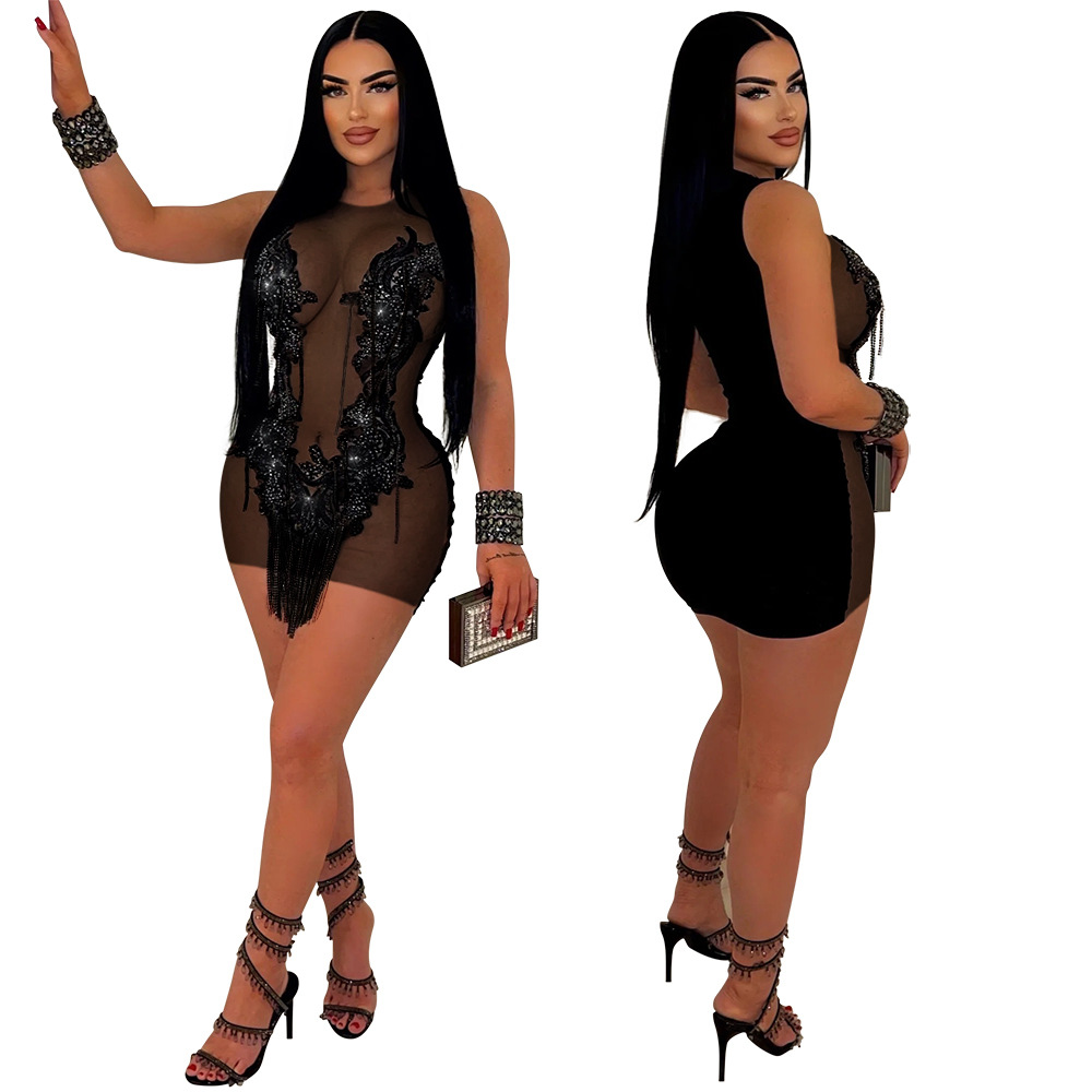 CY901209 유럽과 미국의 구슬 투시술 원피스 여성용 섹시한 엉덩이 슬림핏 민소매 스커트스토어 가기