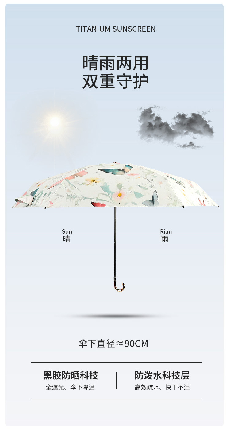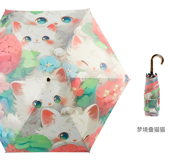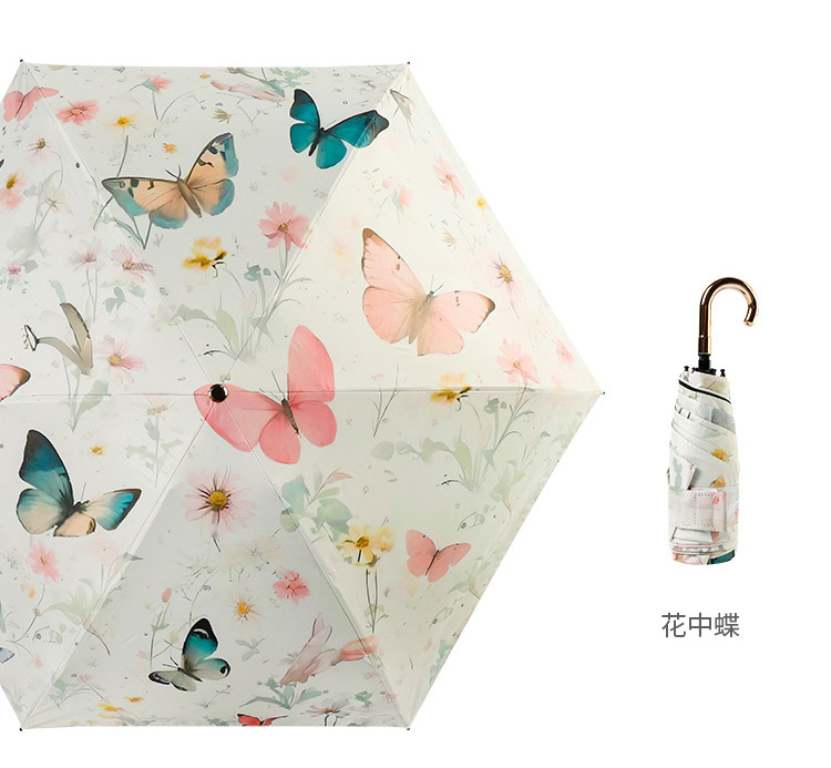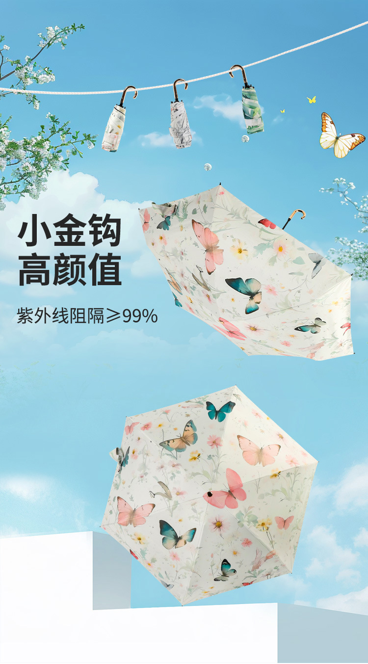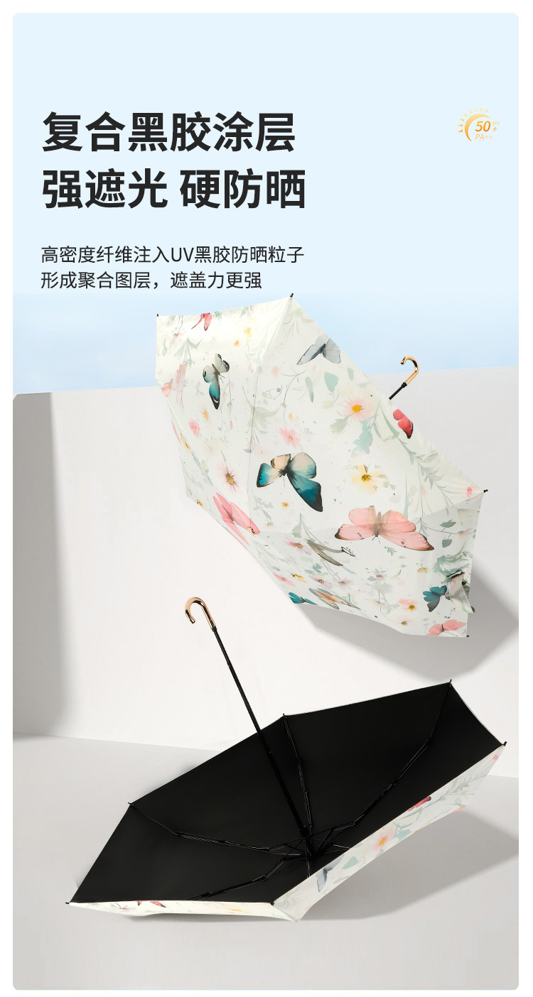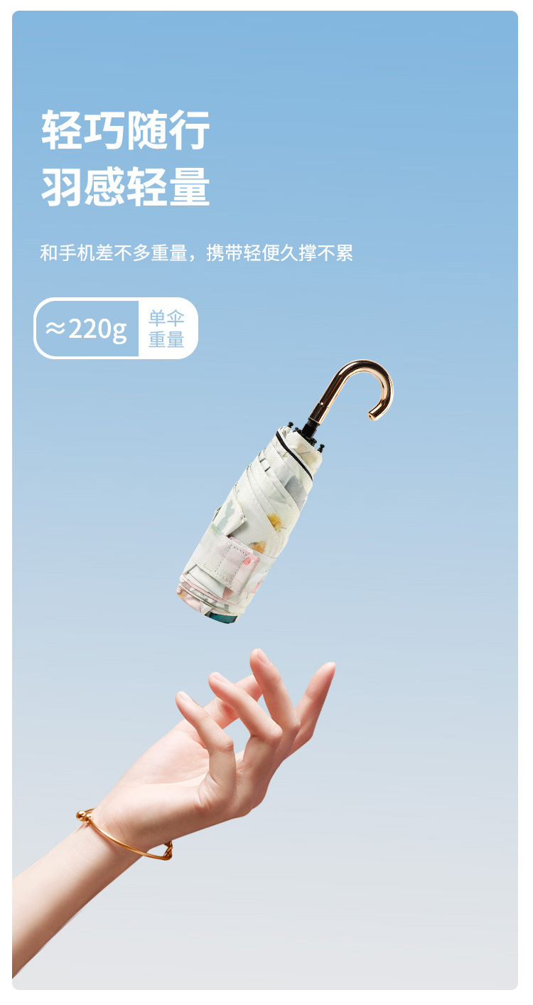 새로운 50% 작은 후크 자외선 차단제 우산 여성 UV 차양 UPF50 미니 우산은 머리카락 세대를 떨립니다.스토어 가기