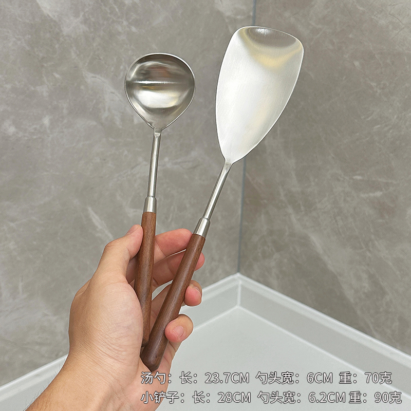 304 스테인레스 스틸 나무 손잡이 작은 냄비 삽 미니 볶음 수프 스푼 삽 주방용품 가정용 비 스틱 팬 삽 스푼
