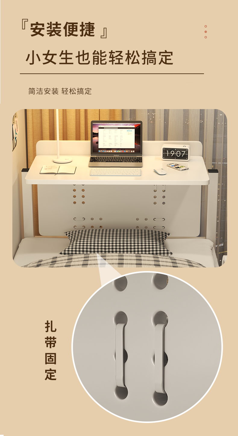 기숙사 침대 작은 테이블 책상 침실 상부 침대 테이블 측면 매달려 접는 테이블 컴퓨터 테이블 침대 테이블 정스토어 가기