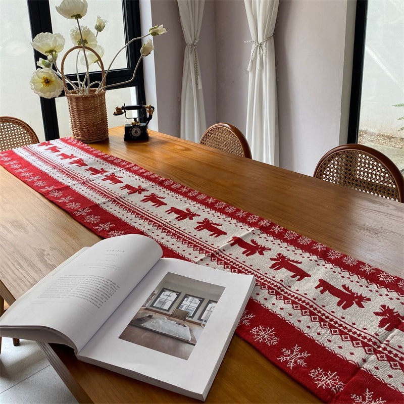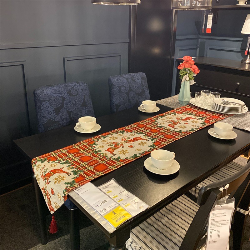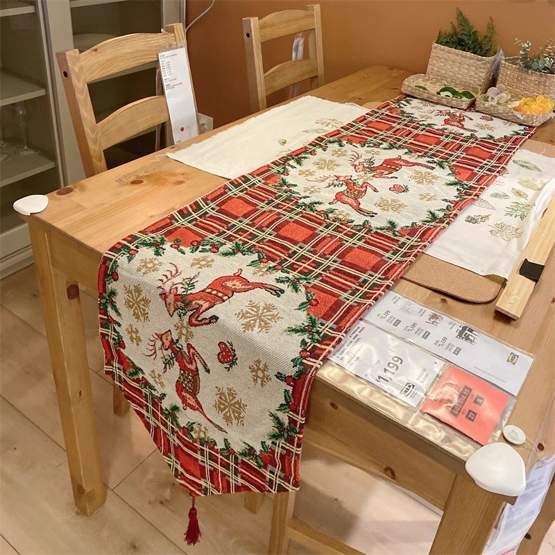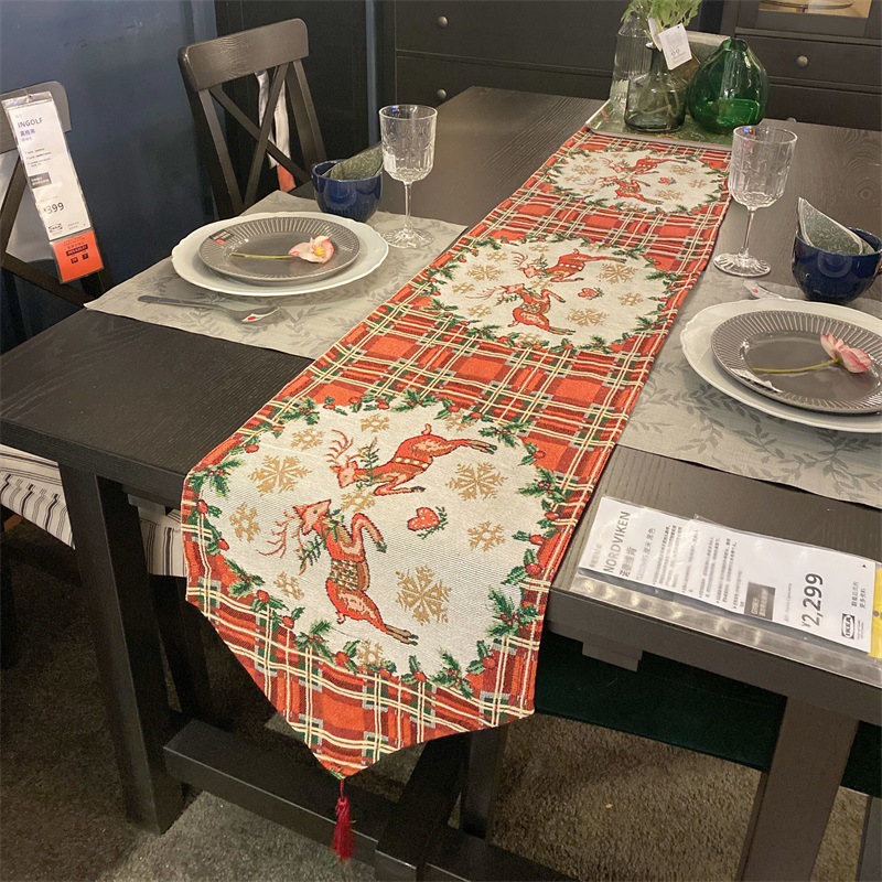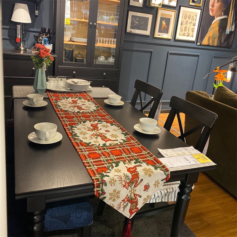 국경 간 수출 엘크 테이블 플래그 복고풍 자카드 홍화 축제 긴 테이블 스트립 테이블 장식 테이블 수건 테이블 매트 천스토어 가기