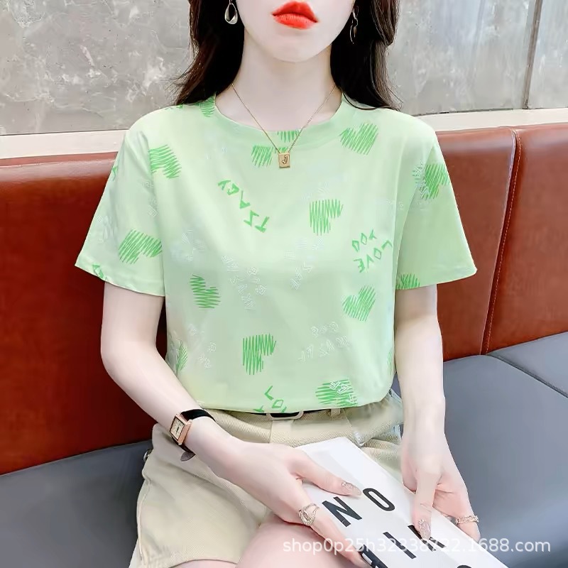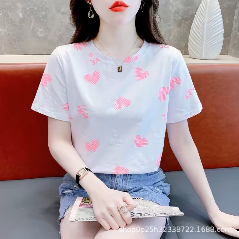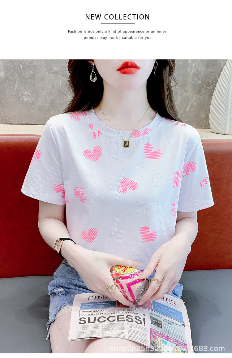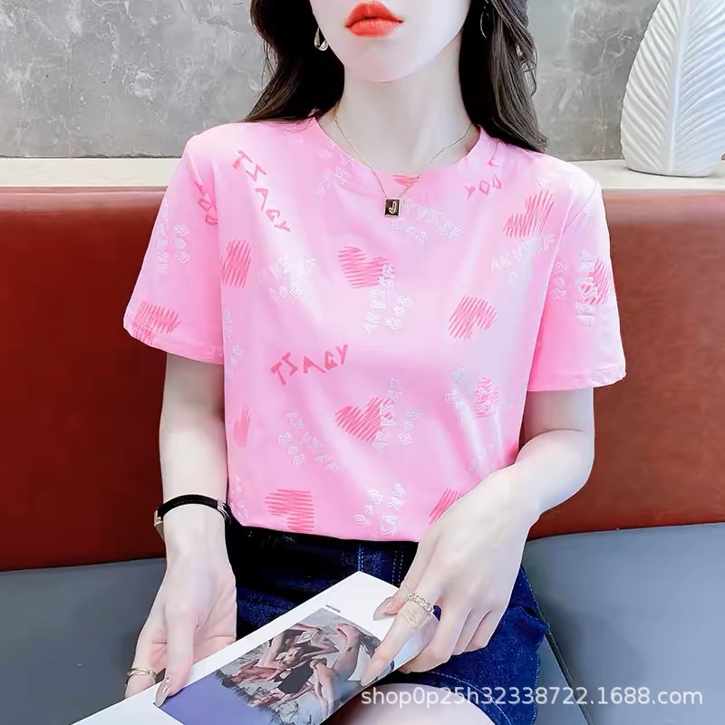 반팔 티셔츠 여성 느슨한 슬리밍 플러스 사이즈 통통녀 어깨 여름 2024 새로운 한국 패션 탑 트렌디스토어 가기