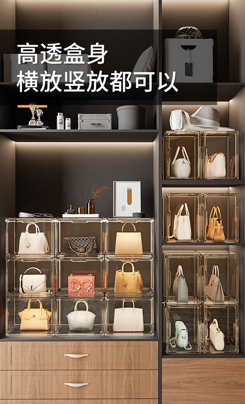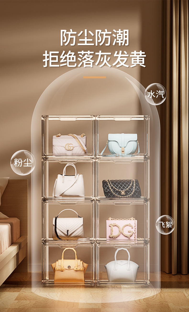 가방 보관 아티팩트 디스플레이 캐비닛 보관 랙 백 랙 가정용 특수 방진 상자 가방 캐비닛 선반 바닥 Zheng Zhihe