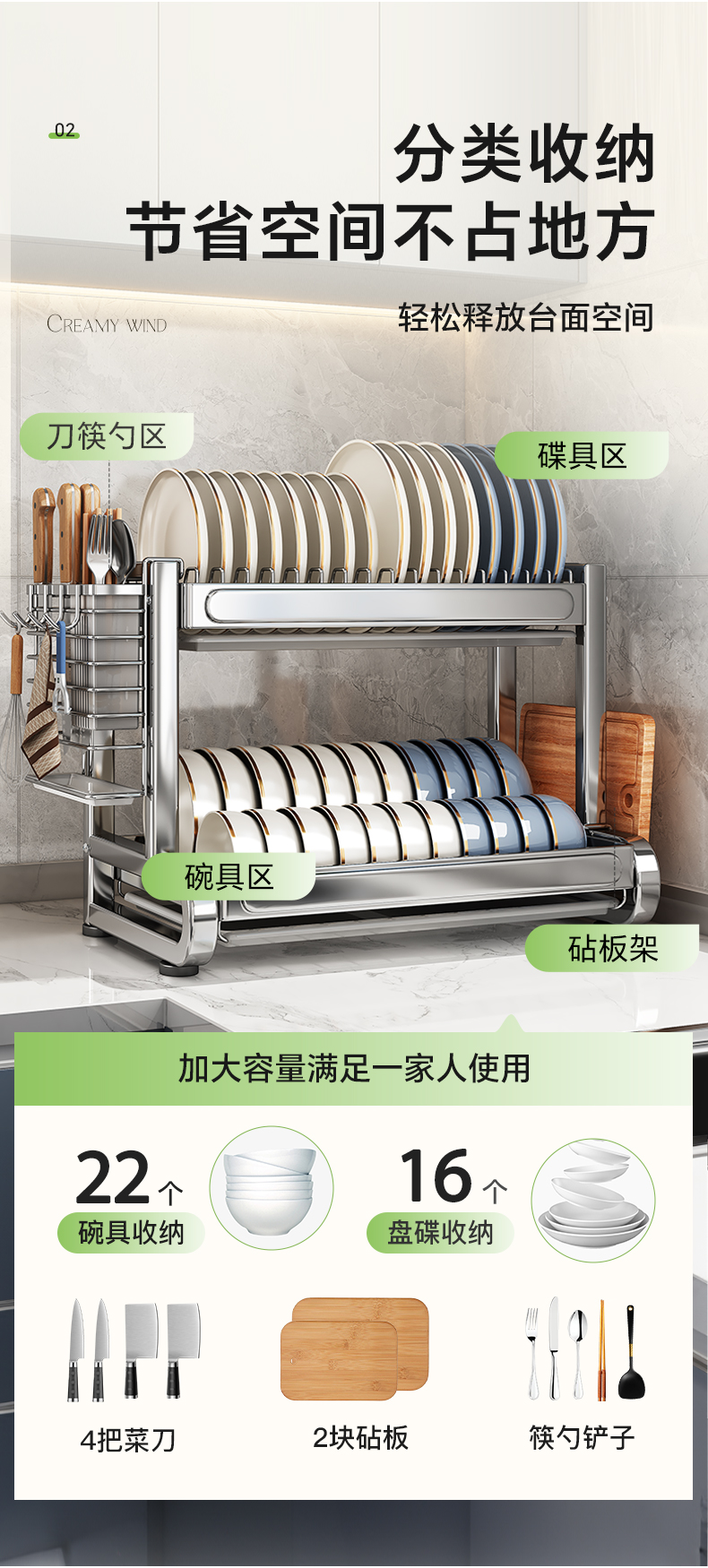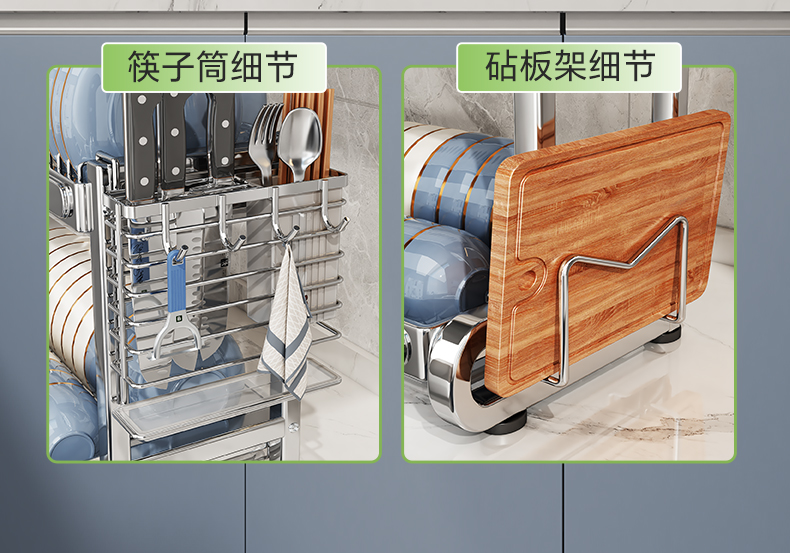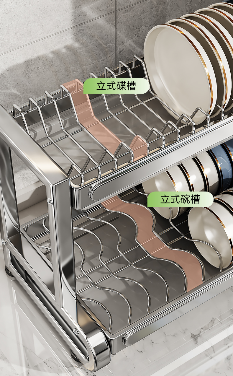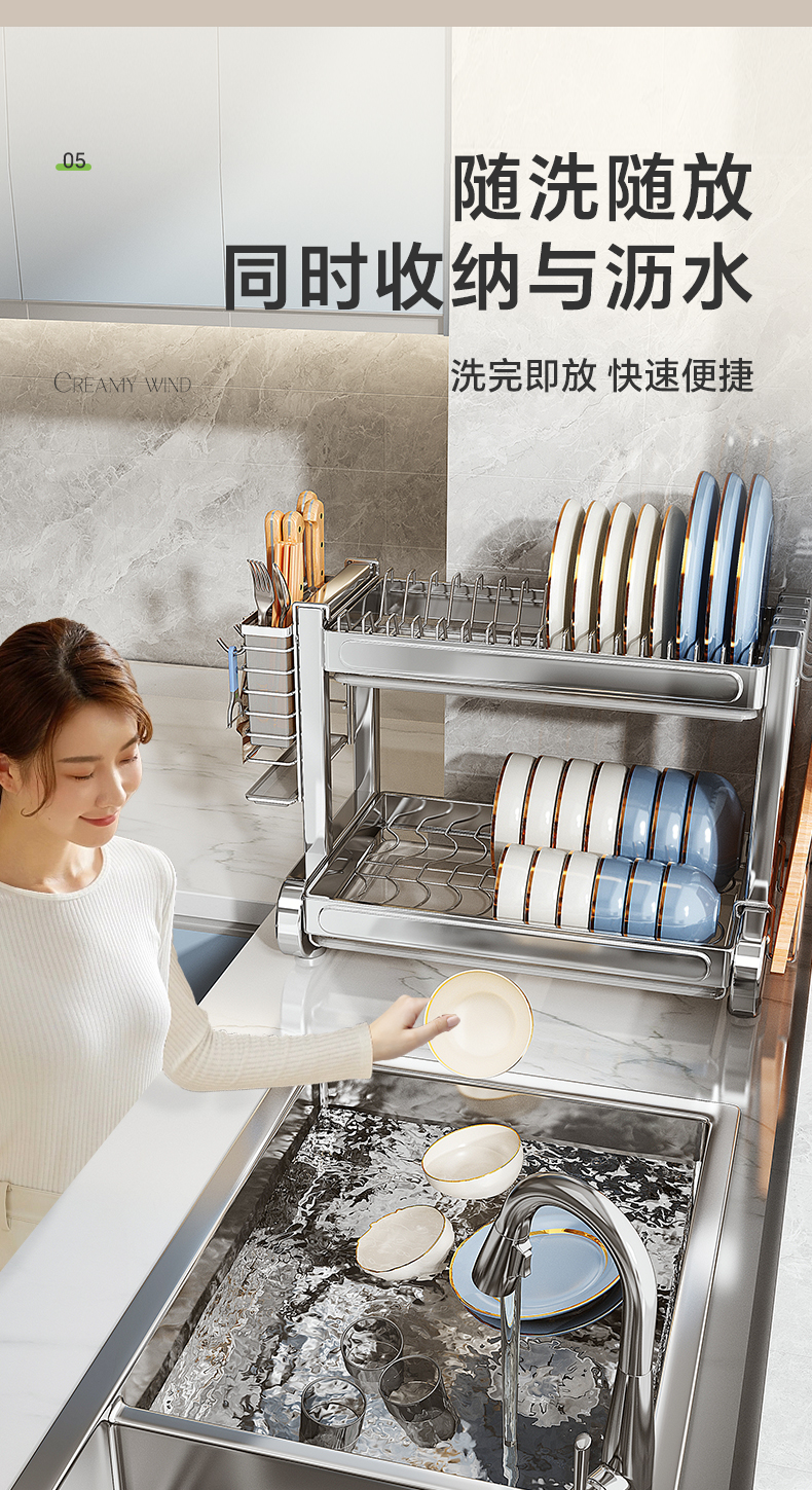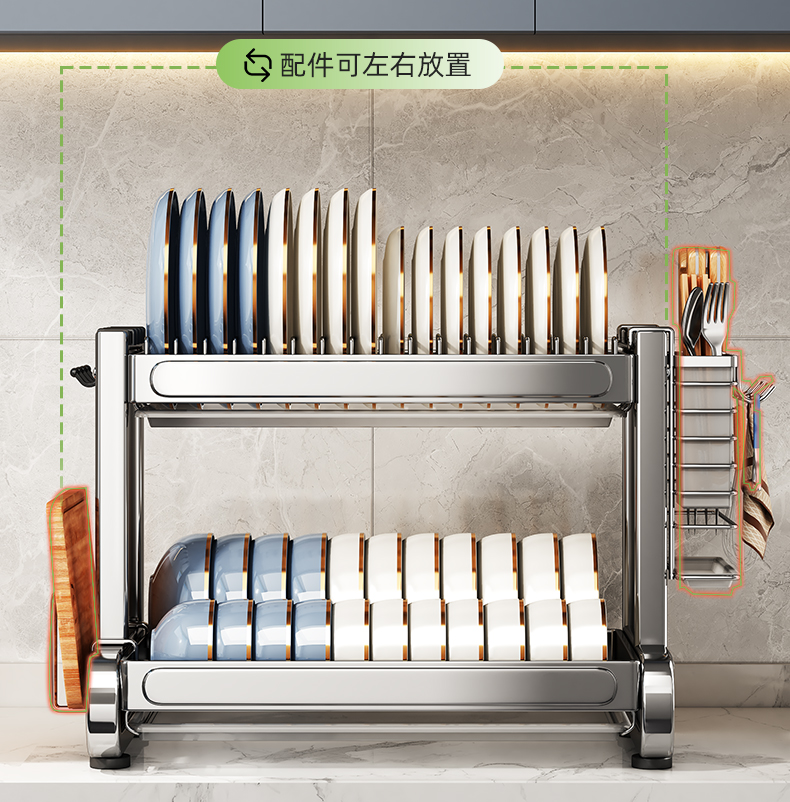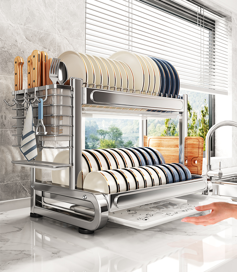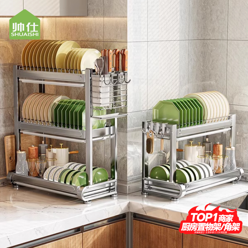 Shuai Shi 스테인레스 스틸 그릇 랙 주방 보관 랙 가정용 다기능 그릇 및 젓가락 그릇 및 접시 드레인 랙 접시 컬렉션 Zheng