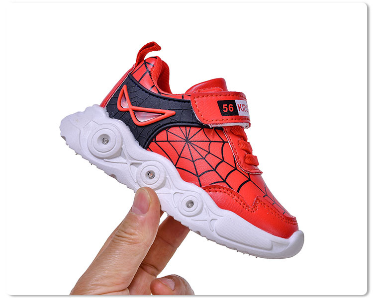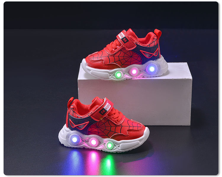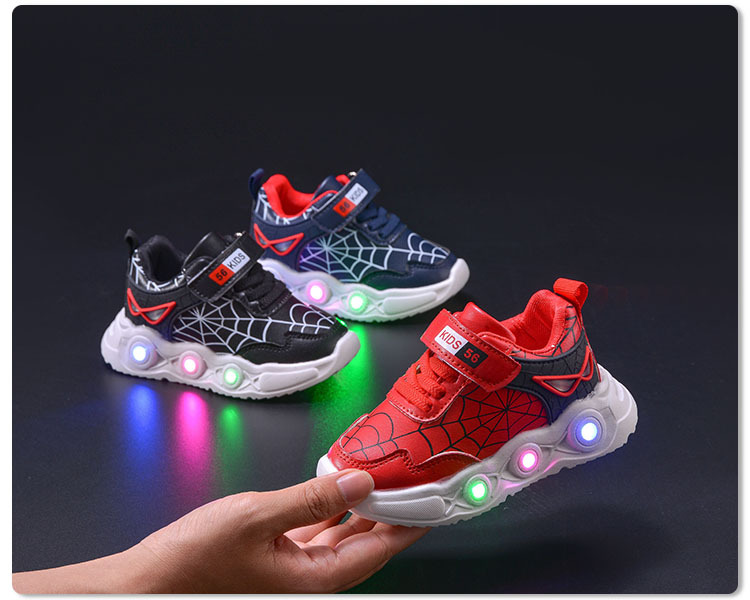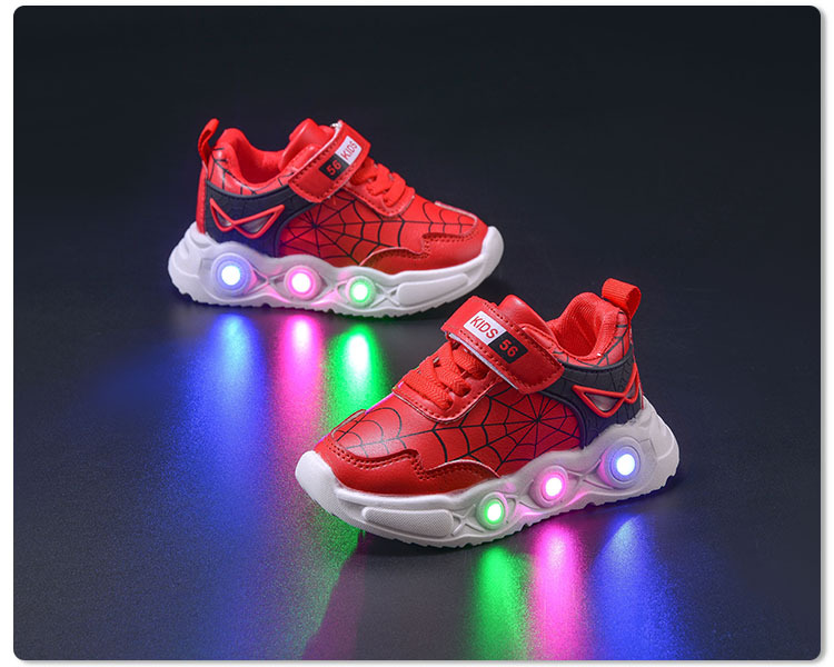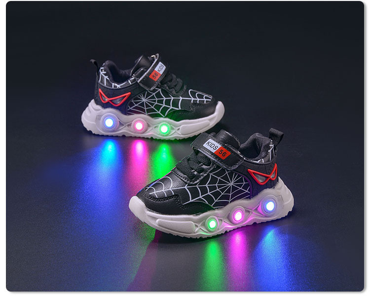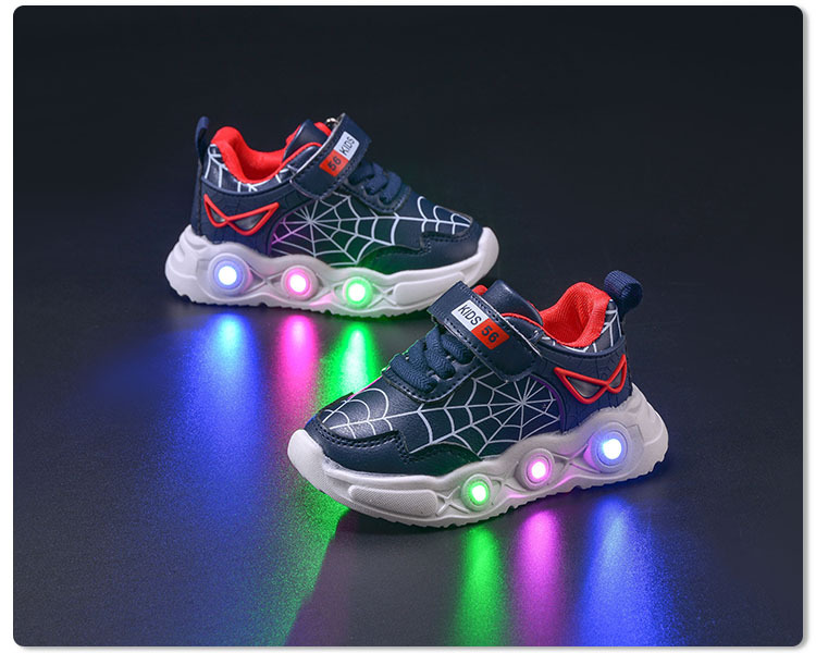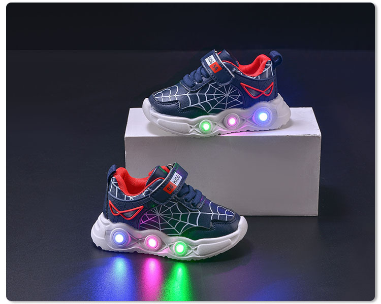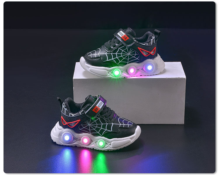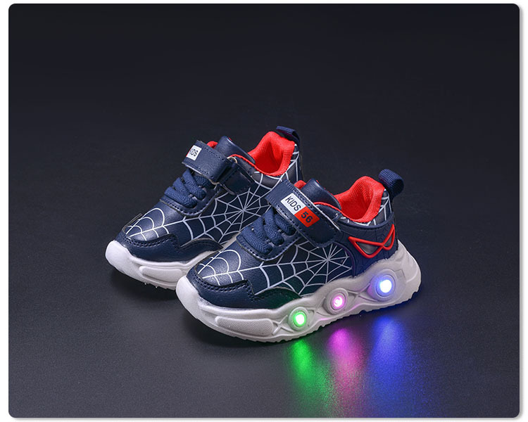 봄과 가을 새로운 밝은 조명 어린이 가죽 스파이더 웹 LED 빛나는 스포츠 어린이 신발 작은 소년 캐주얼 운동화