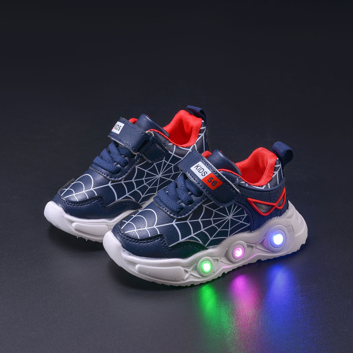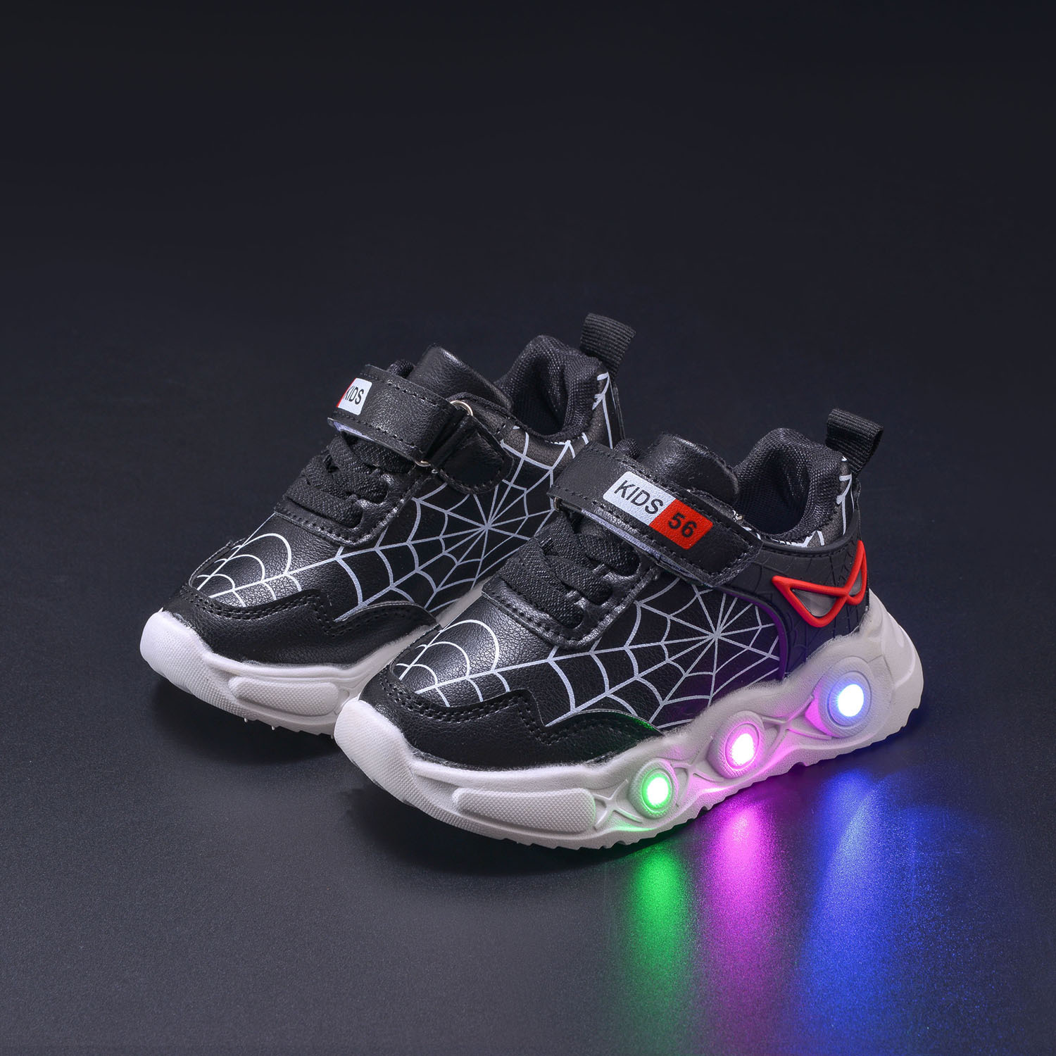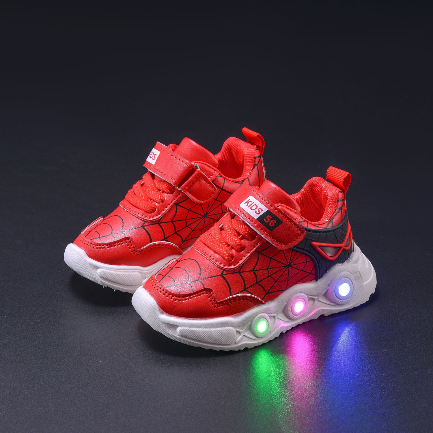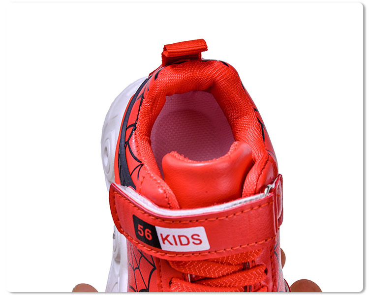 봄과 가을 새로운 밝은 조명 어린이 가죽 스파이더 웹 LED 빛나는 스포츠 어린이 신발 작은 소년 캐주얼 운동화