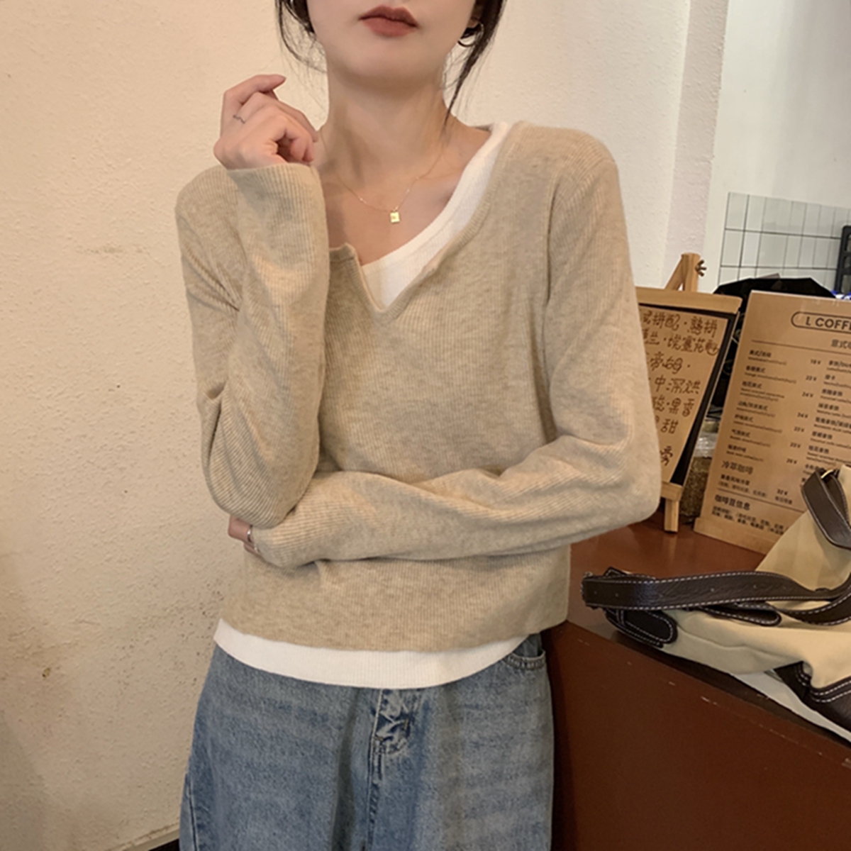 블랙 인 스타일 소프트 왁스 페이크 투피스 니트 스웨터 여성베이스 셔츠 이른 봄 가을과 겨울 틈새 Chic Zheng Zhi스토어 가기