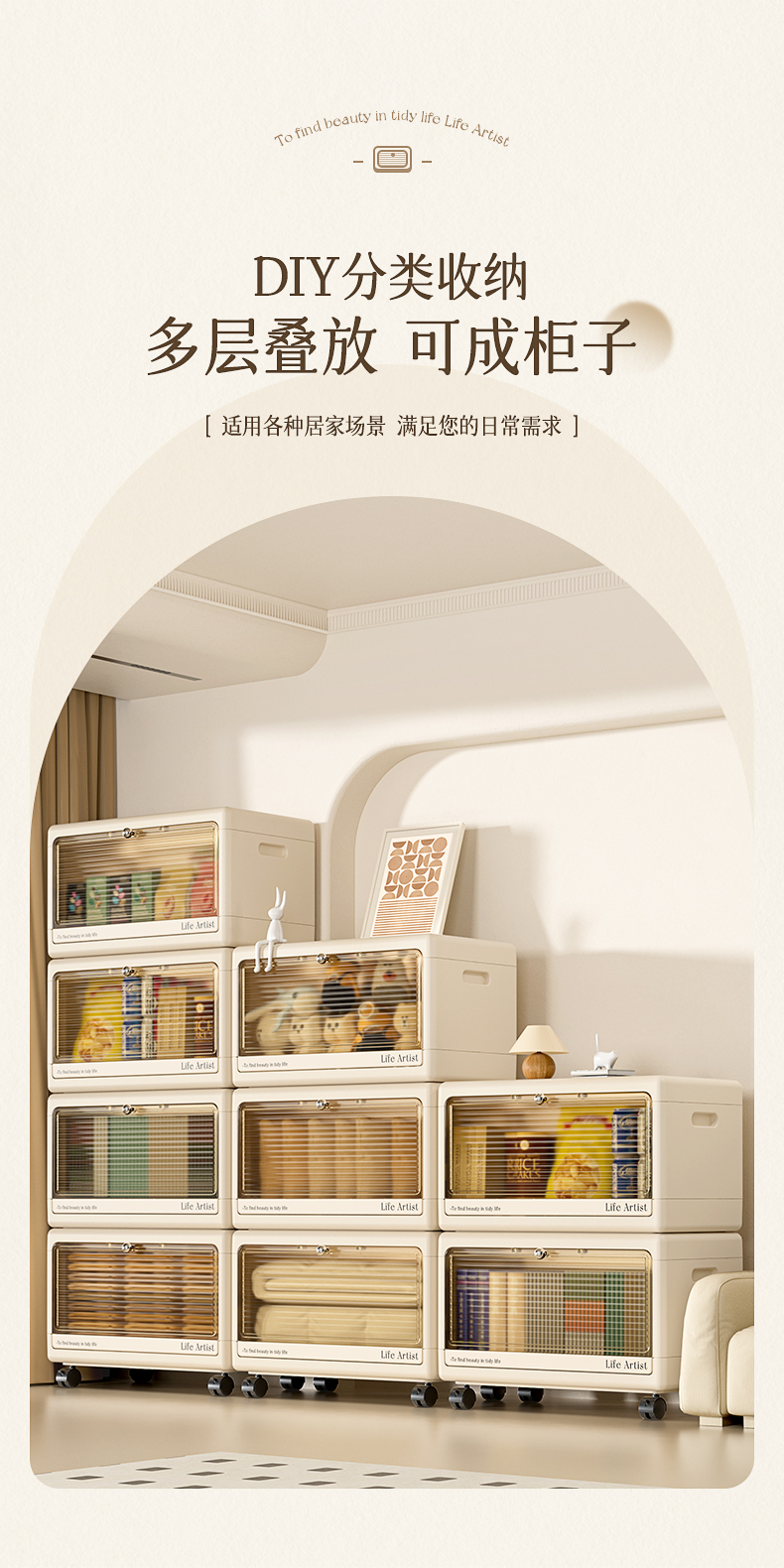 저장 캐비닛 저장 캐비닛 접이식 저장 상자 가정용 옷 배열 상자 거실 주방 장난감 간식 저장 Zheng스토어 가기