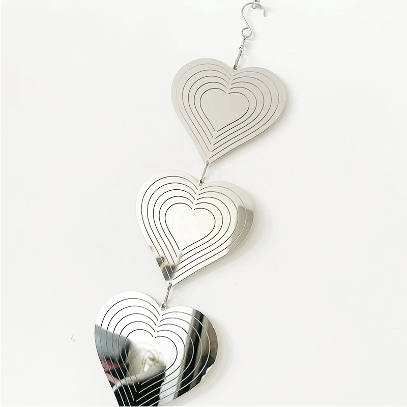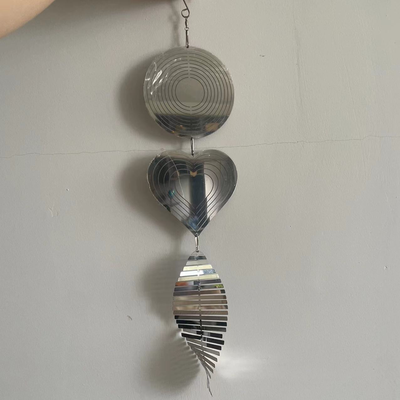 2025년 현장 크로스보더 제작 회전 금속 풍경 3줄 9피스 러브 미러 반사 새 퇴치 풍경 펜던트