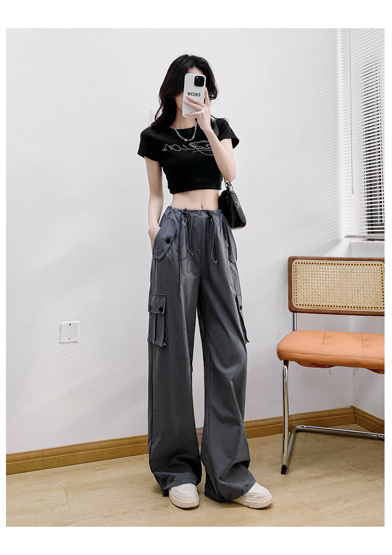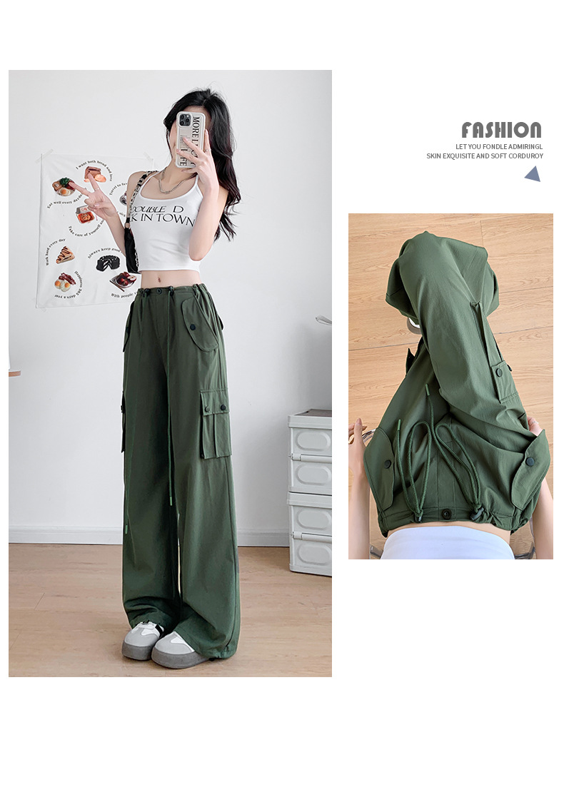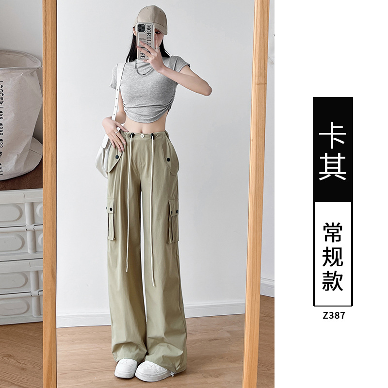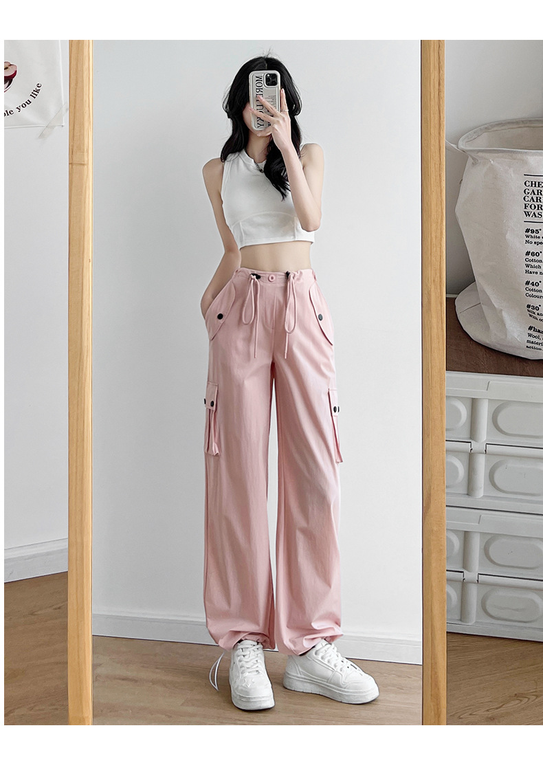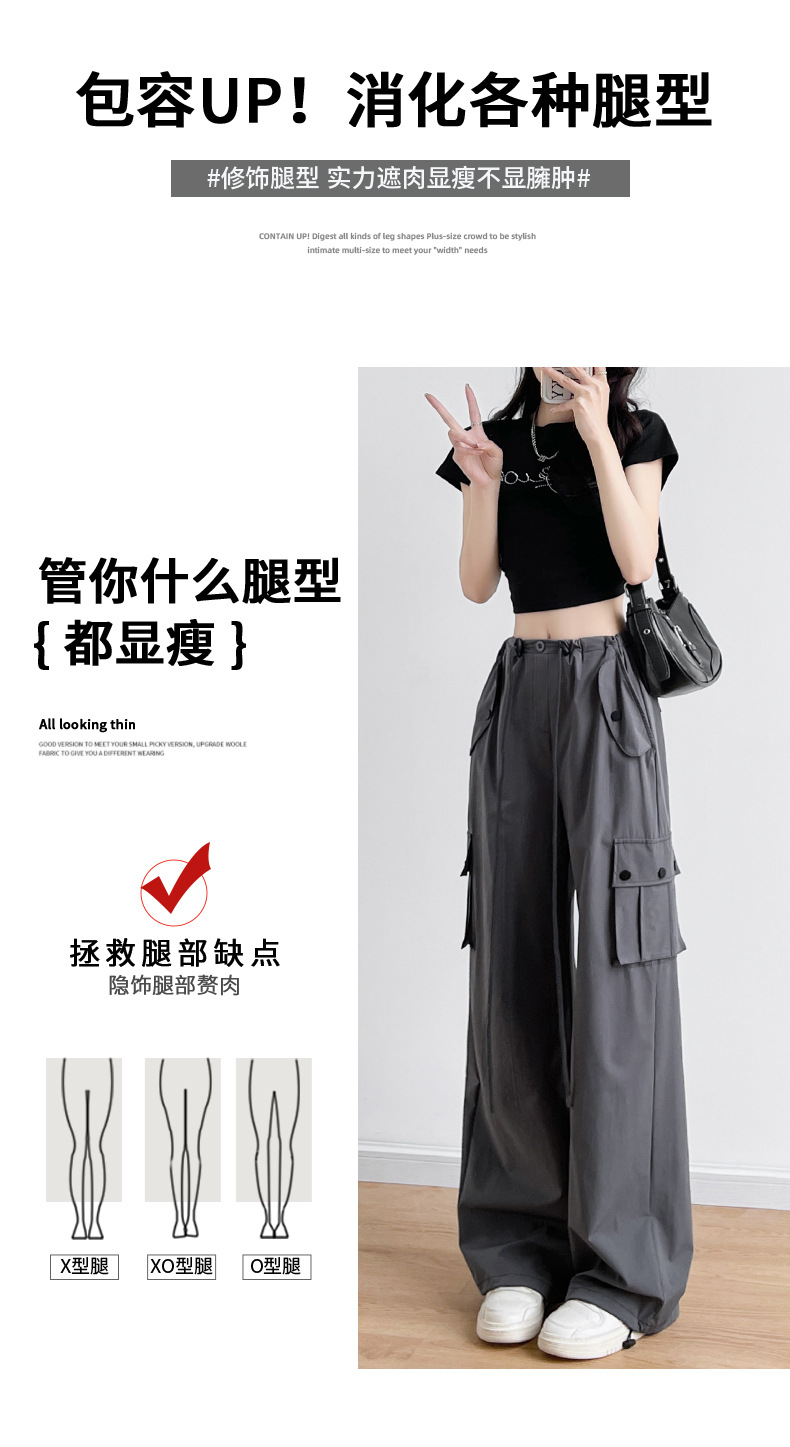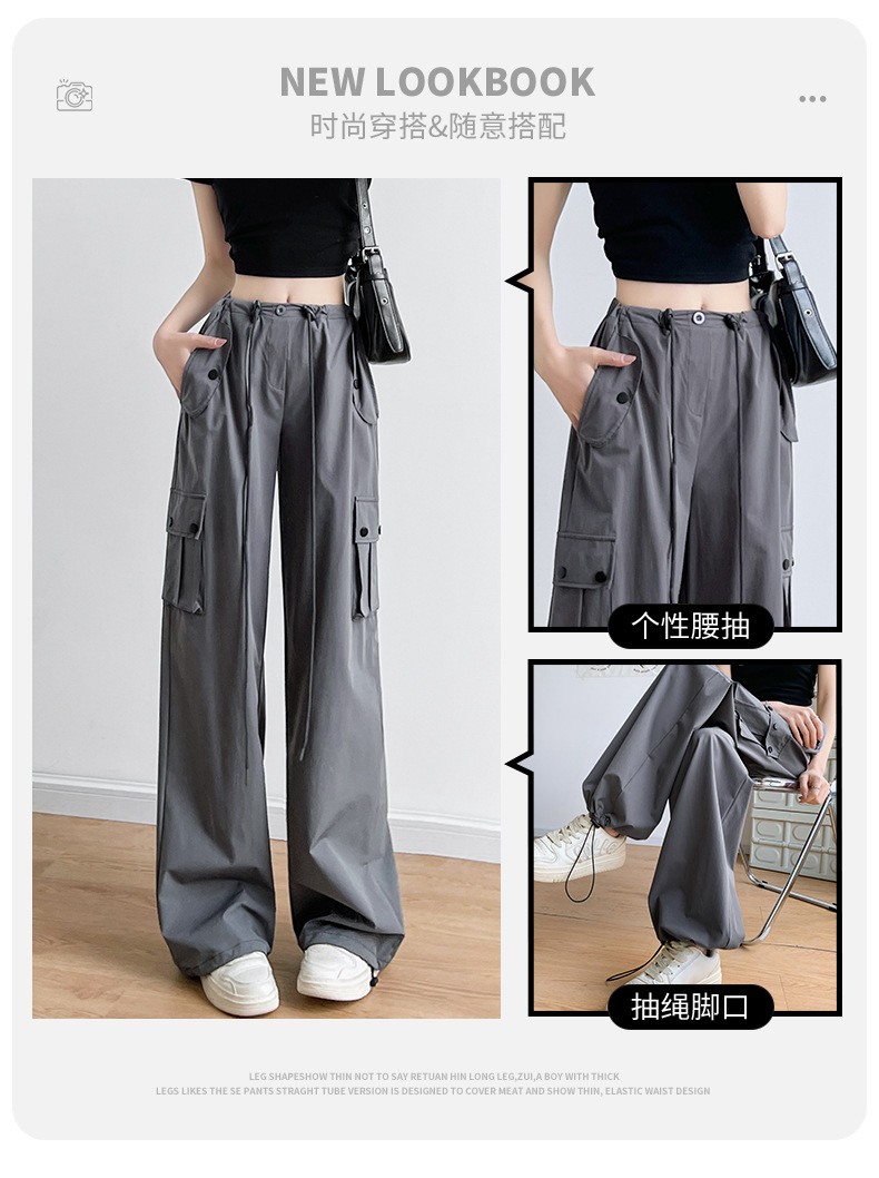 미국식 오버올 여성용 여름 얇은 하이 웨이스트 루즈 슬리밍 와이드 레그 등산 바지 캐주얼 퀵 건조 스포츠 바지스토어 가기