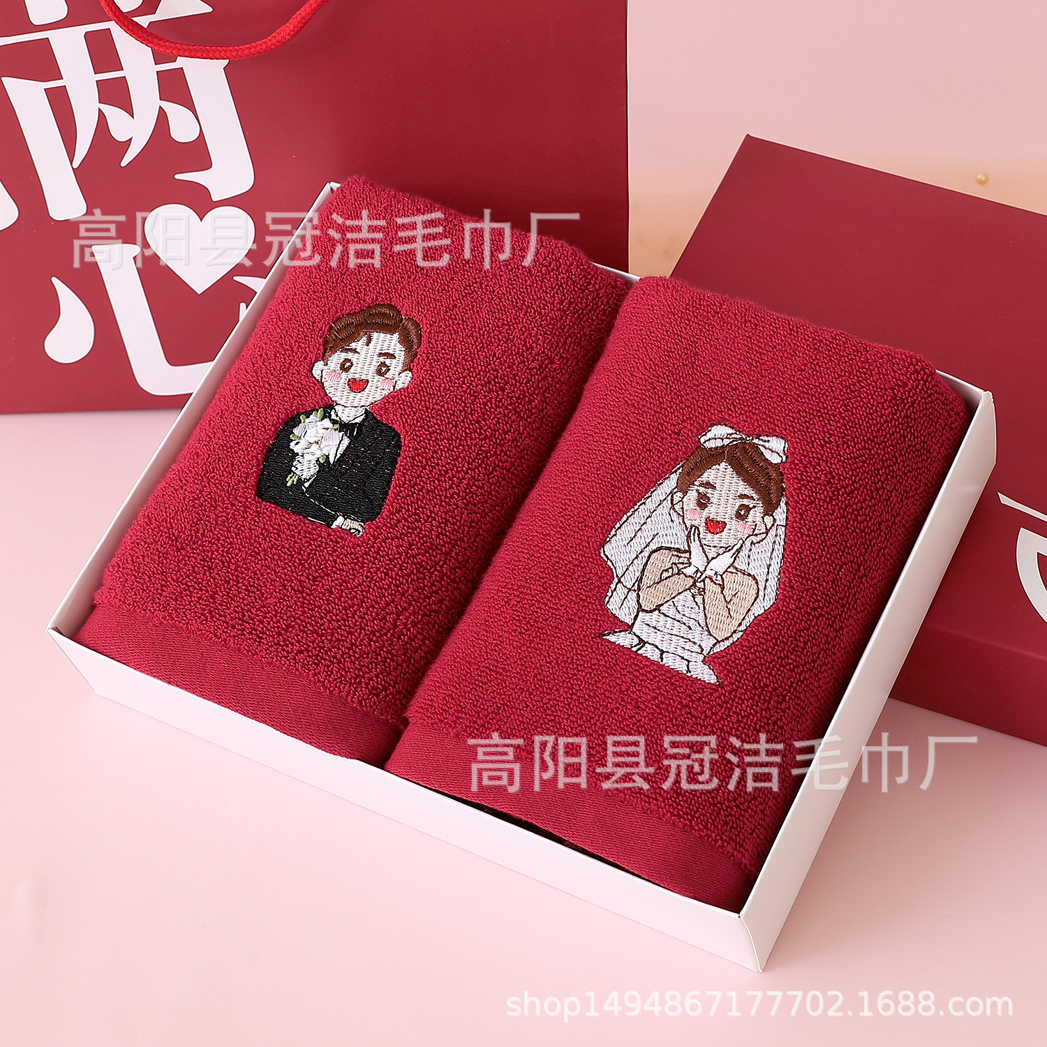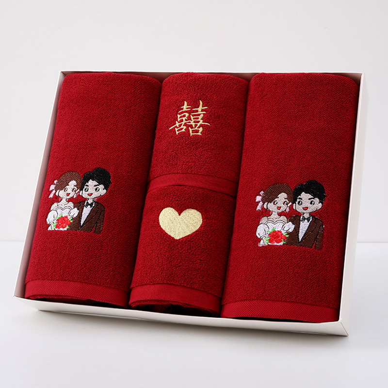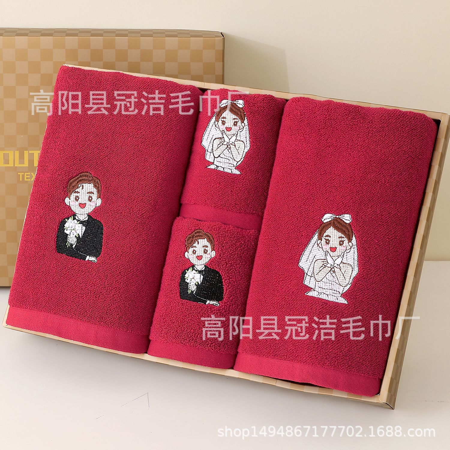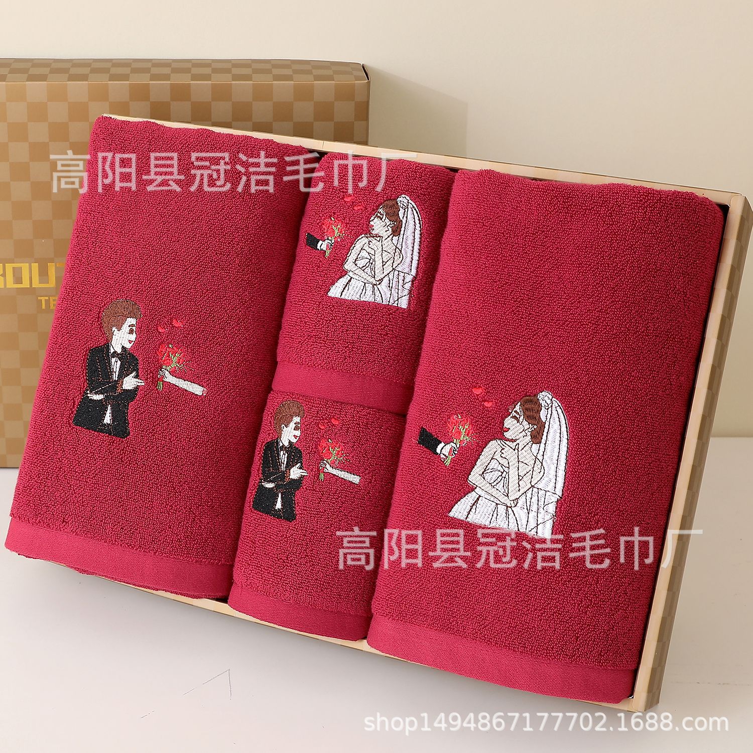 버건디 웨딩 코튼 타월 자수 커플 목욕 타월 웨딩 리턴 웨딩 웨딩 연회 동반 손 선물 4 피스 세트스토어 가기