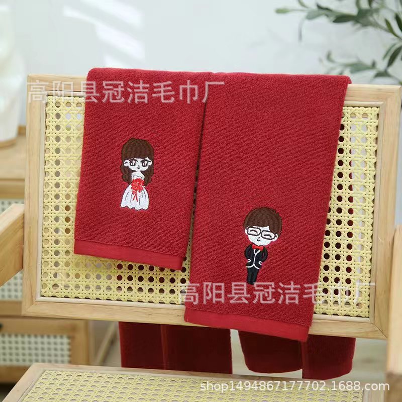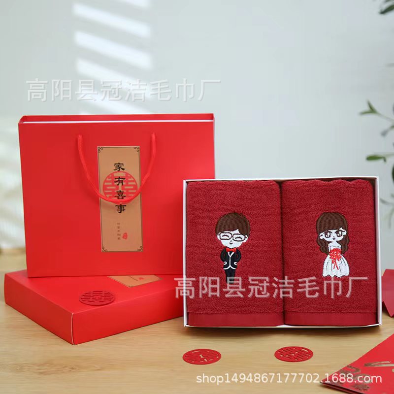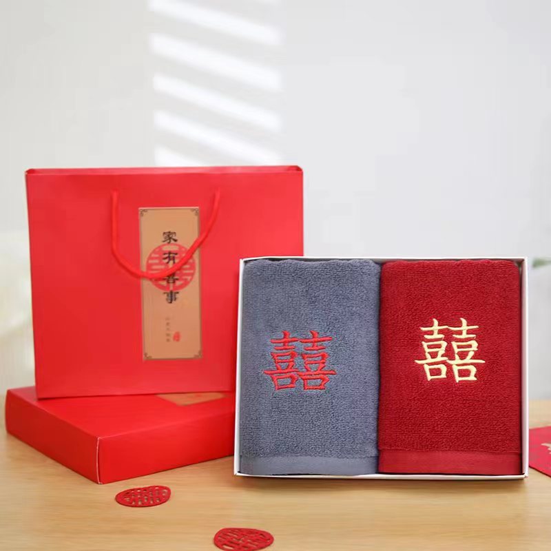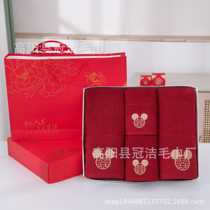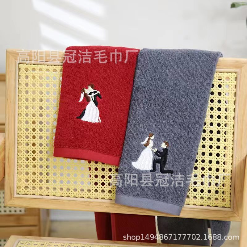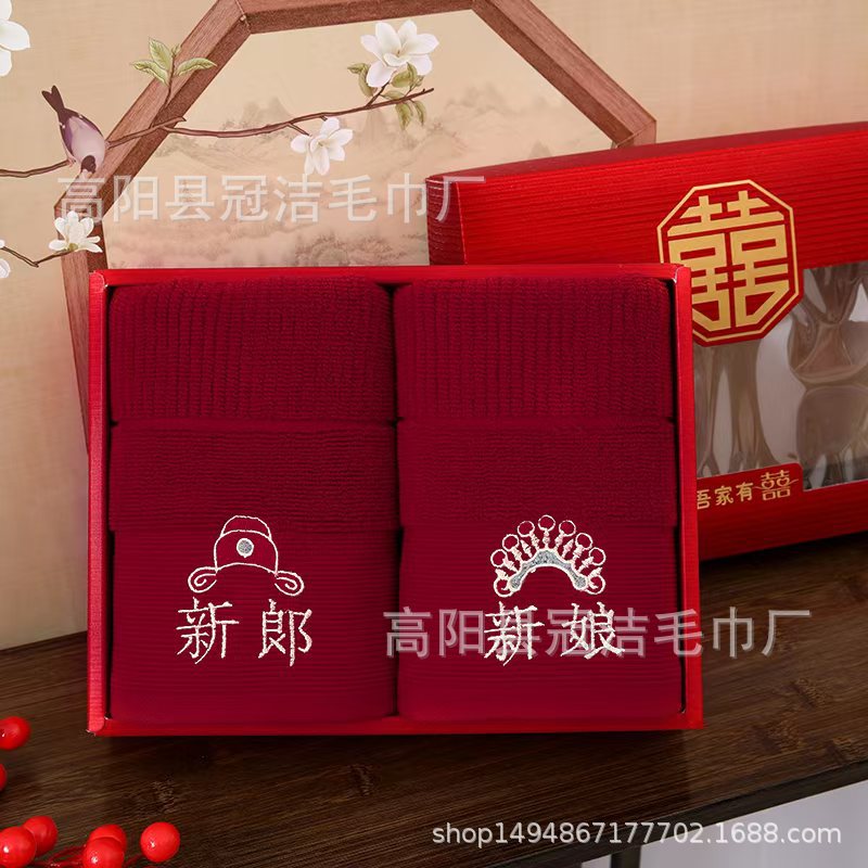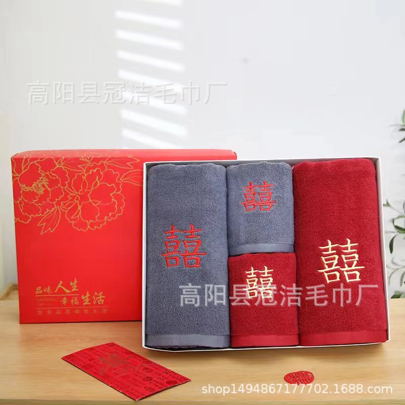 버건디 웨딩 코튼 타월 자수 커플 목욕 타월 웨딩 리턴 웨딩 웨딩 연회 동반 손 선물 4 피스 세트스토어 가기